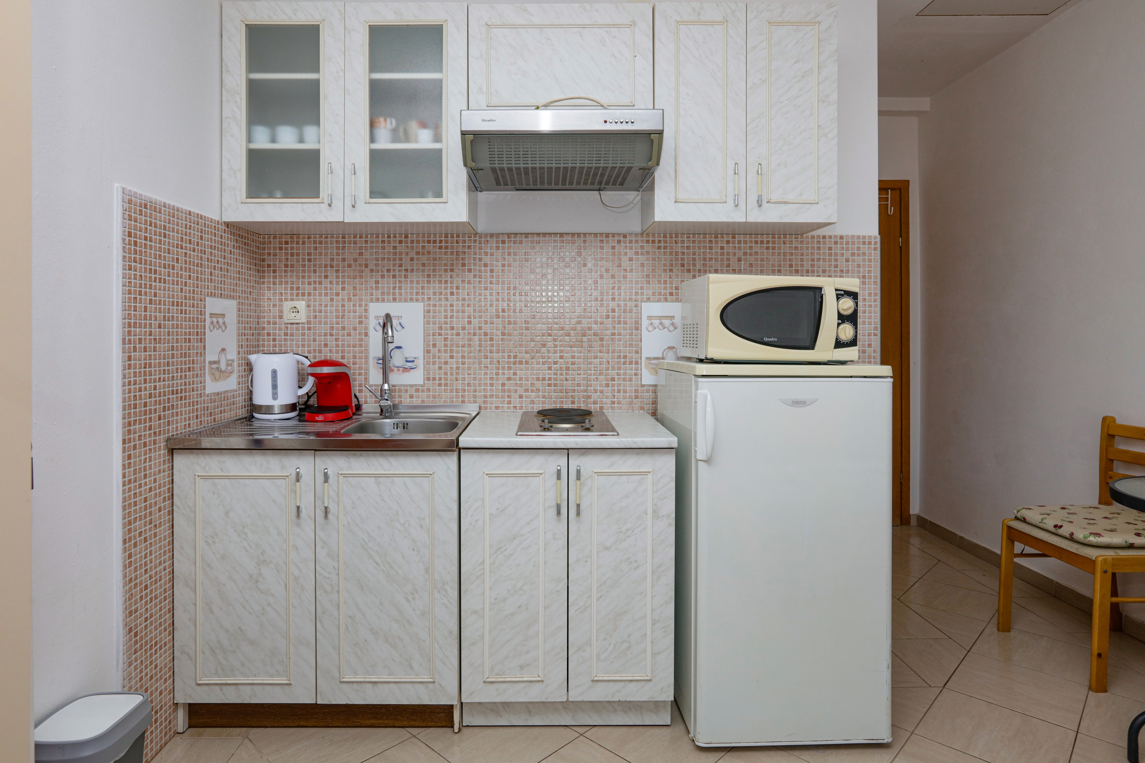 Studio flat can accommodate 2 guests. Beds are situated in living room, within 22m2. Guests can use a private terrace to enjoy the warm summer evenings. The studio offers the sea view. Food can be prepared using barbecue which is shared with other guests too. INCLUDED IN THE PRICE: tourist tax, final cleaning, air-conditioning, parking, internet, baby cot, iron, ironing board, hairdryer. OBLIGATORY ADDITIONAL COSTS: short stay fee (surcharge depending on a number of booked nights: 30% - 1, 20% - 2, 10% - 3). The availability of additional services for your chosen dates of stay, as well as their prices (if none are listed) must be checked ahead of time. Any additional services not shown in the price calculation are payable directly to the property owner and only if used by the visitor.