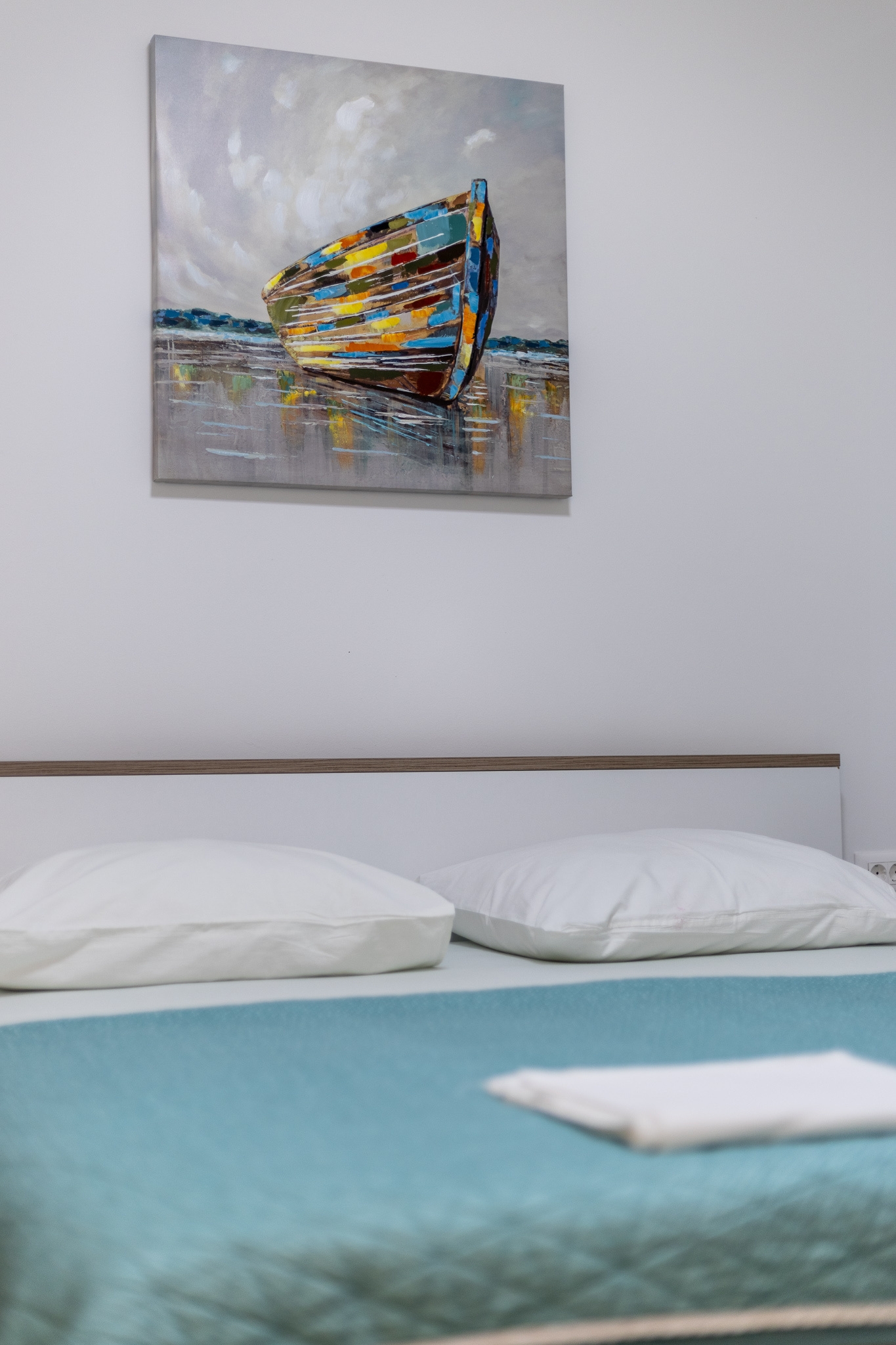 Studio flat can accommodate 3 guests. Beds are situated in 1 sleeping rooms, but also in the dining room, within 25m2. Guests can use a private balcony to enjoy the warm summer evenings. Food can be prepared using barbecue which is shared with other guests too. INCLUDED IN THE PRICE: tourist tax, final cleaning, air-conditioning, parking, internet. The availability of additional services for your chosen dates of stay, as well as their prices (if none are listed) must be checked ahead of time. Any additional services not shown in the price calculation are payable directly to the property owner and only if used by the visitor. Discounts to the base price: free day 14=13 (for reservations of 14 or more days you get one free day for the stay until 31122026).