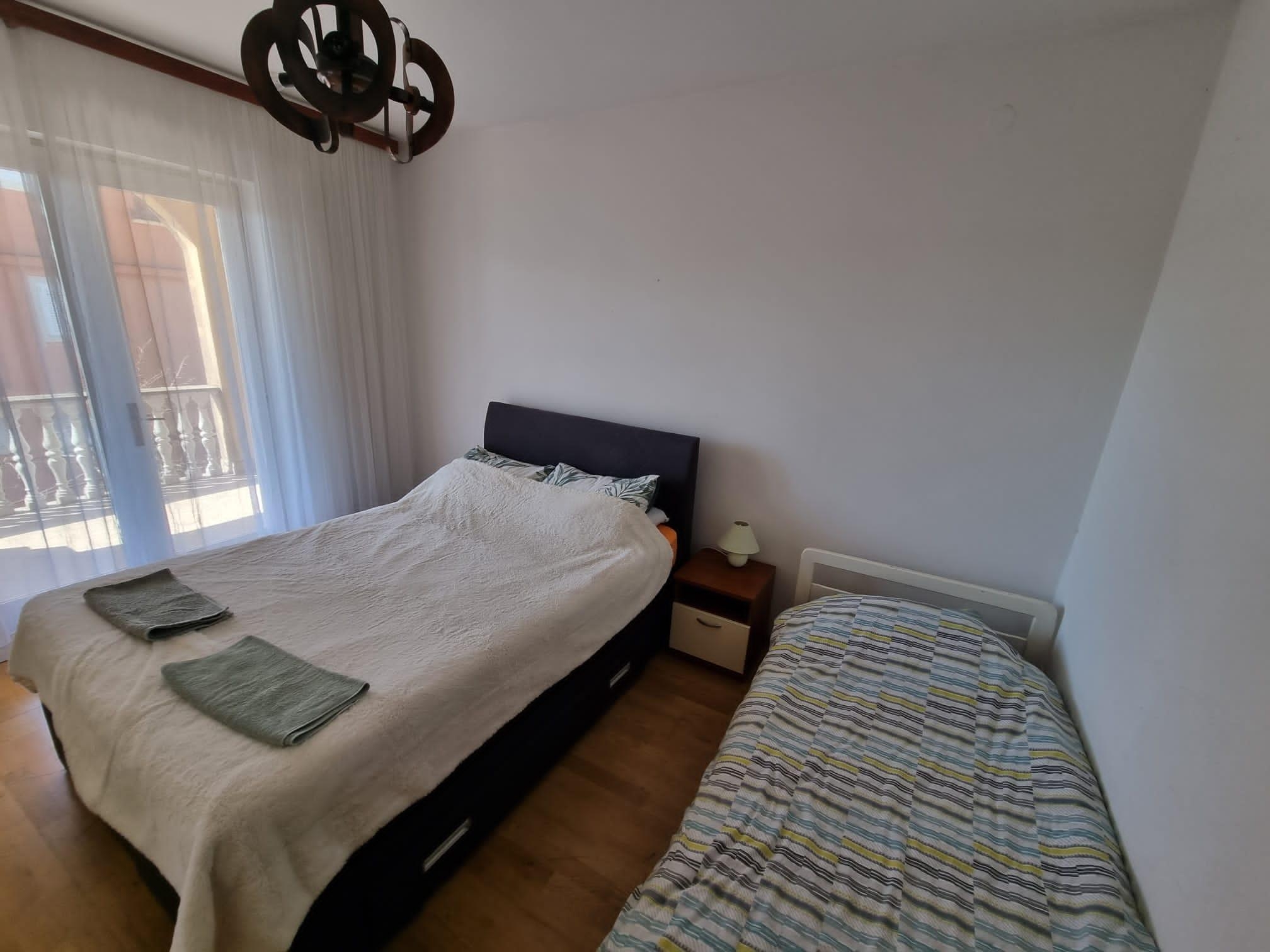 Apartment can accommodate 8 guests. Beds are situated in 3 sleeping rooms, but also in the living room, within 72m2. Guests can use a private terrace to enjoy the warm summer evenings. Food can be prepared using barbecue which is shared with other guests too. INCLUDED IN THE PRICE: tourist tax, final cleaning, air-conditioning, parking, internet, baby cot. OBLIGATORY ADDITIONAL COSTS: short stay fee (surcharge depending on a number of booked nights: 30% - 1, 20% - 2, 10% - 3). The availability of additional services for your chosen dates of stay, as well as their prices (if none are listed) must be checked ahead of time. Any additional services not shown in the price calculation are payable directly to the property owner and only if used by the visitor.
