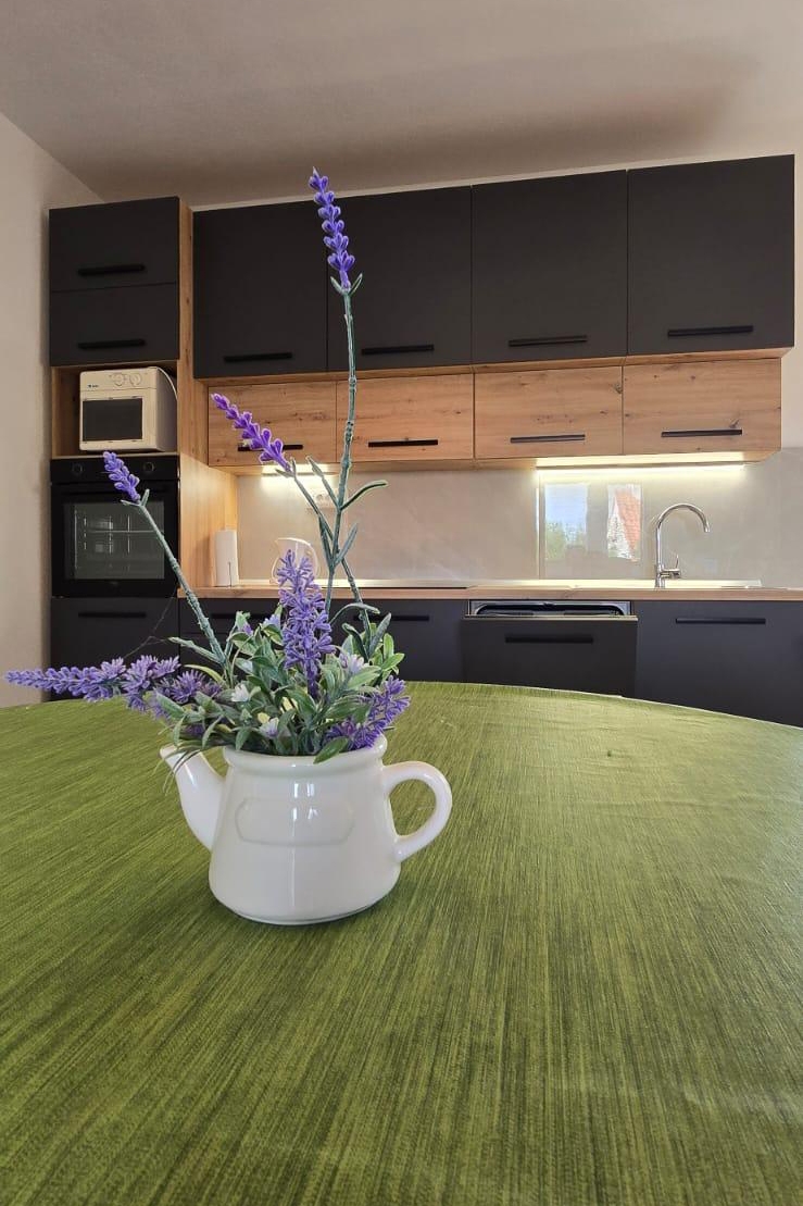Apartment can accommodate 6 guests. Beds are situated in 3 sleeping rooms, within 76m2. Guests can use a private terrace to enjoy the warm summer evenings. Food can be prepared using barbecue which is shared with other guests too. This accommodation unit welcomes pets at an additional charge. INCLUDED IN THE PRICE: tourist tax, final cleaning, air-conditioning, parking, internet, iron, ironing board, hairdryer. OBLIGATORY ADDITIONAL COSTS: short stay fee (surcharge depending on a number of booked nights: 30% - 1, 20% - 2, 10% - 3). OPTIONAL ADDITIONAL COSTS: pets (€6.00 per night). The availability of additional services for your chosen dates of stay, as well as their prices (if none are listed) must be checked ahead of time. Any additional services not shown in the price calculation are payable directly to the property owner and only if used by the visitor. Discounts to the base price: free day 14=13 (for reservations of 14 or more days you get one free day for the stay until 31122026).