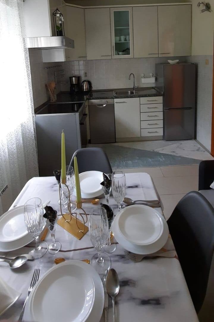 Apartment can accommodate 4 guests. Beds are situated in 2 sleeping rooms, within 42m2. Guests can use a private terrace to enjoy the warm summer evenings. For full enjoyment and relaxation there is a private barbecue for this accommodation guests only. INCLUDED IN THE PRICE: tourist tax, final cleaning, air-conditioning, parking, internet, baby cot, iron, ironing board, hairdryer. The availability of additional services for your chosen dates of stay, as well as their prices (if none are listed) must be checked ahead of time. Any additional services not shown in the price calculation are payable directly to the property owner and only if used by the visitor.