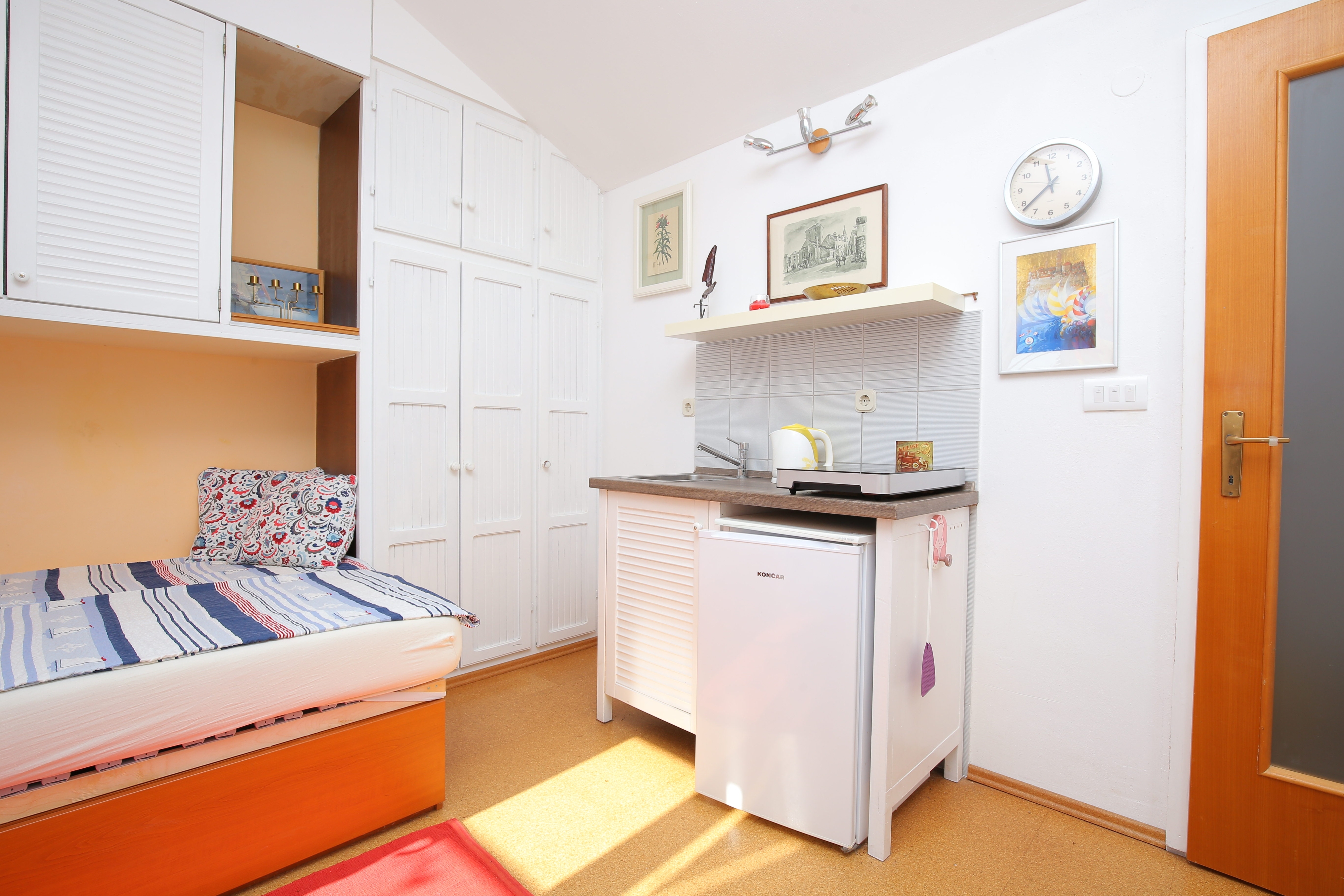 Studio flat can accommodate 2 guests. Beds are situated in 1 sleeping rooms, within 16m2. Guests can use a private terrace to enjoy the warm summer evenings. Food can be prepared using barbecue which is shared with other guests too. INCLUDED IN THE PRICE: tourist tax, final cleaning, air-conditioning, parking, internet, hairdryer, portable barbecue. OBLIGATORY ADDITIONAL COSTS: short stay fee (surcharge depending on a number of booked nights: 30% - 1, 20% - 2, 10% - 3). The availability of additional services for your chosen dates of stay, as well as their prices (if none are listed) must be checked ahead of time. Any additional services not shown in the price calculation are payable directly to the property owner and only if used by the visitor. Discounts to the base price: free day 14=13 (for reservations of 14 or more days you get one free day for the stay until 31122026).