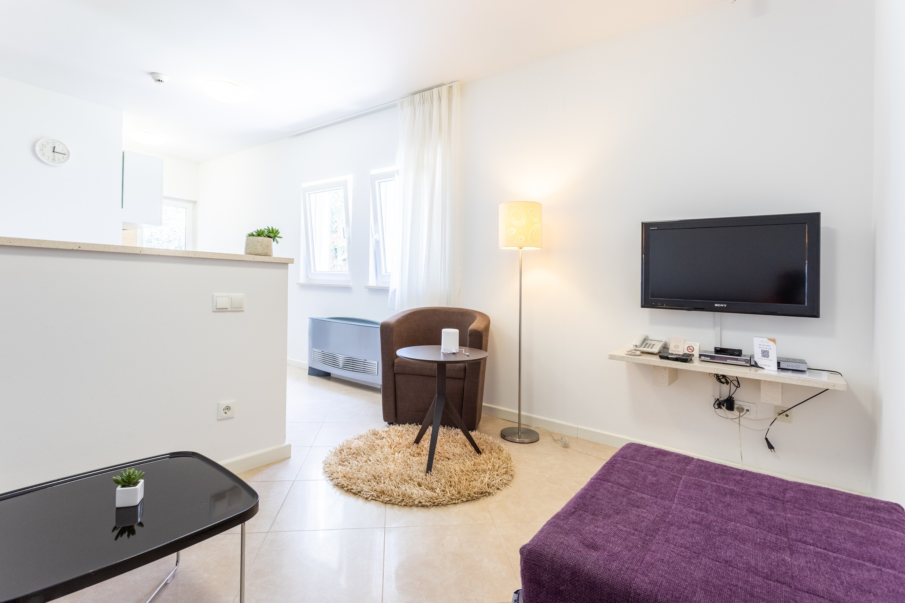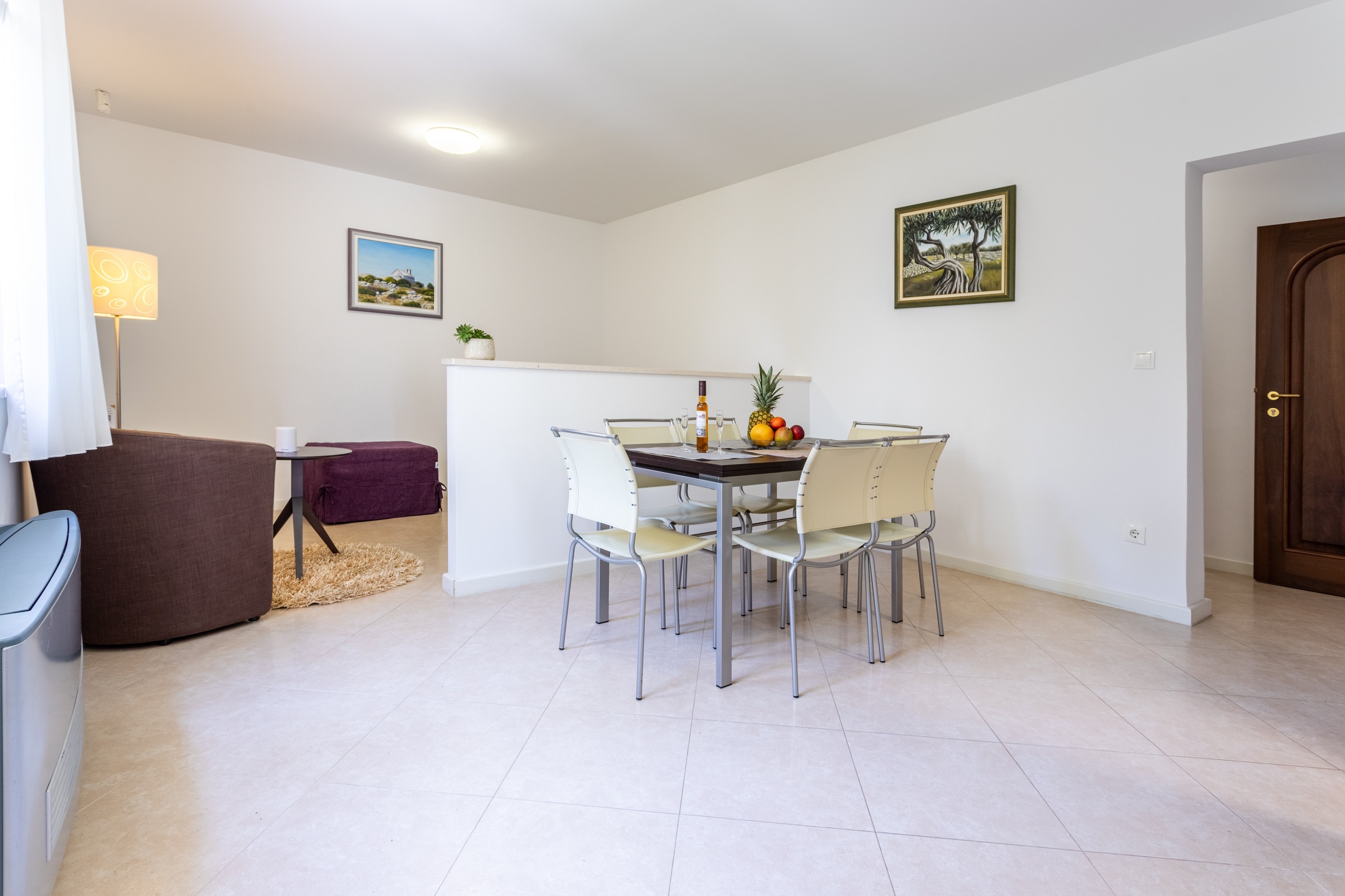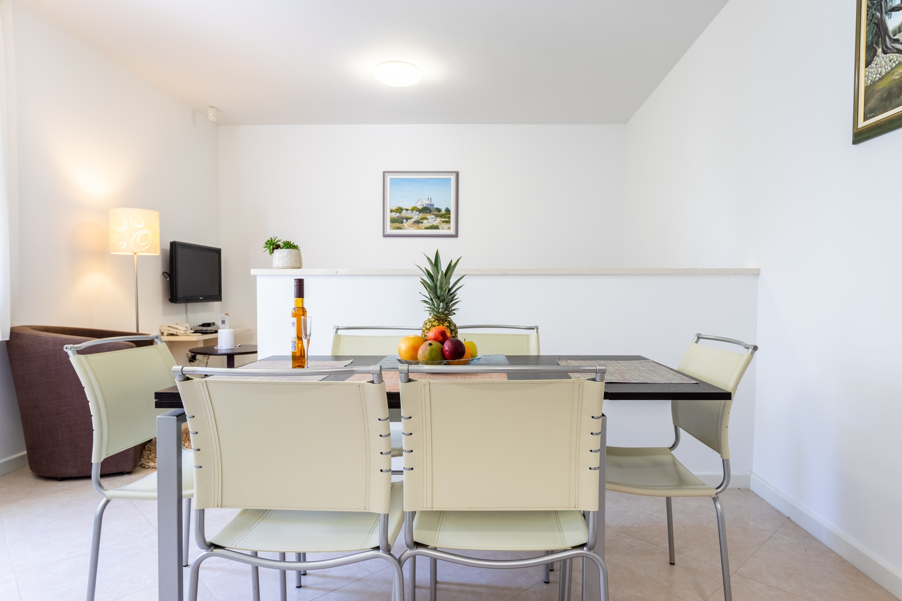 Apartment can accommodate 2 guests. Beds are situated in 2 sleeping rooms, within 61m2. Guests can use a private terrace to enjoy the warm summer evenings. Food can be prepared using barbecue which is shared with other guests too. Shared pool is on disposal during stay. INCLUDED IN THE PRICE: tourist tax, final cleaning, air-conditioning, central heating, pool, parking, internet, baby cot, iron, ironing board, hairdryer, 2 beds for children (included in the price). OBLIGATORY ADDITIONAL COSTS: short stay fee (surcharge depending on a number of booked nights: 30% - 1, 20% - 2, 10% - 3). The availability of additional services for your chosen dates of stay, as well as their prices (if none are listed) must be checked ahead of time. Any additional services not shown in the price calculation are payable directly to the property owner and only if used by the visitor.