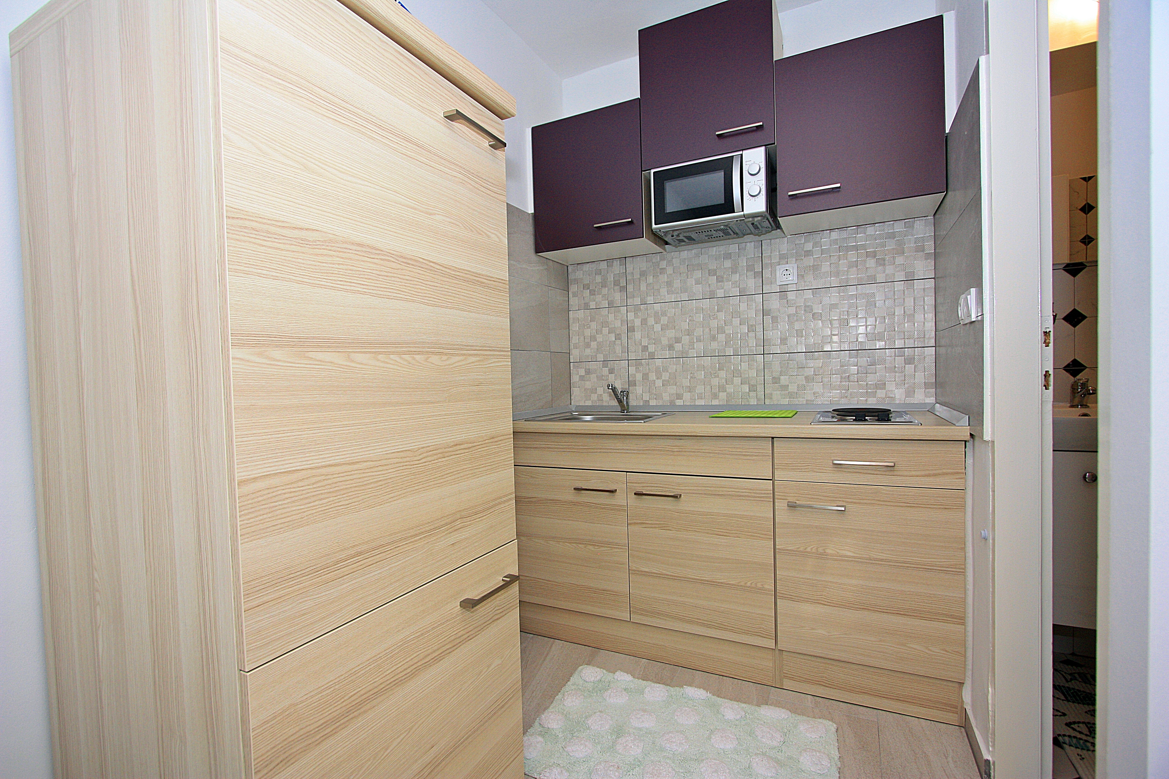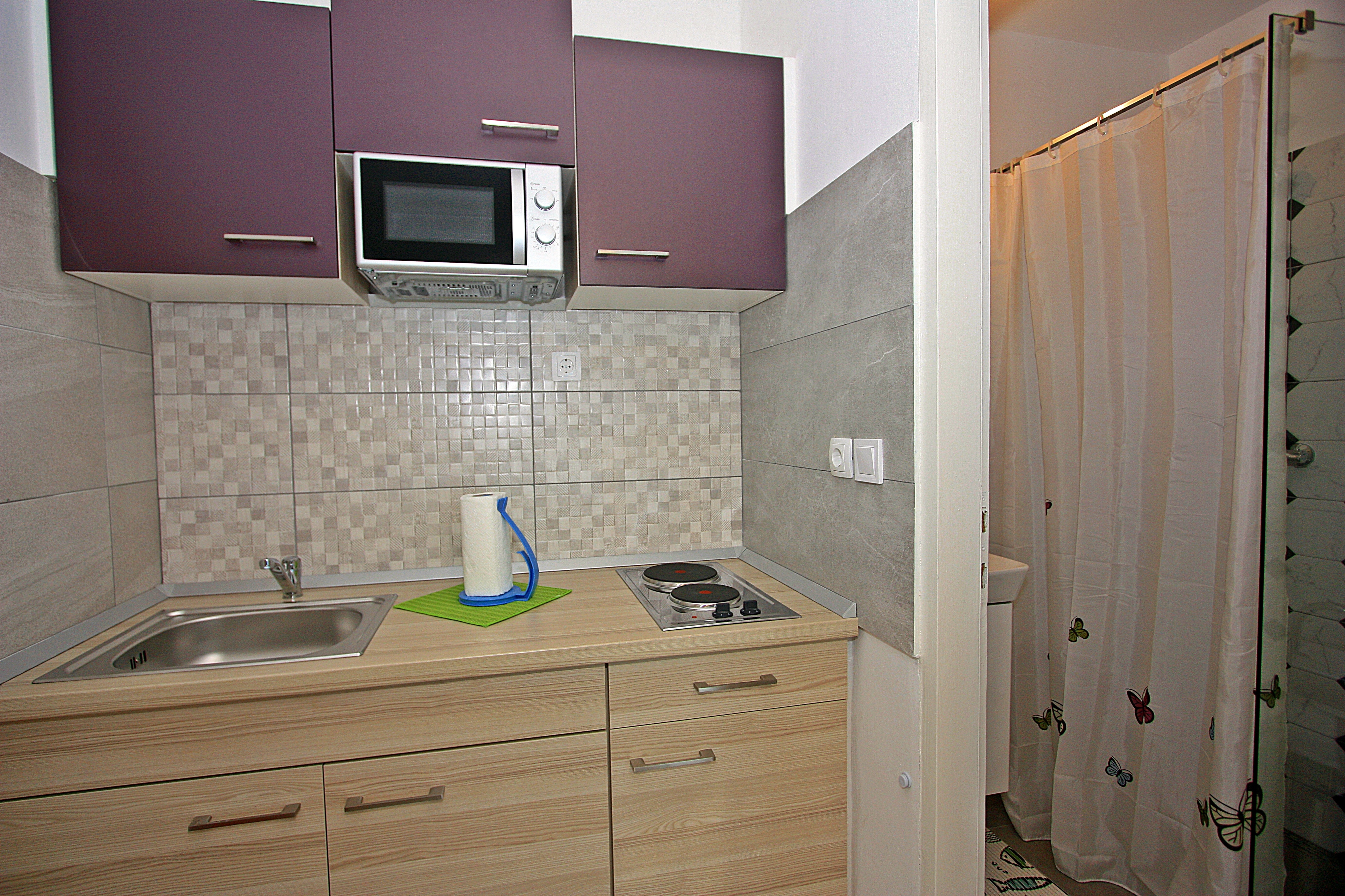 Studio flat can accommodate 2 guests. Beds are situated in living room, within 13m2. Guests can use a private terrace to enjoy the warm summer evenings. Food can be prepared using barbecue which is shared with other guests too. Other guests or hosts pass through the terrace of the booked accommodation unit. INCLUDED IN THE PRICE: tourist tax, final cleaning, air-conditioning, internet, iron, ironing board, hairdryer, portable barbecue. OBLIGATORY ADDITIONAL COSTS: short stay fee (surcharge depending on a number of booked nights: 30% - 1, 20% - 2, 10% - 3). OPTIONAL ADDITIONAL COSTS: laundry (€5.00 washing). The availability of additional services for your chosen dates of stay, as well as their prices (if none are listed) must be checked ahead of time. Any additional services not shown in the price calculation are payable directly to the property owner and only if used by the visitor. Discounts to the base price: free day 14=13 (for reservations of 14 or more days you get one free day for the stay until 31122026).