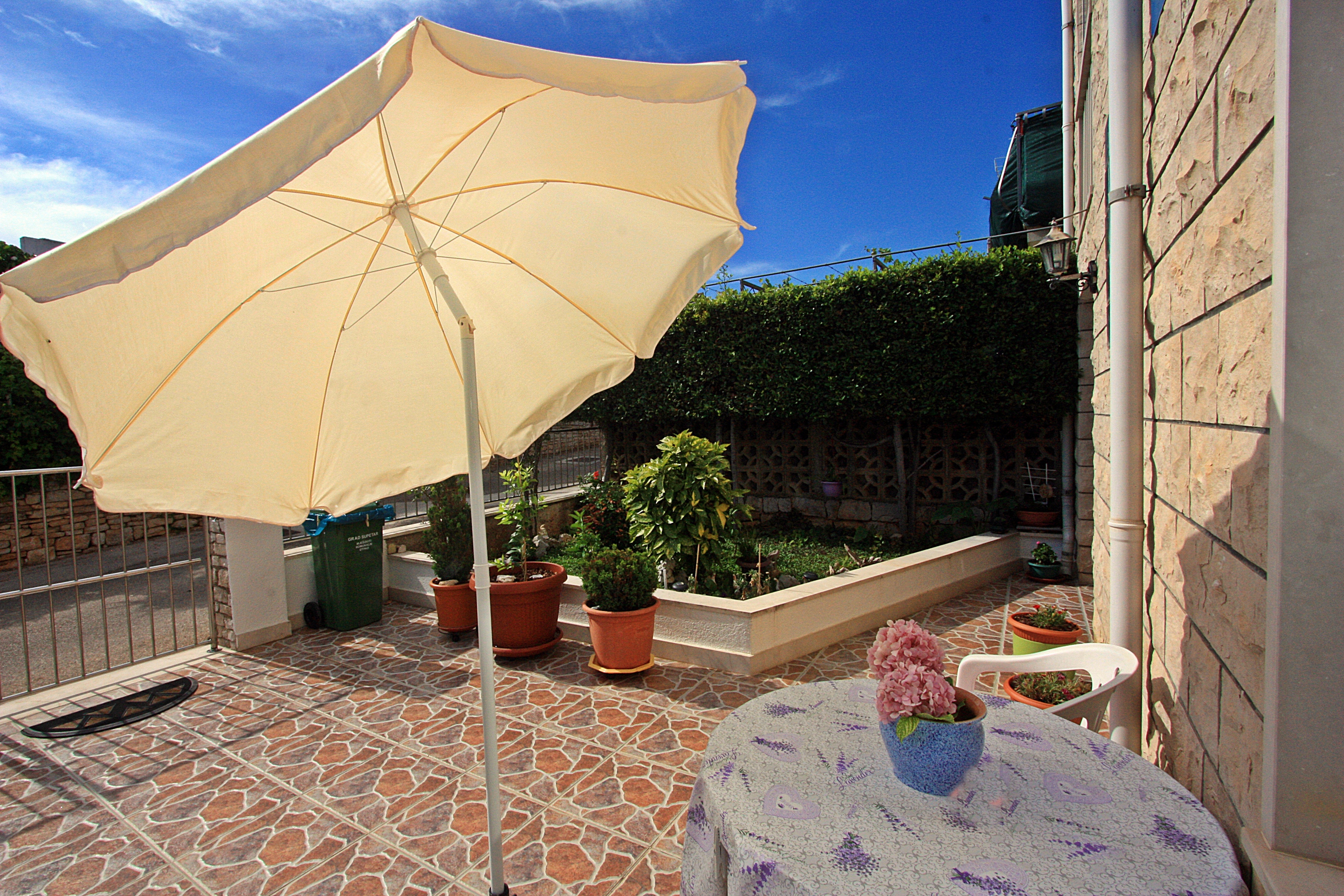 House 5665 in the town of Supetar, Brač - Central Dalmatia has accommodation units of type Apartment (1), Studio flat (1) and is 380 m away from the sea. The nearest beach to this accommodation is a pebble beach. The house is dividedseveral apartments,other guests will be staying during your holiday. Hosts will reside in the house during your holiday. The house owner is under no obligation to accept additional persons and pets that were not stated in the reservation request and it is necessary to report them in advance.AMENITIES Courtyard (30m2, Sitting area), WiFi Internet, Laundry service, Hairdryer, Iron, Ironing board, Portable barbecue LOCATION AND ACCESS Facility is situated near a local road Main road between the property and the beach Car access possible: Yes The facility is situated in relatively quiet surroundings The property isnt surrounded by greenery DISTANCES Sea: 380 m Beach: 380 m Center: 500 m Shop: 210 m Urgent medical care: 350 m Pharmacy: 250 m Exchange office: 180 m ATMBank machine: 170 m Tourist info: 650 m Ferry port: 600 m Bus station: 500 m Gas station: 550 m Farmers market: 500 m