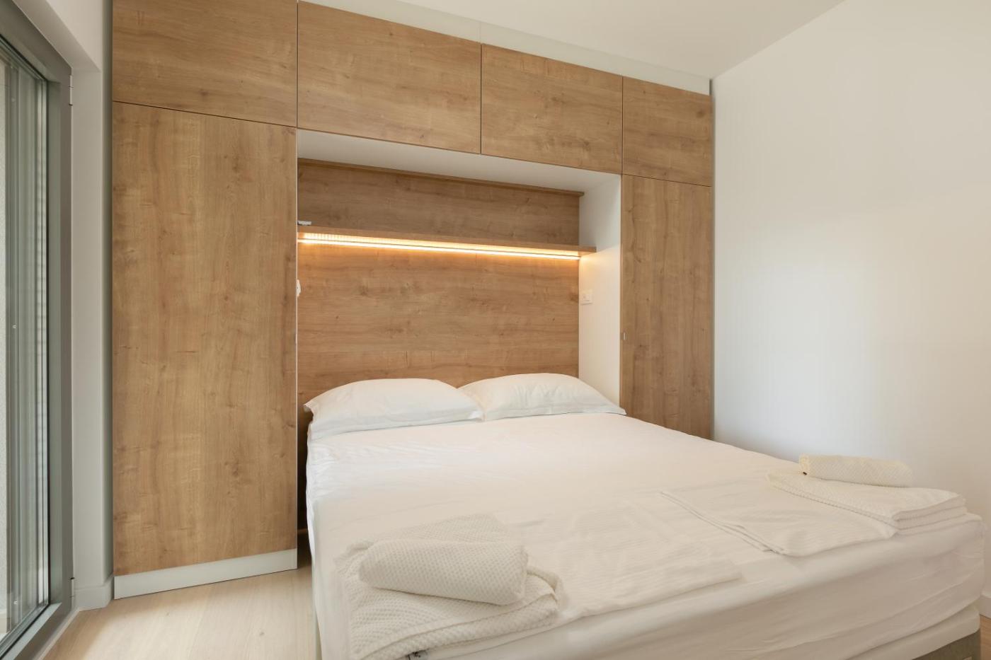 Two-Bedroom Apartment. Guests will have a special experience as this apartment provides a infinity pool. Featuring a private entrance, this air-conditioned apartment is comprised of 1 living room, 2 separate bedrooms and 1 bathroom with a walk-in shower and a hairdryer. Guests will find a stovetop, a refrigerator, a dishwasher and kitchenware in the well-equipped kitchen. The apartment also has a barbecue. The spacious apartment offers a washing machine, a coffee machine, a seating area as well as a terrace with sea views. The unit offers 3 beds. ;