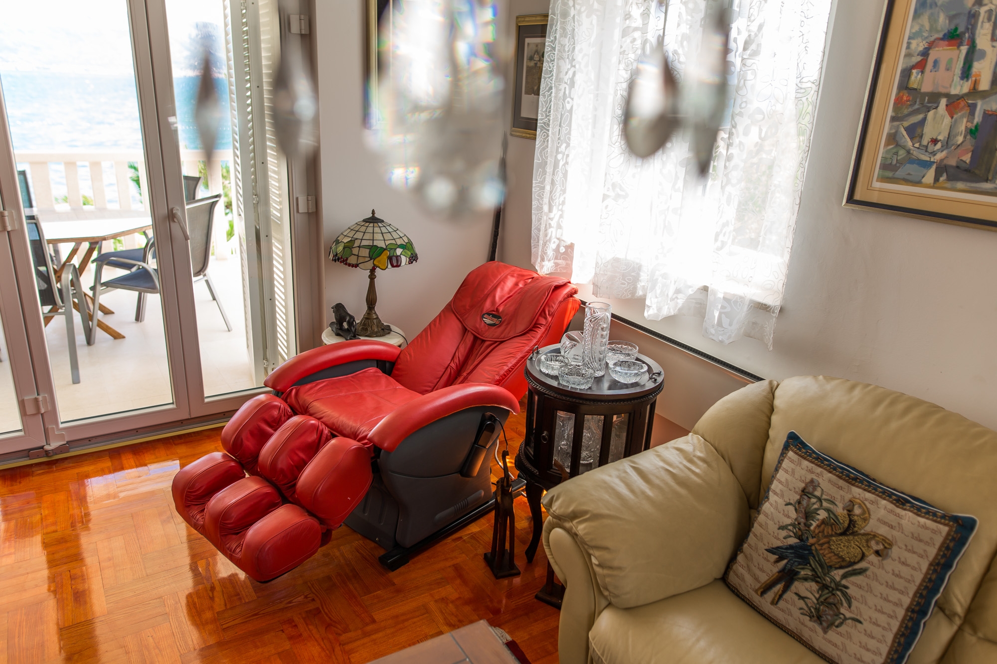 Apartment can accommodate 4 guests. Beds are situated in 2 sleeping rooms, within 85m2. Guests can use a private terrace to enjoy the warm summer evenings. The apartment offers the sea view. Food can be prepared using barbecue which is shared with other guests too. For the booked accommodation unit the deposit is paid directly to the owner upon check-in (deposit amount is displayed on the website) INCLUDED IN THE PRICE: tourist tax, final cleaning, air-conditioning, parking, internet, laundry, boat mooring, baby cot, iron, ironing board, hairdryer, sunshade, sunchairs. OBLIGATORY ADDITIONAL COSTS: deposit (€200.00 one-time payment), short stay fee (surcharge depending on a number of booked nights: 30% - 1, 20% - 2, 10% - 3). The availability of additional services for your chosen dates of stay, as well as their prices (if none are listed) must be checked ahead of time. Any additional services not shown in the price calculation are payable directly to the property owner and only if used by the visitor. Discounts to the base price: free day 14=13 (for reservations of 14 or more days you get one free day for the stay until 31122026).