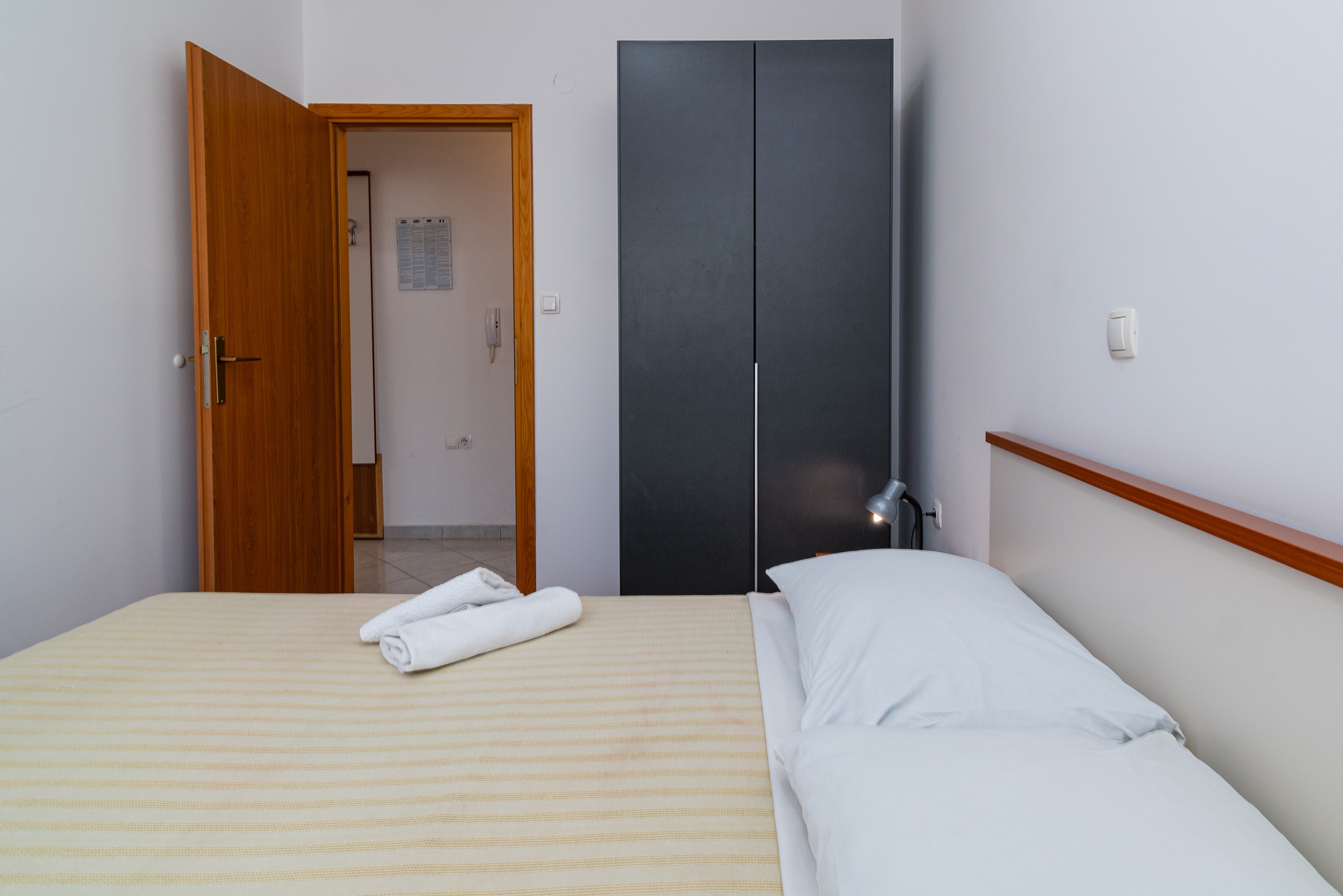 Studio flat can accommodate 3 guests. Beds are situated in 1 sleeping rooms, but also in the living room, within 34m2. Guests can use a private balcony to enjoy the warm summer evenings. The studio offers the sea view. Food can be prepared using barbecue which is shared with other guests too. Shared pool is on disposal during stay. This accommodation unit welcomes pets at an additional charge. INCLUDED IN THE PRICE: tourist tax, final cleaning, air-conditioning, pool, parking, internet, hairdryer. OPTIONAL ADDITIONAL COSTS: pets (€10.00 per night). The availability of additional services for your chosen dates of stay, as well as their prices (if none are listed) must be checked ahead of time. Any additional services not shown in the price calculation are payable directly to the property owner and only if used by the visitor.