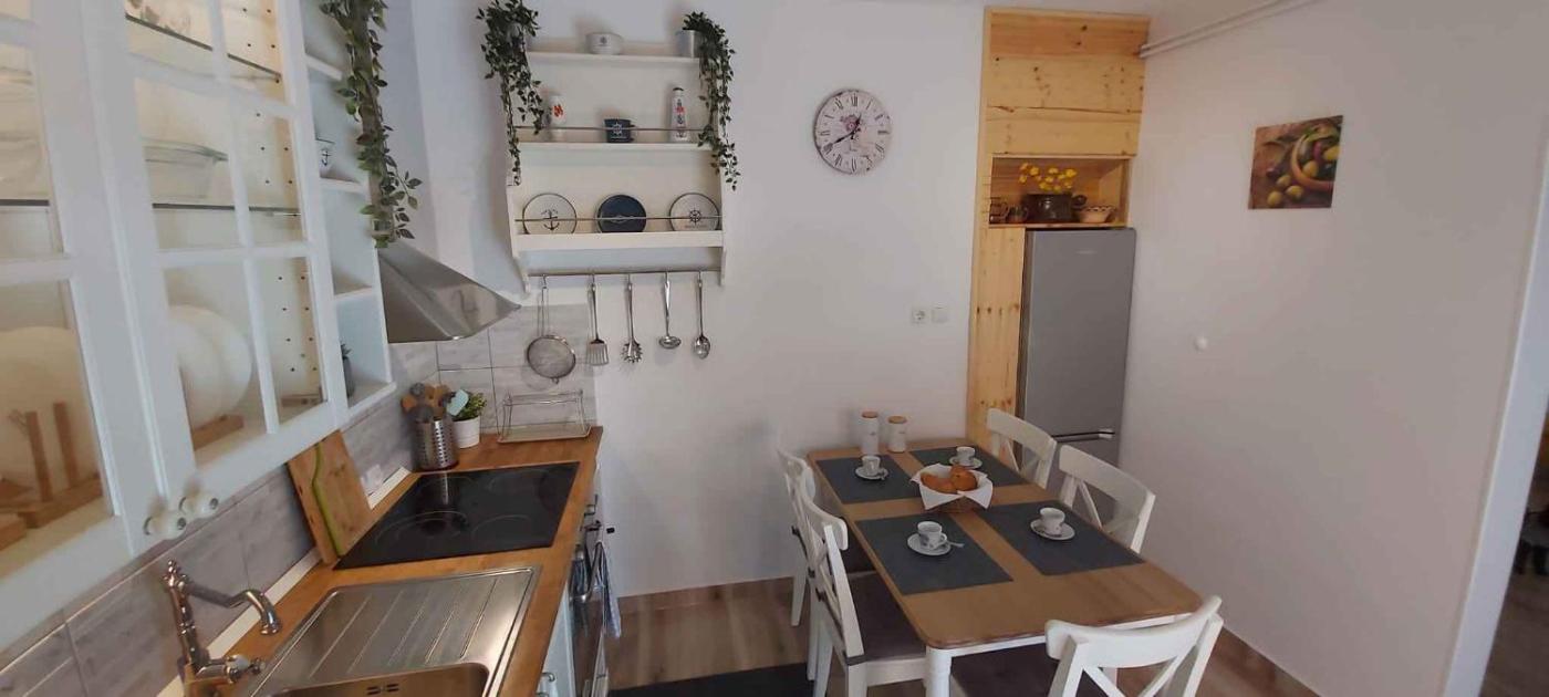 The spacious apartment features 2 bedrooms, a TV with satellite channels, a fully equipped kitchen with an oven and a fridge, a washing machine, and 1 bathroom with a shower.