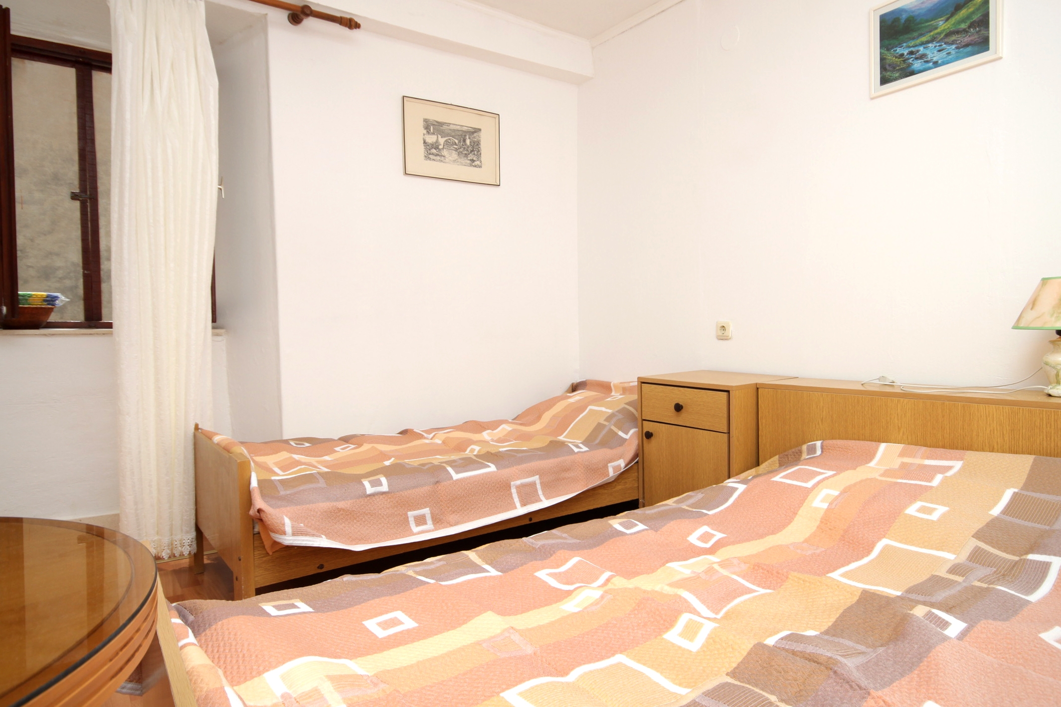 Apartment can accommodate 3 guests. Beds are situated in 1 sleeping rooms, within 25m2. Food can be prepared using barbecue which is shared with other guests too. There is no balcony or terrace in the reserved accommodation unit. INCLUDED IN THE PRICE: tourist tax, final cleaning, air-conditioning, internet, laundry, baby cot, iron, ironing board, hairdryer, portable barbecue. OBLIGATORY ADDITIONAL COSTS: short stay fee (surcharge depending on a number of booked nights: 30% - 1, 20% - 2, 10% - 3). The availability of additional services for your chosen dates of stay, as well as their prices (if none are listed) must be checked ahead of time. Any additional services not shown in the price calculation are payable directly to the property owner and only if used by the visitor. Discounts to the base price: free day 14=13 (for reservations of 14 or more days you get one free day for the stay until 31122026).