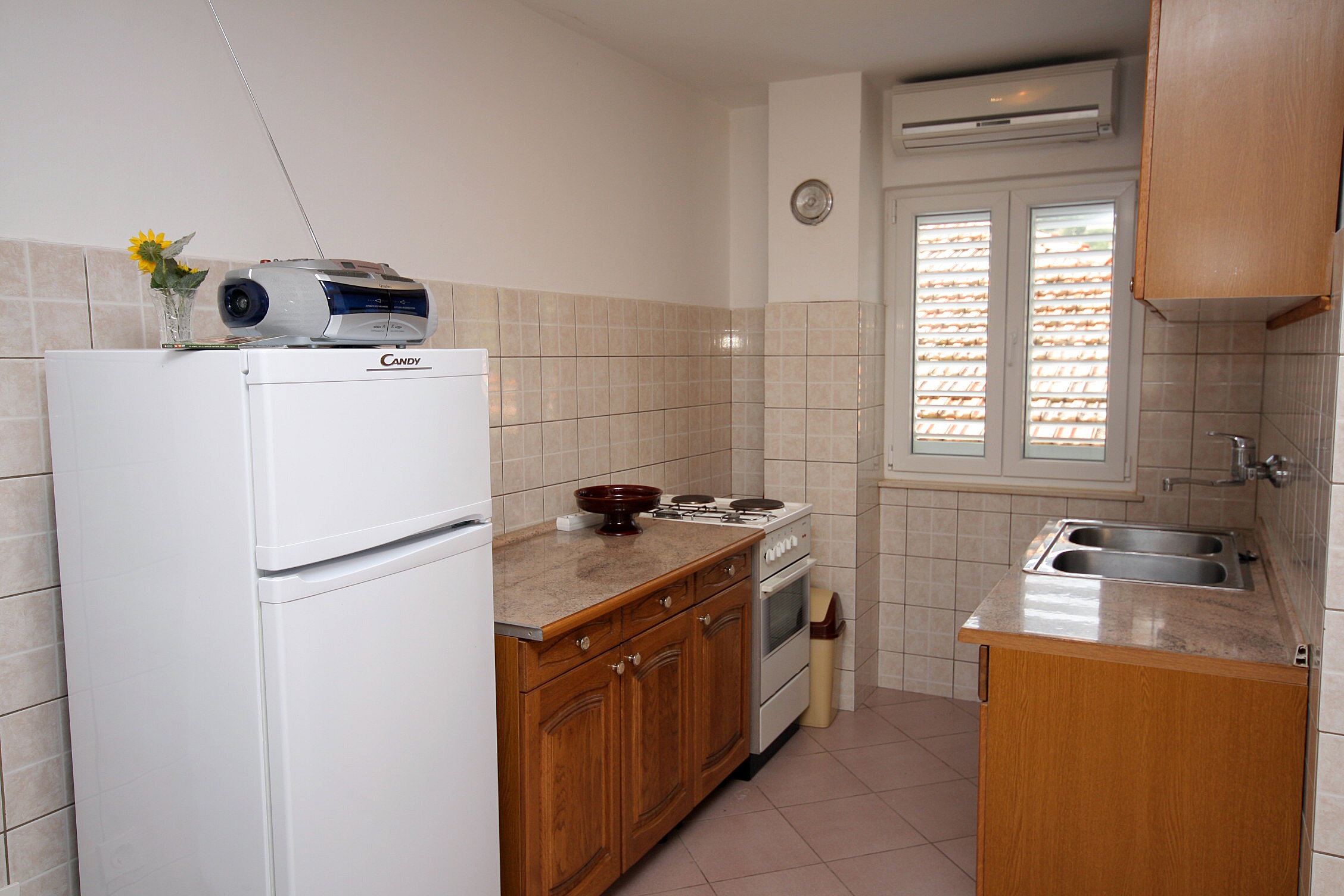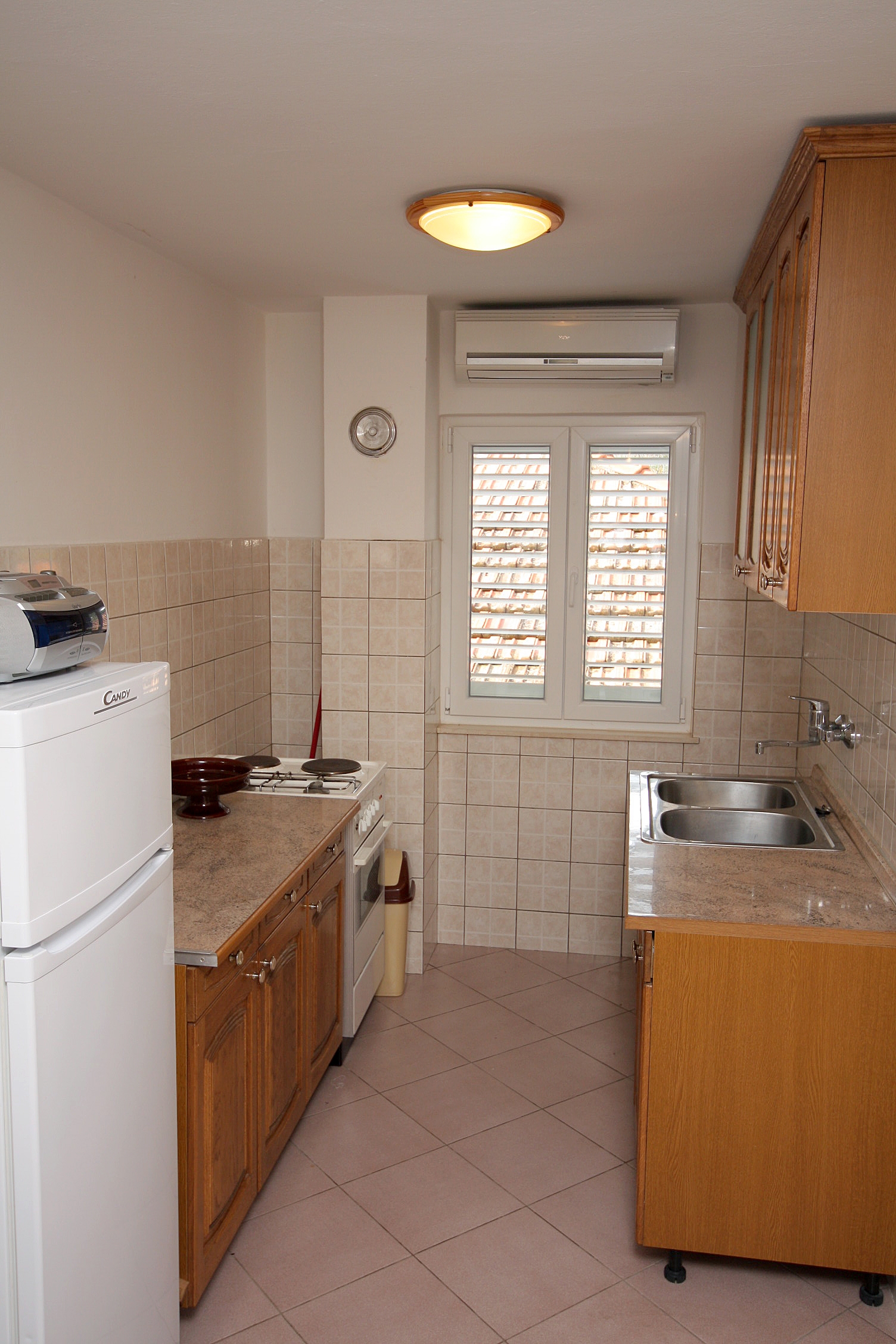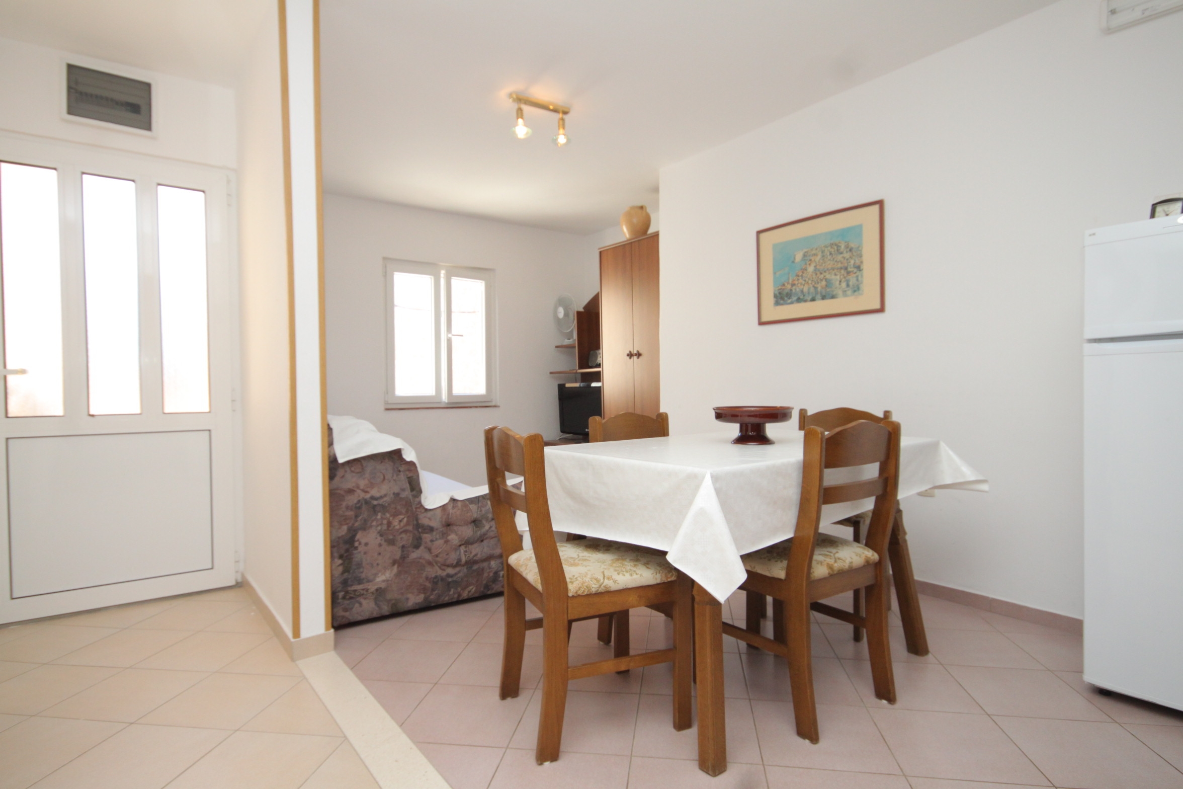 Apartment can accommodate 4 guests. Beds are situated in 2 sleeping rooms, within 41m2. Guests can use a private terrace to enjoy the warm summer evenings. The apartment offers the sea view. Food can be prepared using barbecue which is shared with other guests too. INCLUDED IN THE PRICE: tourist tax, final cleaning, parking, internet, boat mooring, baby cot, iron, ironing board, hairdryer, portable barbecue. OBLIGATORY ADDITIONAL COSTS: short stay fee (surcharge depending on a number of booked nights: 30% - 1, 20% - 2, 10% - 3). OPTIONAL ADDITIONAL COSTS: air-conditioning (€8.00 per night), laundry (€8.00 washing). The availability of additional services for your chosen dates of stay, as well as their prices (if none are listed) must be checked ahead of time. Any additional services not shown in the price calculation are payable directly to the property owner and only if used by the visitor.