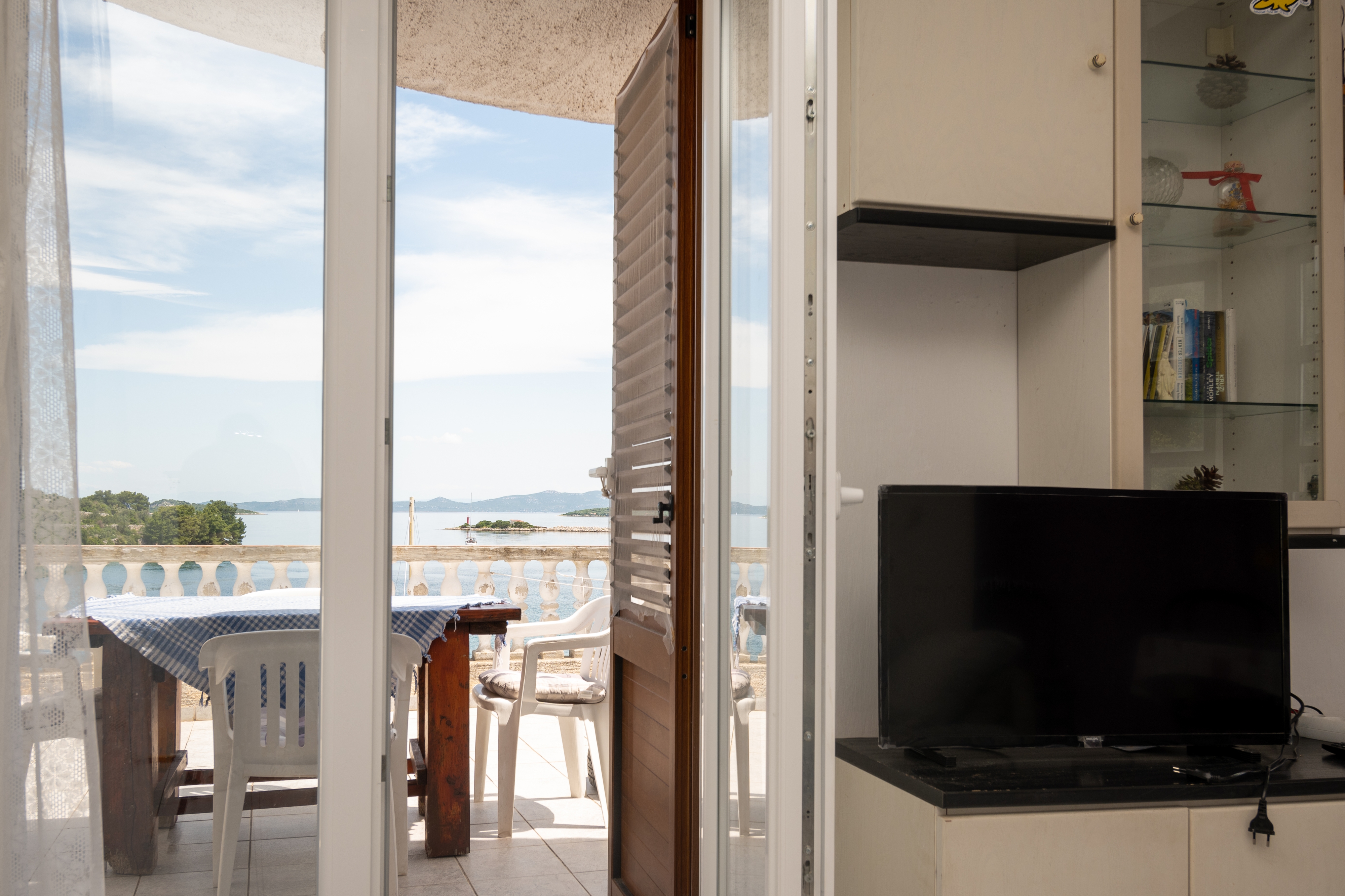 Apartment can accommodate 3 guests. Beds are situated in 1 sleeping rooms, but also in the living room, within 42m2. Guests can use a private terrace to enjoy the warm summer evenings. The apartment offers the sea view. Food can be prepared using barbecue which is shared with other guests too. This accommodation unit welcomes pets at an additional charge. INCLUDED IN THE PRICE: tourist tax, final cleaning, air-conditioning, parking, garage, internet, boat mooring, iron, ironing board, hairdryer, sunshade. OBLIGATORY ADDITIONAL COSTS: short stay fee (surcharge depending on a number of booked nights: 30% - 1, 20% - 2, 10% - 3). OPTIONAL ADDITIONAL COSTS: laundry (€5.00 washing), pets (€5.00 per night). The availability of additional services for your chosen dates of stay, as well as their prices (if none are listed) must be checked ahead of time. Any additional services not shown in the price calculation are payable directly to the property owner and only if used by the visitor.
