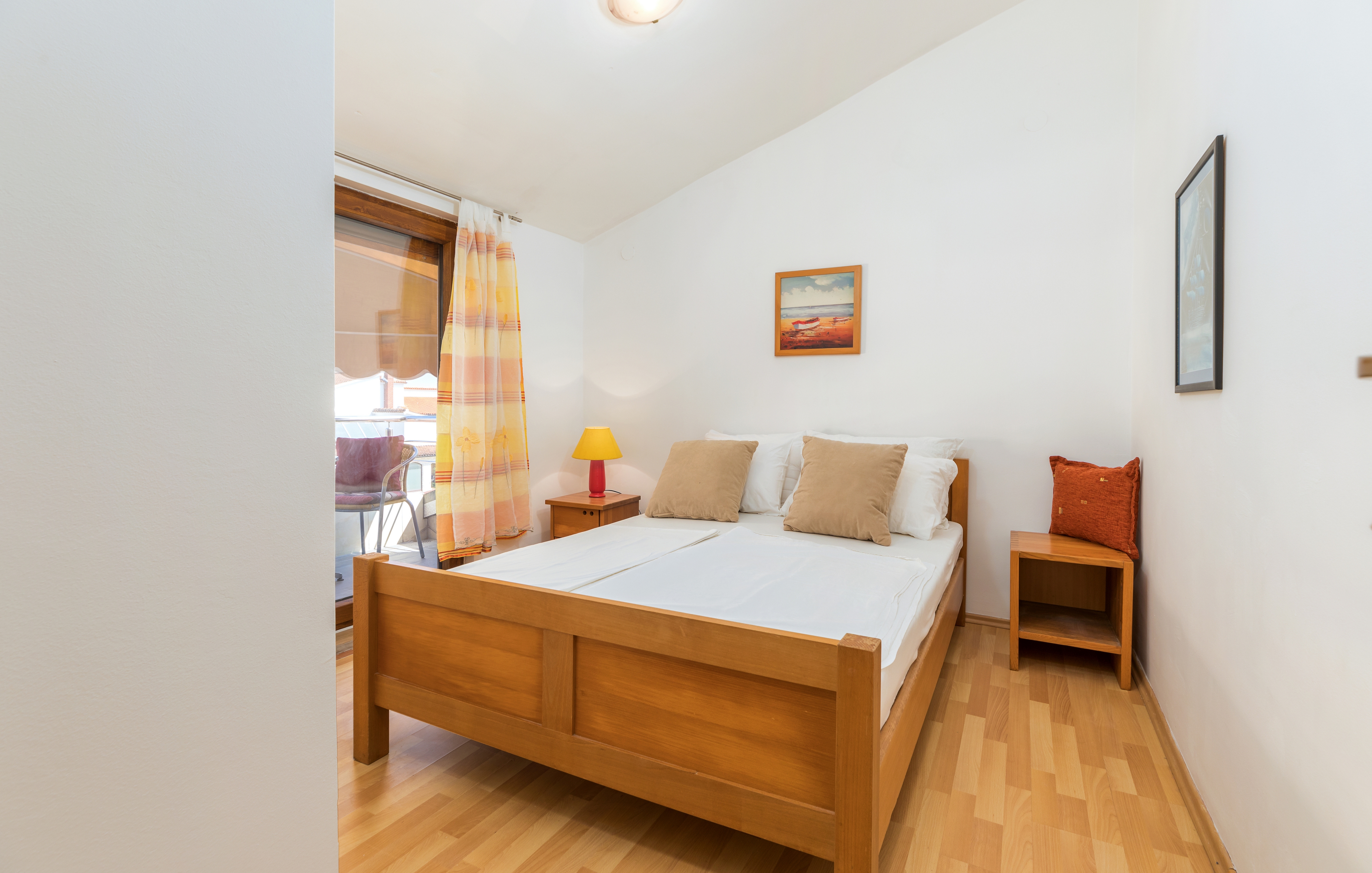 Apartment can accommodate 4 guests. Beds are situated in 1 sleeping rooms, but also in the living room, within 35m2. Guests can use a private balcony to enjoy the warm summer evenings. Food can be prepared using barbecue which is shared with other guests too. INCLUDED IN THE PRICE: tourist tax, final cleaning, air-conditioning, parking, internet, iron, ironing board, hairdryer, portable barbecue. OBLIGATORY ADDITIONAL COSTS: short stay fee (surcharge depending on a number of booked nights: 30% - 1, 20% - 2, 10% - 3). The availability of additional services for your chosen dates of stay, as well as their prices (if none are listed) must be checked ahead of time. Any additional services not shown in the price calculation are payable directly to the property owner and only if used by the visitor.