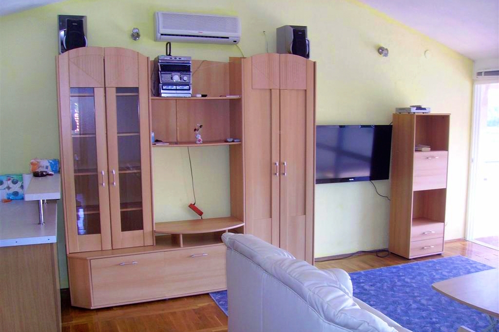 Apartment can accommodate 6 guests. Beds are situated in 3 sleeping rooms, within 78m2. Guests can use a private terrace to enjoy the warm summer evenings. The apartment offers the sea view. Food can be prepared using barbecue which is shared with other guests too. This accommodation unit welcomes pets at an additional charge. INCLUDED IN THE PRICE: tourist tax, final cleaning, air-conditioning, parking, iron, hairdryer. OBLIGATORY ADDITIONAL COSTS: short stay fee (surcharge depending on a number of booked nights: 30% - 1, 20% - 2, 10% - 3). OPTIONAL ADDITIONAL COSTS: laundry (€5.00 washing), boat mooring (€7.00 per night), pets (€7.00 per night). The availability of additional services for your chosen dates of stay, as well as their prices (if none are listed) must be checked ahead of time. Any additional services not shown in the price calculation are payable directly to the property owner and only if used by the visitor.