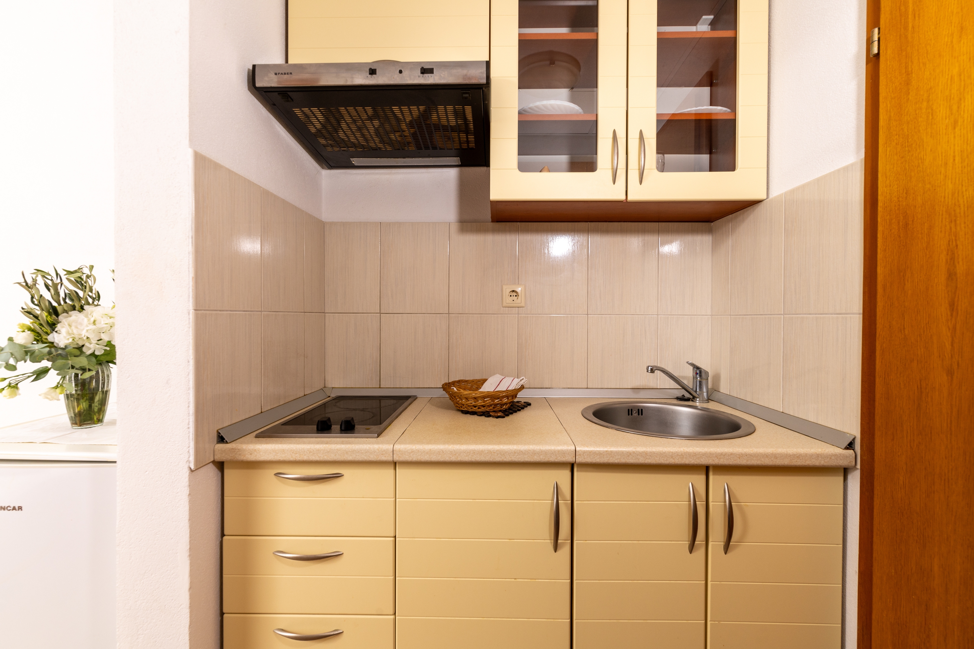 Studio flat can accommodate 2 guests. Beds are situated in 1 sleeping rooms, within 16m2. Guests can use a private balcony to enjoy the warm summer evenings. Food can be prepared using barbecue which is shared with other guests too. This accommodation unit welcomes pets at an additional charge. INCLUDED IN THE PRICE: tourist tax, final cleaning, air-conditioning, parking, internet, boat mooring, baby cot. OPTIONAL ADDITIONAL COSTS: pets (€13.00 per night). The availability of additional services for your chosen dates of stay, as well as their prices (if none are listed) must be checked ahead of time. Any additional services not shown in the price calculation are payable directly to the property owner and only if used by the visitor.