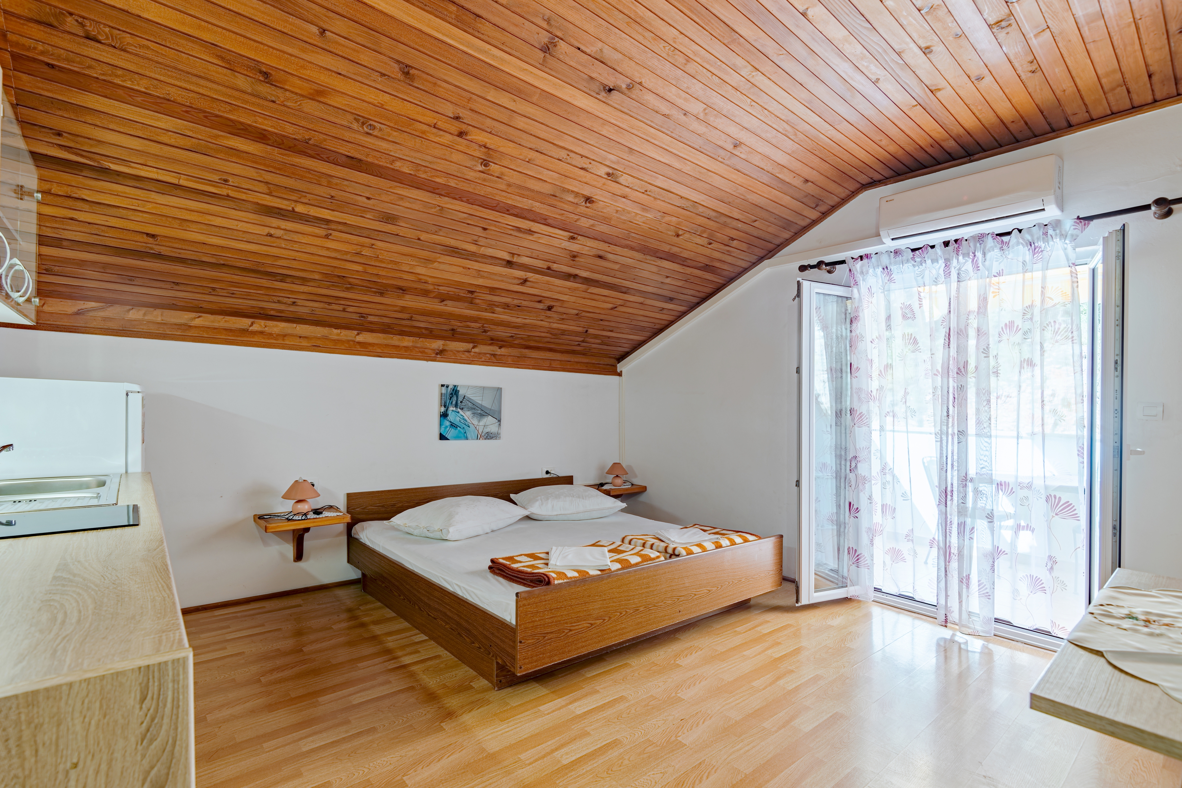 Studio flat can accommodate 2 guests. Beds are situated in 1 sleeping rooms, within 21m2. Guests can use a private balcony to enjoy the warm summer evenings. Food can be prepared using barbecue which is shared with other guests too. INCLUDED IN THE PRICE: tourist tax, final cleaning, air-conditioning, parking, internet, laundry, hairdryer. OBLIGATORY ADDITIONAL COSTS: short stay fee (surcharge depending on a number of booked nights: 30% - 1, 20% - 2, 10% - 3). The availability of additional services for your chosen dates of stay, as well as their prices (if none are listed) must be checked ahead of time. Any additional services not shown in the price calculation are payable directly to the property owner and only if used by the visitor.