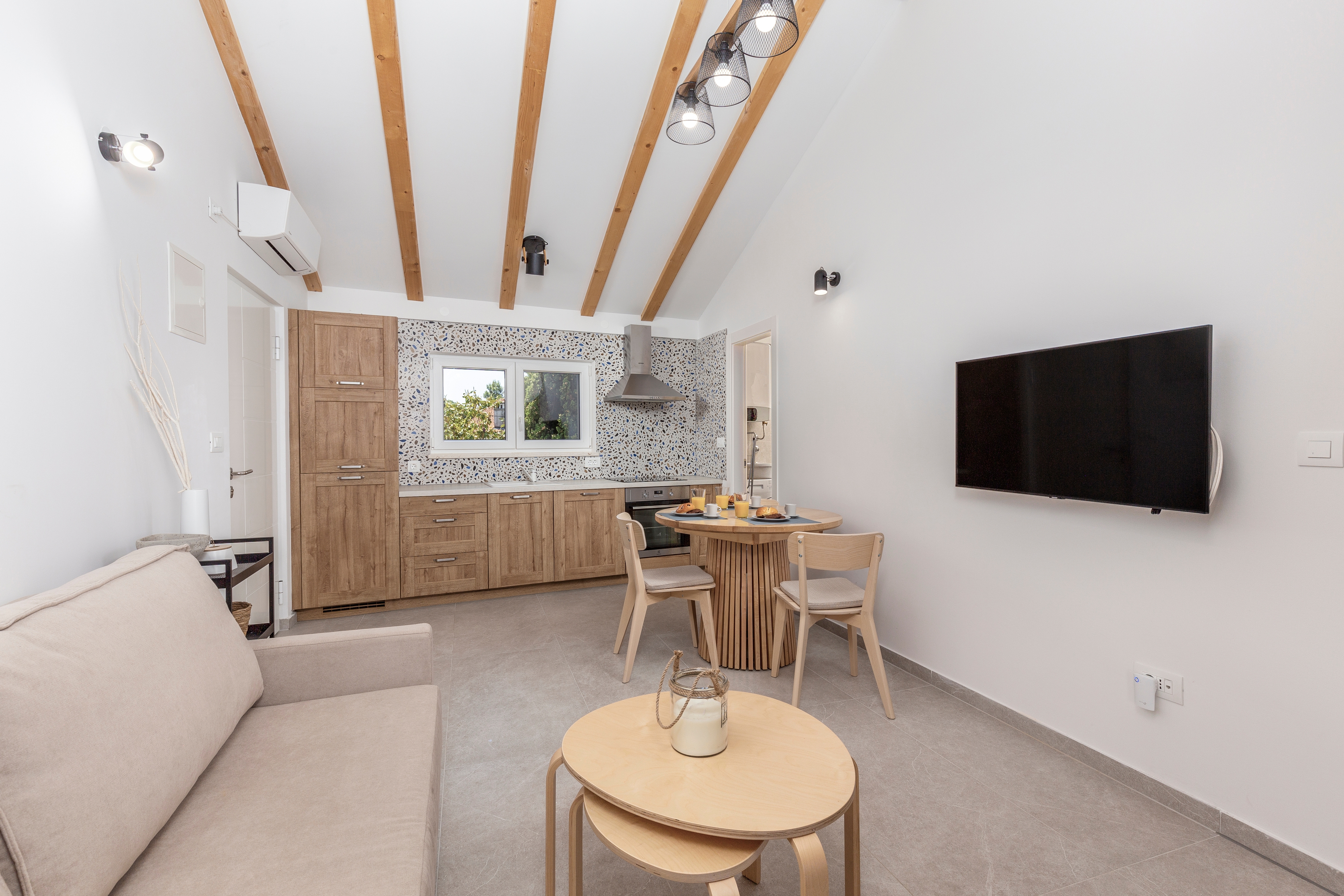 Apartment can accommodate 3 guests. Beds are situated in 1 sleeping rooms, but also in the living room, within 34m2. Guests can use a private terrace to enjoy the warm summer evenings. The apartment offers the sea view. This accommodation unit welcomes pets at an additional charge. INCLUDED IN THE PRICE: final cleaning, air-conditioning, parking, internet, baby cot, hairdryer. OBLIGATORY ADDITIONAL COSTS: tourist tax (adults €0.93 - €2.00 nightperson, discount for children aged 12 - 17), short stay fee (surcharge depending on a number of booked nights: 30% - 1, 20% - 2, 10% - 3). OPTIONAL ADDITIONAL COSTS: pets (€15.00 per night), additional bed (€10.00 per night). The availability of additional services for your chosen dates of stay, as well as their prices (if none are listed) must be checked ahead of time. Any additional services not shown in the price calculation are payable directly to the property owner and only if used by the visitor.