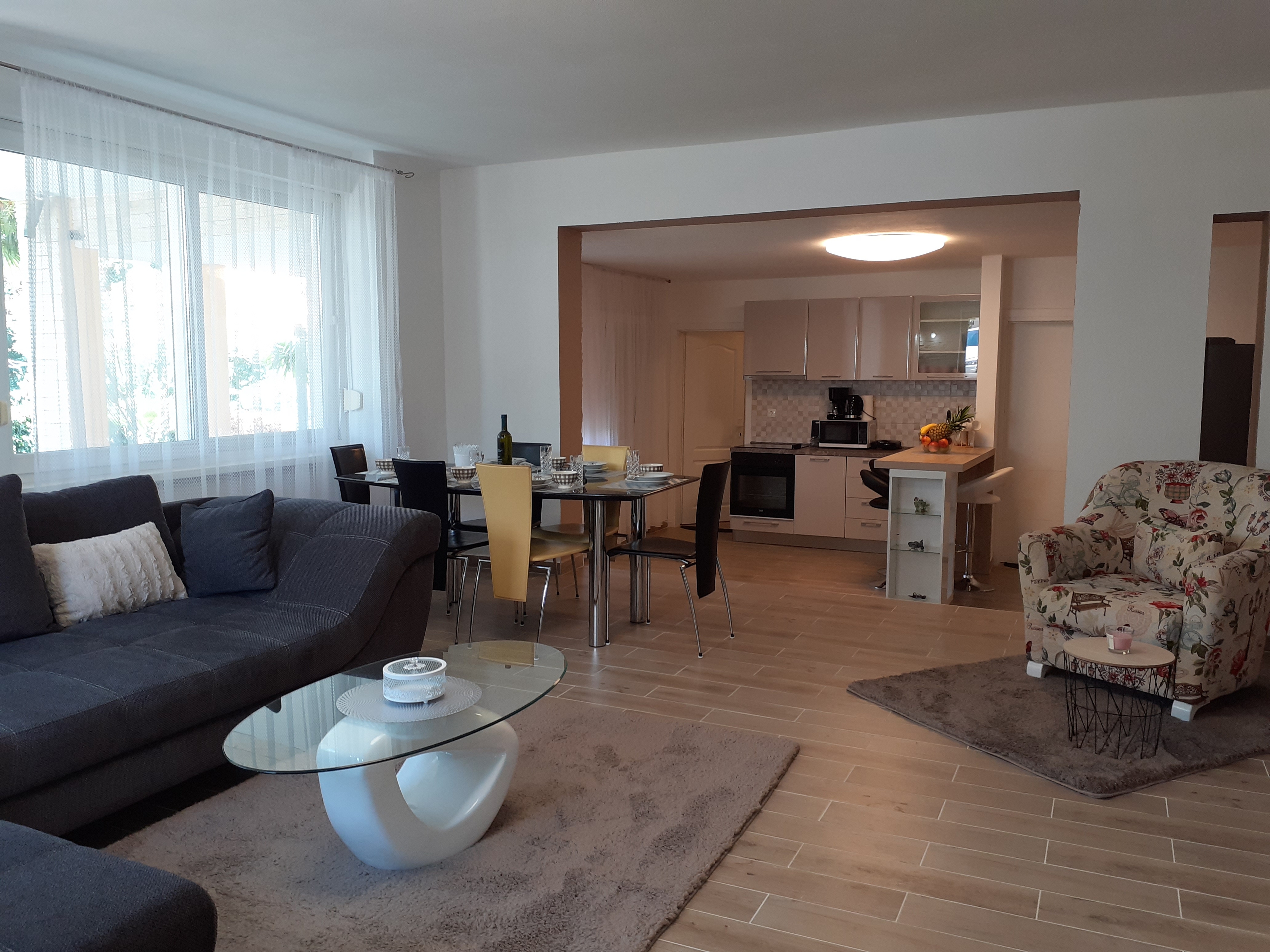 Apartment can accommodate 6 guests. Beds are situated in 3 sleeping rooms, but also in the living room, within 94m2. Guests can use a private terrace to enjoy the warm summer evenings. For full enjoyment and relaxation there is a private barbecue for this accommodation guests only. During stay, there is a private pool for relaxation and pleasure. INCLUDED IN THE PRICE: tourist tax, final cleaning, air-conditioning, pool, parking, internet, hairdryer. OBLIGATORY ADDITIONAL COSTS: short stay fee (surcharge depending on a number of booked nights: 30% - 1, 20% - 2, 10% - 3). The availability of additional services for your chosen dates of stay, as well as their prices (if none are listed) must be checked ahead of time. Any additional services not shown in the price calculation are payable directly to the property owner and only if used by the visitor.