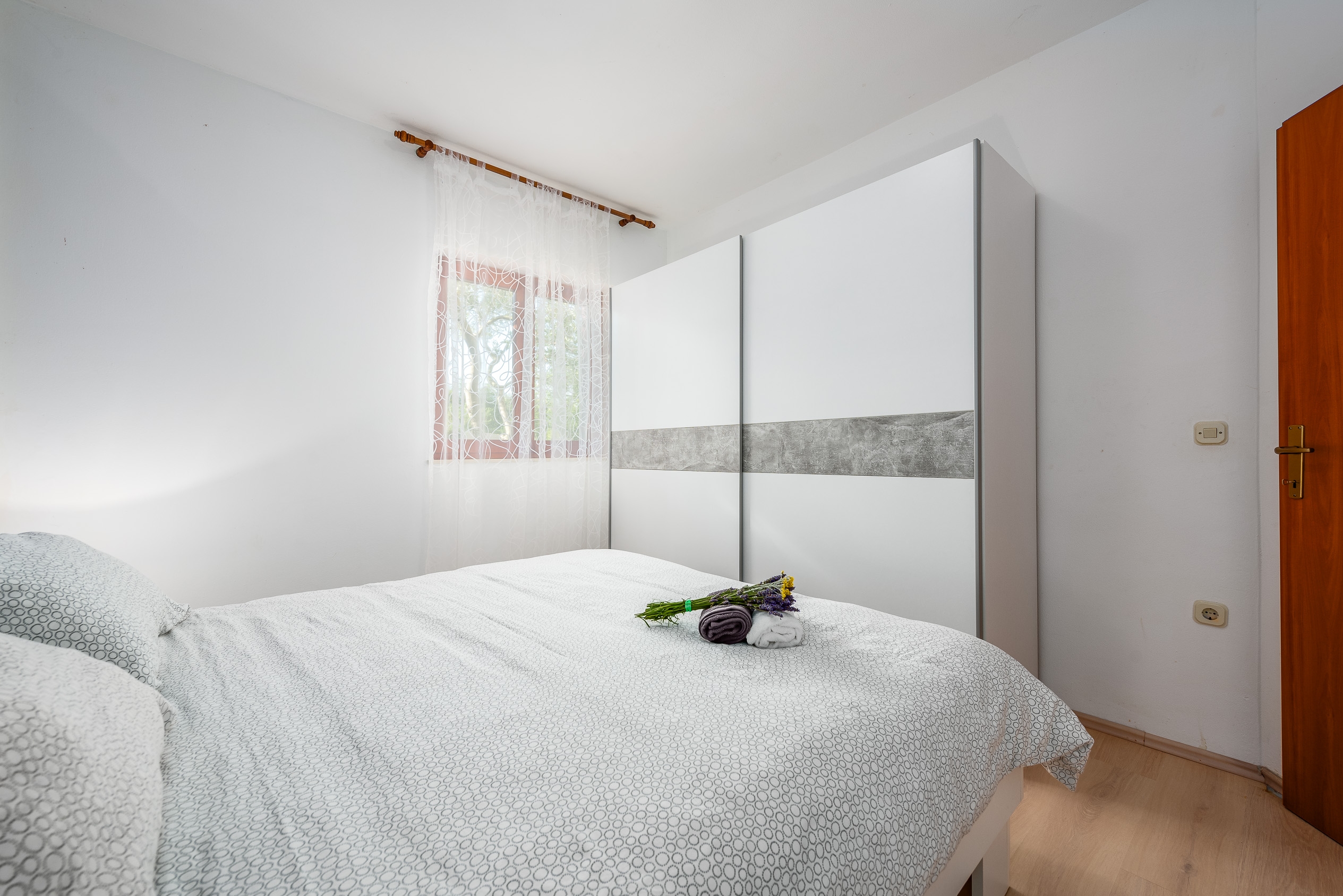 Apartment can accommodate 5 guests. Beds are situated in 2 sleeping rooms, but also in the living room, within 52m2. Guests can use a private terrace to enjoy the warm summer evenings. The apartment offers the sea view. Food can be prepared using barbecue which is shared with other guests too. Shared pool is on disposal during stay. This accommodation unit welcomes pets at an additional charge. INCLUDED IN THE PRICE: tourist tax, final cleaning, air-conditioning, pool, parking, internet, laundry, baby cot, iron, ironing board, hairdryer. OPTIONAL ADDITIONAL COSTS: pets (€10.00 per night), bicycle (€20.00 daily (per piece)). The availability of additional services for your chosen dates of stay, as well as their prices (if none are listed) must be checked ahead of time. Any additional services not shown in the price calculation are payable directly to the property owner and only if used by the visitor.