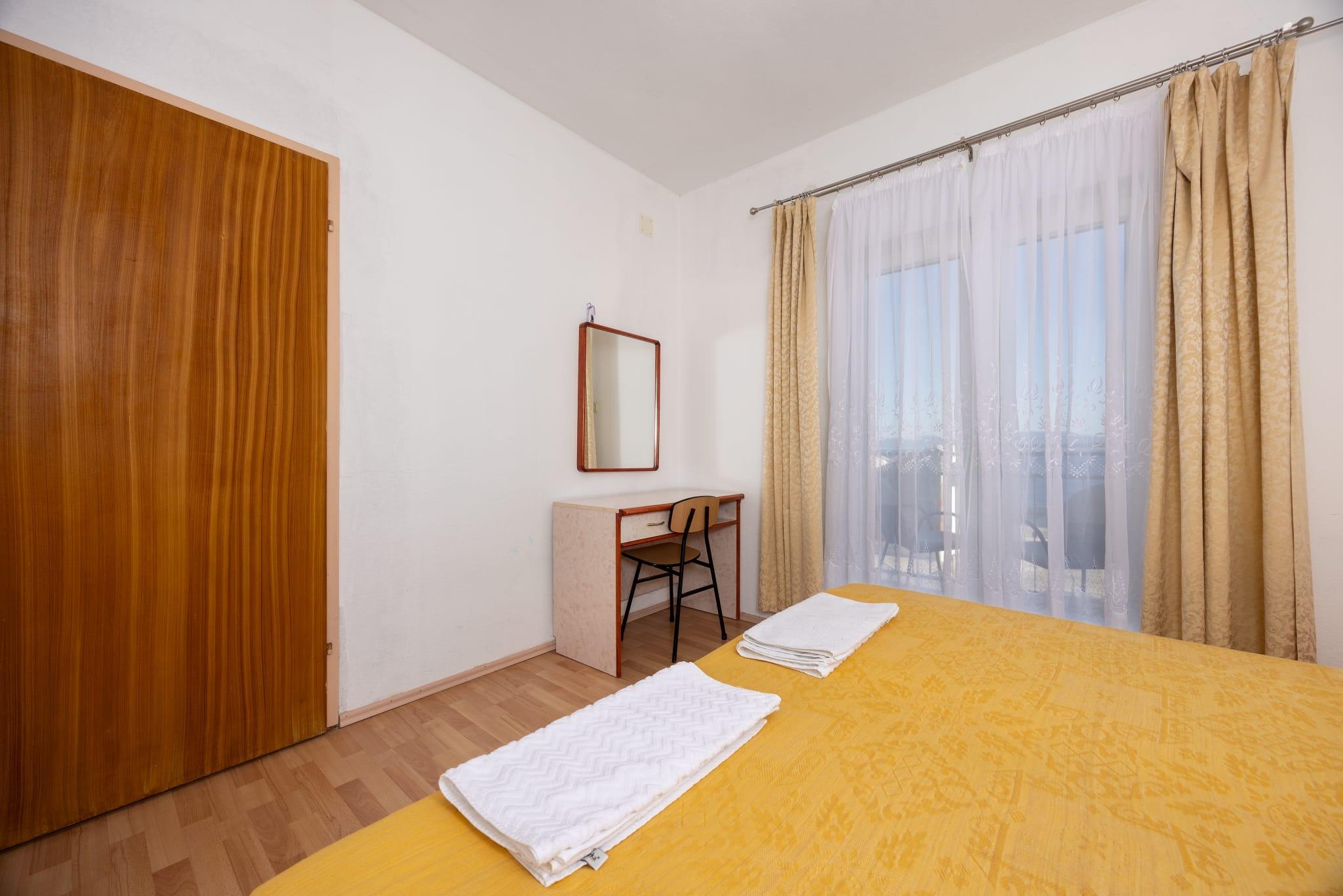 Apartment can accommodate 4 guests. Beds are situated in 1 sleeping rooms, but also in the living room, within 33m2. Guests can use a private balcony to enjoy the warm summer evenings. The apartment offers the sea view. Food can be prepared using barbecue which is shared with other guests too. This accommodation unit welcomes pets at an additional charge. INCLUDED IN THE PRICE: tourist tax, final cleaning, air-conditioning, parking, internet, baby cot, iron, ironing board, hairdryer. OBLIGATORY ADDITIONAL COSTS: short stay fee (surcharge depending on a number of booked nights: 30% - 1, 20% - 2, 10% - 3). OPTIONAL ADDITIONAL COSTS: pets (€10.00 per night). The availability of additional services for your chosen dates of stay, as well as their prices (if none are listed) must be checked ahead of time. Any additional services not shown in the price calculation are payable directly to the property owner and only if used by the visitor. Discounts to the base price: free day 14=13 (for reservations of 14 or more days you get one free day for the stay until 31122026).
