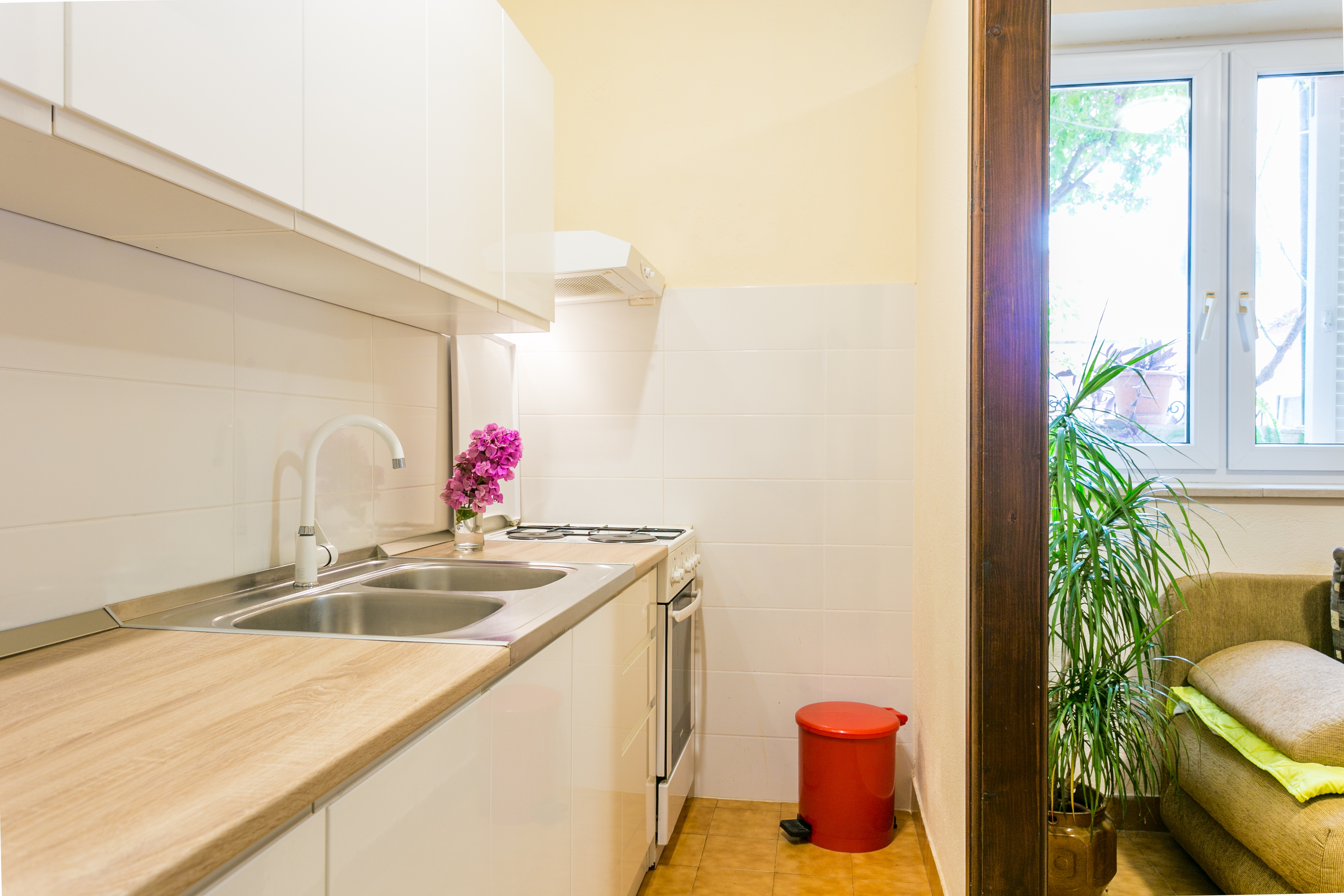 Apartment can accommodate 4 guests. Beds are situated in 1 sleeping rooms, but also in the living room, within 33m2. Guests can use a private terrace to enjoy the warm summer evenings. The apartment offers the sea view. This accommodation unit welcomes pets at an additional charge. Some of the rooms of the accommodation unit are not connected with the rest of the unit. INCLUDED IN THE PRICE: tourist tax, final cleaning, air-conditioning, parking, internet, laundry, iron, ironing board, hairdryer. OPTIONAL ADDITIONAL COSTS: pets (€7.00 per night), additional bed (€10.00 per night). The availability of additional services for your chosen dates of stay, as well as their prices (if none are listed) must be checked ahead of time. Any additional services not shown in the price calculation are payable directly to the property owner and only if used by the visitor.