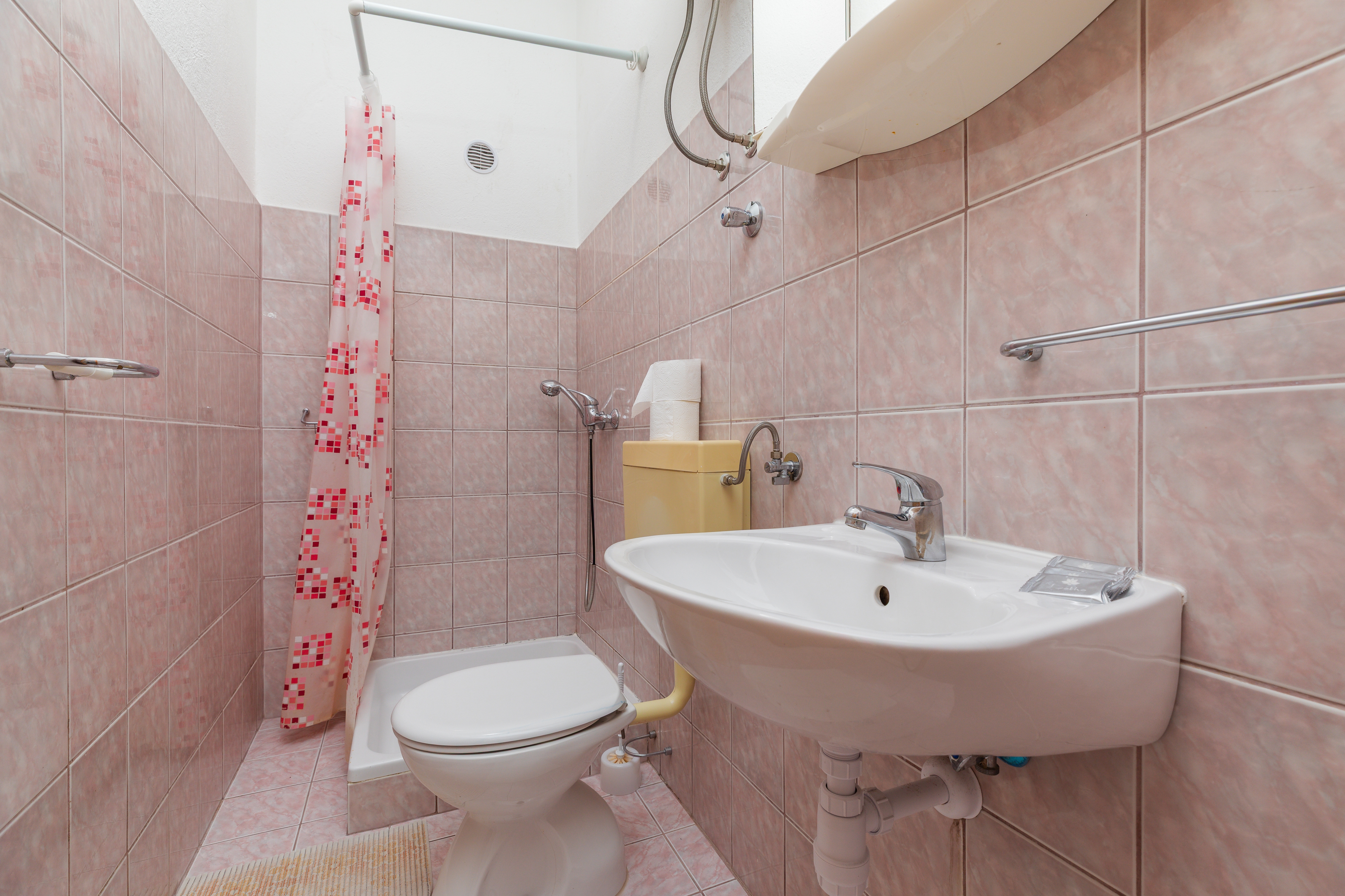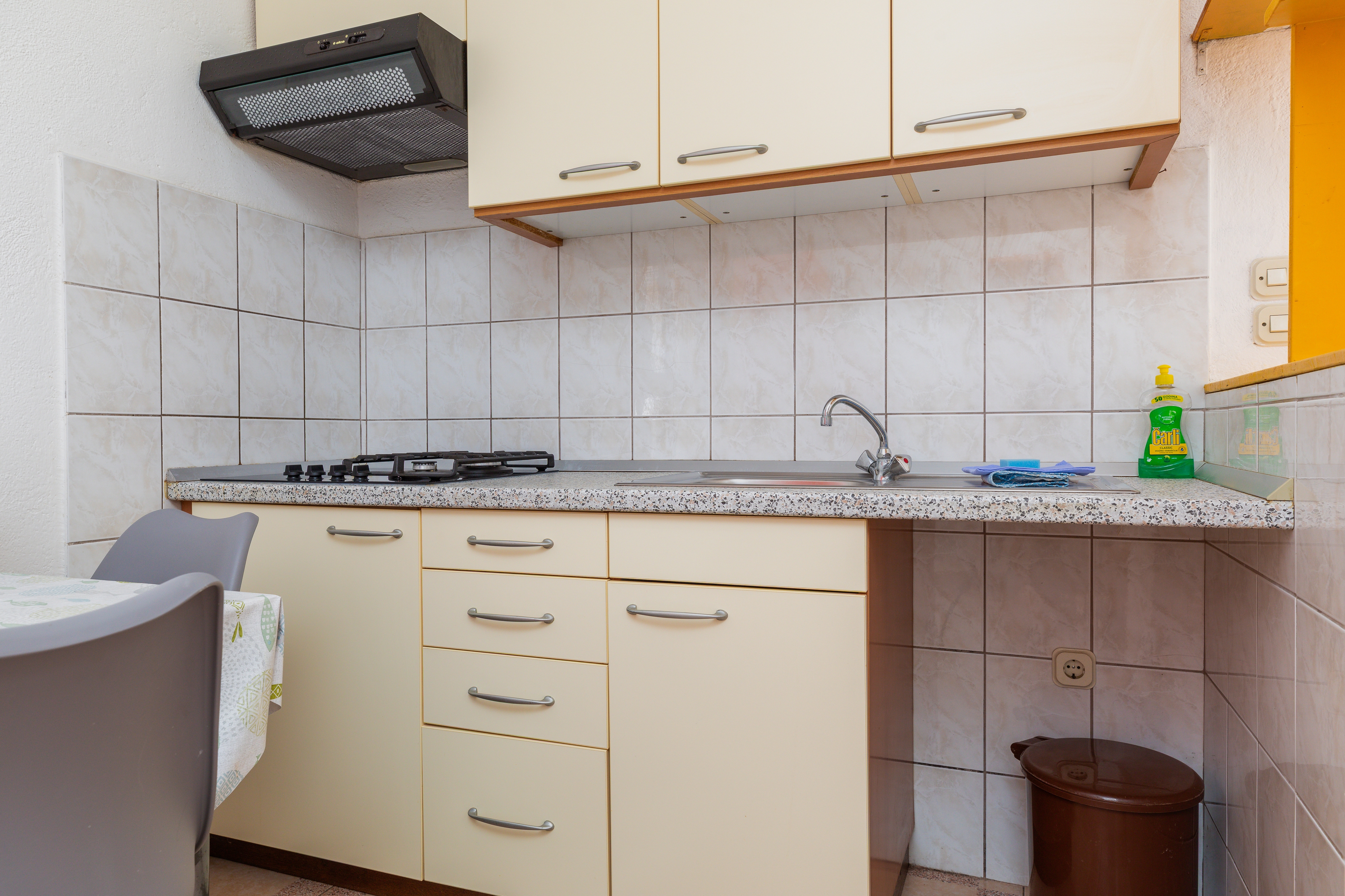Apartment can accommodate 5 guests. Beds are situated in 1 sleeping rooms, but also in the dining room, within 29m2. Guests can use a private balcony to enjoy the warm summer evenings. Food can be prepared using barbecue which is shared with other guests too. This accommodation unit welcomes pets at no additional costs. INCLUDED IN THE PRICE: tourist tax, final cleaning, air-conditioning, parking, internet, pets, baby cot, iron, ironing board. OBLIGATORY ADDITIONAL COSTS: short stay fee (surcharge depending on a number of booked nights: 30% - 1, 20% - 2, 10% - 3). OPTIONAL ADDITIONAL COSTS: laundry (€6.00 washing). The availability of additional services for your chosen dates of stay, as well as their prices (if none are listed) must be checked ahead of time. Any additional services not shown in the price calculation are payable directly to the property owner and only if used by the visitor.