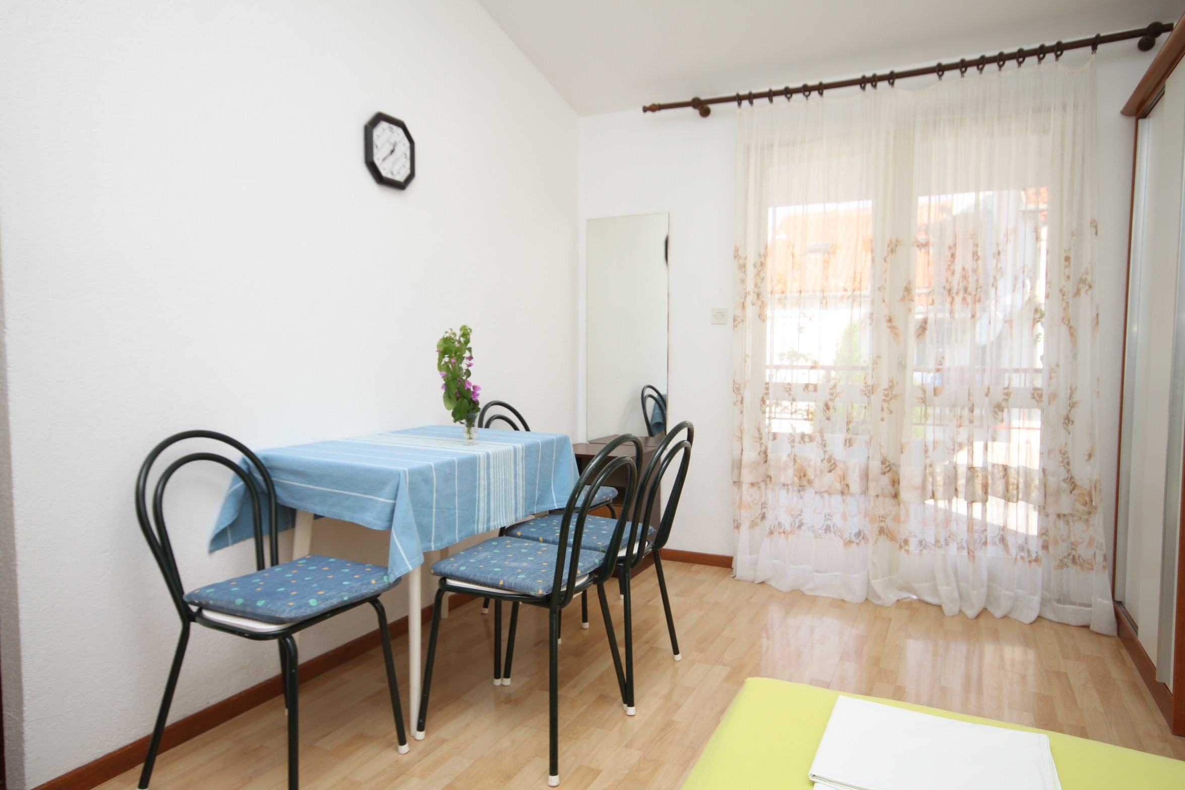 Apartment can accommodate 3 guests. Beds are situated in 1 sleeping rooms, but also in the living room, within 27m2. Guests can use a private terrace to enjoy the warm summer evenings. The apartment offers the sea view. Food can be prepared using barbecue which is shared with other guests too. INCLUDED IN THE PRICE: tourist tax, final cleaning, air-conditioning, parking, internet, baby cot, iron, ironing board, hairdryer. OBLIGATORY ADDITIONAL COSTS: short stay fee (surcharge depending on a number of booked nights: 30% - 1, 20% - 2, 10% - 3). OPTIONAL ADDITIONAL COSTS: laundry (€5.00 washing). The availability of additional services for your chosen dates of stay, as well as their prices (if none are listed) must be checked ahead of time. Any additional services not shown in the price calculation are payable directly to the property owner and only if used by the visitor.