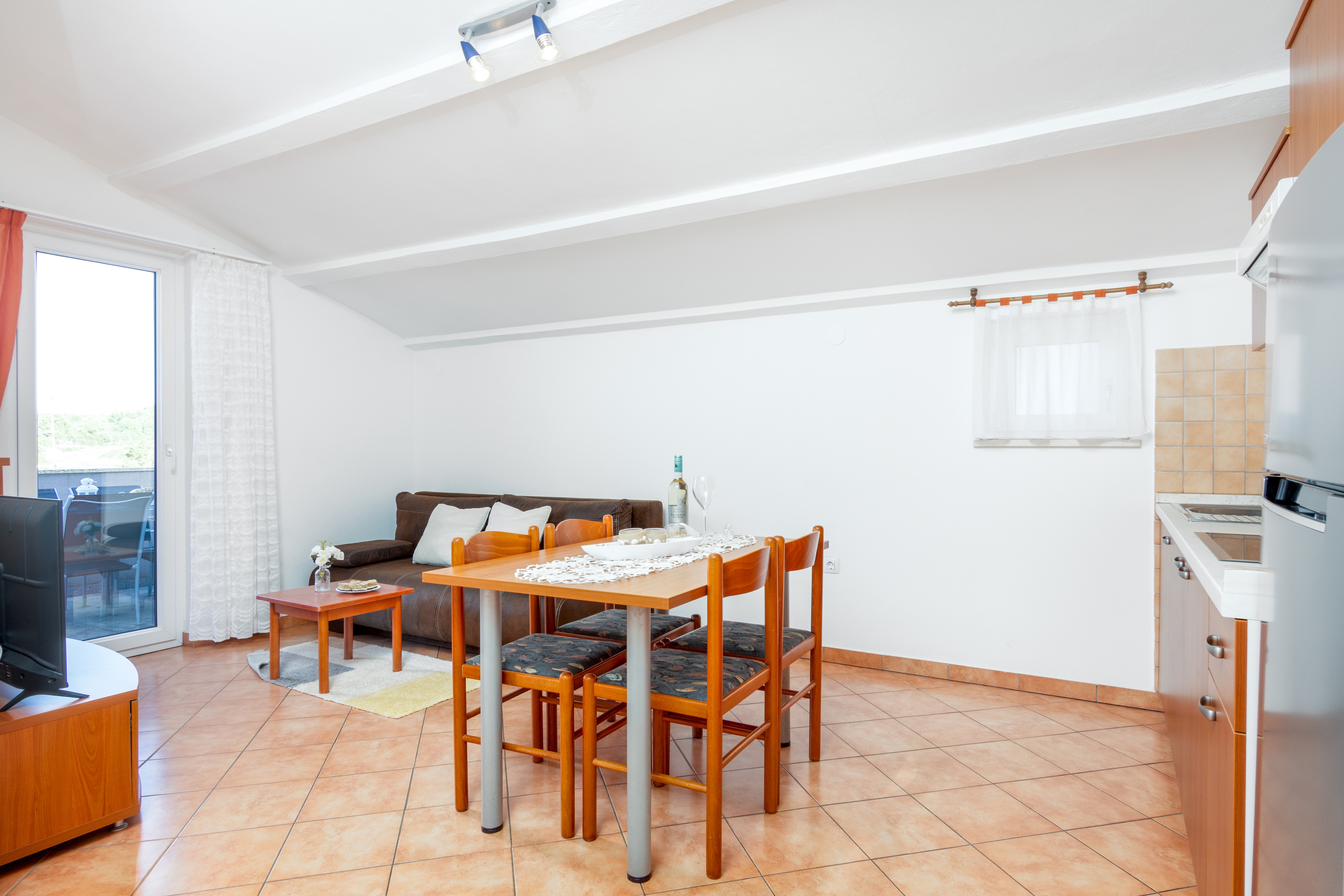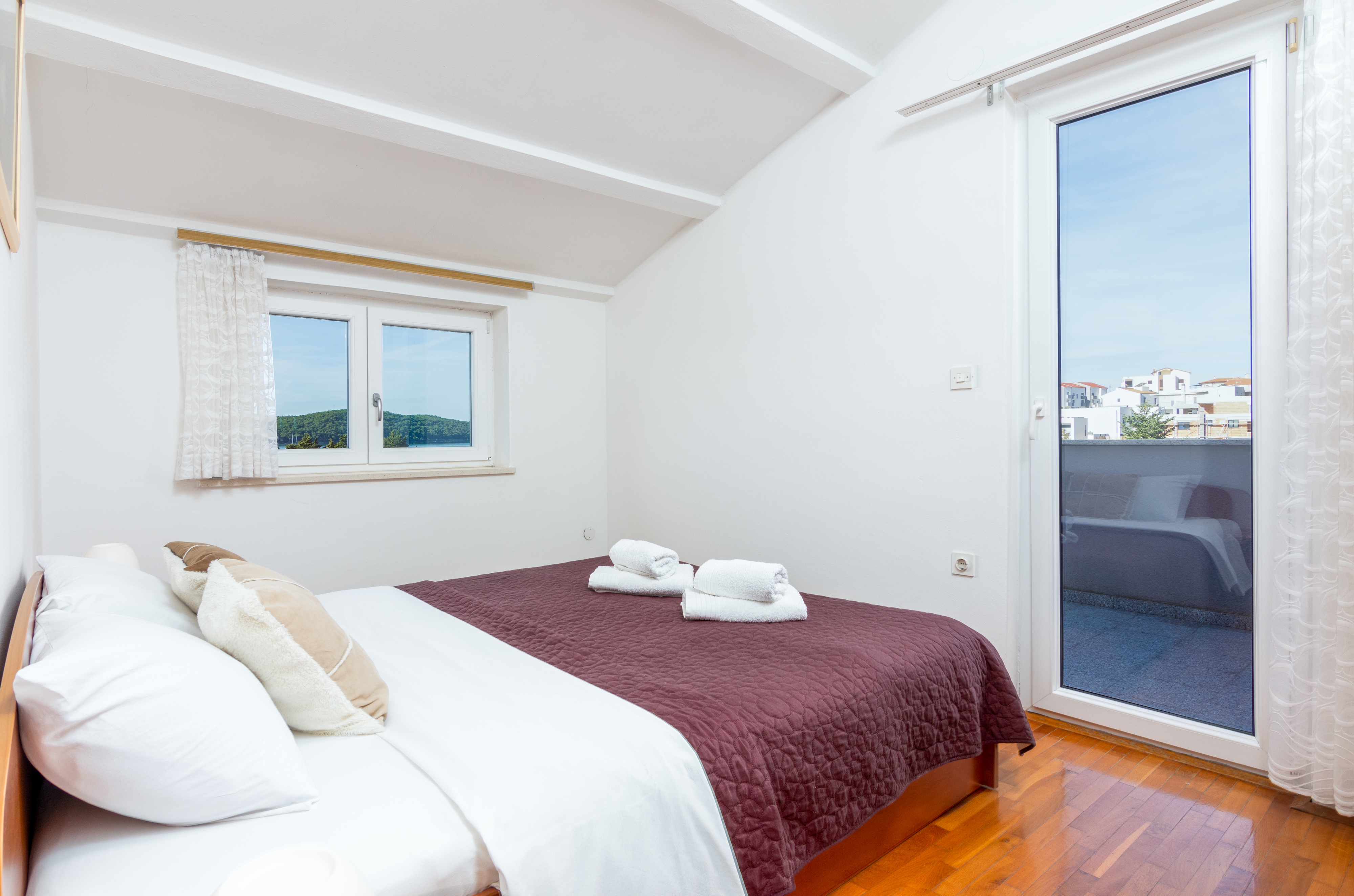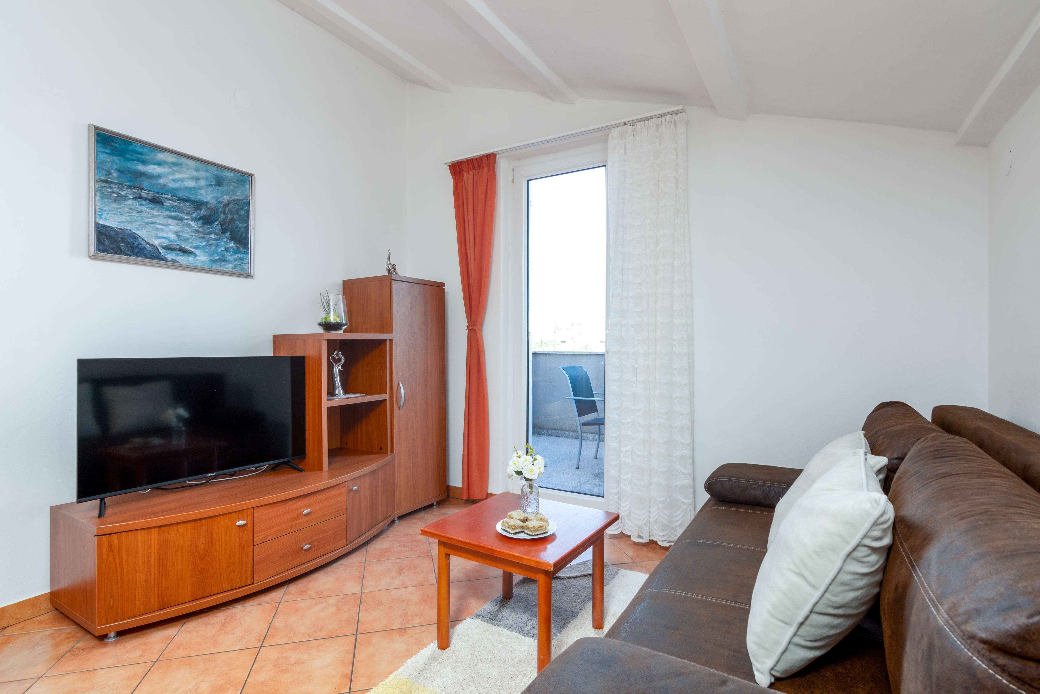Apartment can accommodate 5 guests. Beds are situated in 2 sleeping rooms, but also in the living room, within 45m2. Guests can use a private terrace to enjoy the warm summer evenings. The apartment offers the sea view. Food can be prepared using barbecue which is shared with other guests too. INCLUDED IN THE PRICE: tourist tax, final cleaning, parking, internet, baby cot, iron, hairdryer. OBLIGATORY ADDITIONAL COSTS: short stay fee (surcharge depending on a number of booked nights: 30% - 1, 20% - 2, 10% - 3). OPTIONAL ADDITIONAL COSTS: air-conditioning (€5.00 per night), laundry (€5.00 washing). The availability of additional services for your chosen dates of stay, as well as their prices (if none are listed) must be checked ahead of time. Any additional services not shown in the price calculation are payable directly to the property owner and only if used by the visitor. Discounts to the base price: free day 14=13 (for reservations of 14 or more days you get one free day for the stay until 31122026).