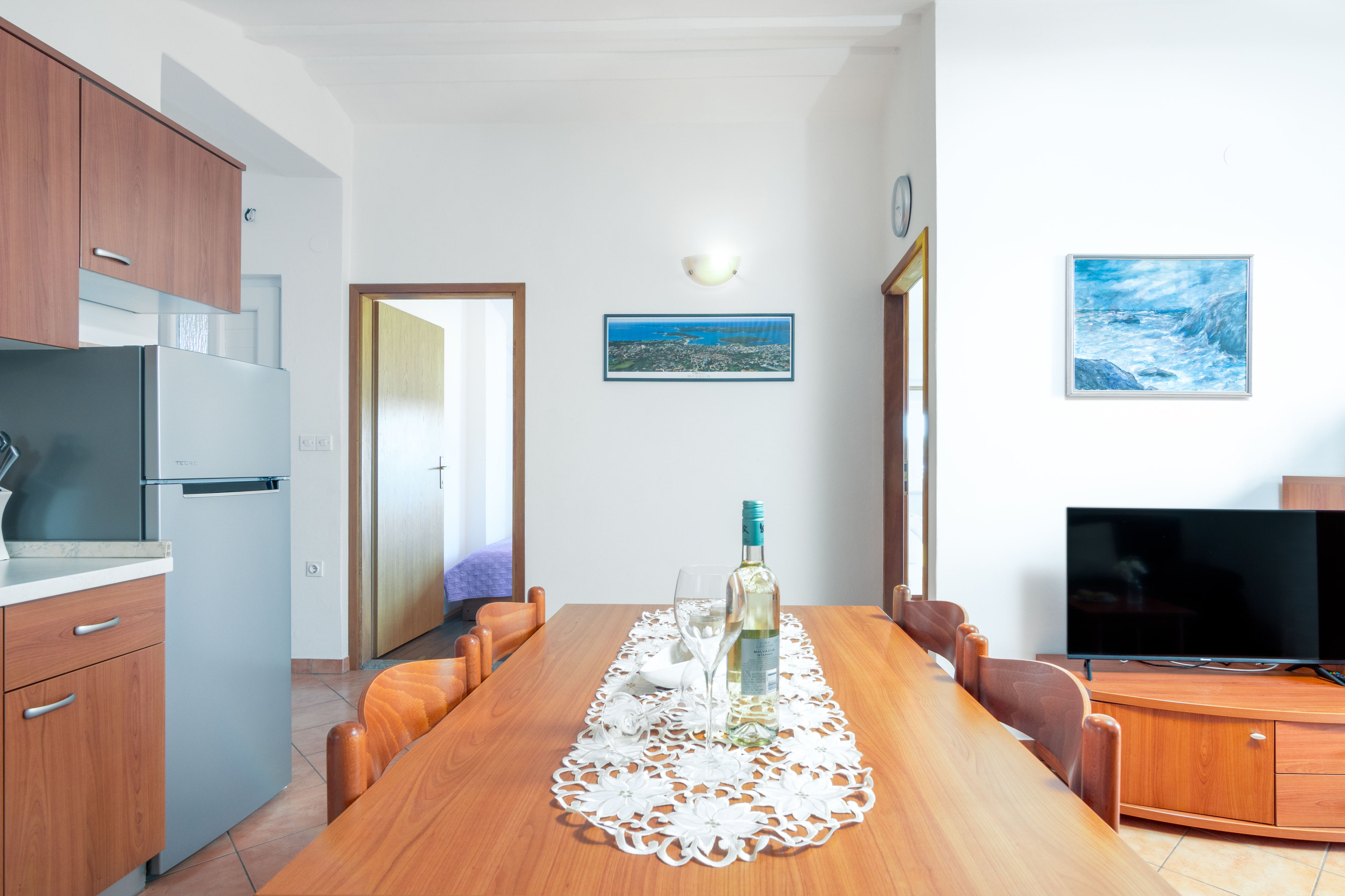 House 2274 in the town of Medulin, Medulin - Istria has accommodation units of type Apartment (4) and is 400 m away from the sea. The nearest beach to this accommodation is a pebble beach. Other guests will most likely be staying in the houses other apartments. The owners will reside in the house during your stay. The house owner is under no obligation to accept additional persons and pets that were not stated in the reservation request and it is necessary to report them in advance.AMENITIES Courtyard (300m2, Sitting area), Parking lot (Number of parking spaces: 5, Distance from the house: In the courtyard), Parking lot (Number of parking spaces: 2, Distance from the house: 10 m), Barbecue: shared, WiFi Internet, Laundry service, Hairdryer, Iron, Baby cot LOCATION AND ACCESS Main road between the property and the beach Car access possible: Yes The facility is situated in relatively quiet surroundings The property isnt surrounded by greenery DISTANCES Sea: 400 m Beach: 400 m Center: 1.2 km Shop: 550 m Pharmacy: 1.1 km Exchange office: 650 m ATMBank machine: 600 m Tourist info: 650 m Airport: 12 km Gas station: 1.2 km