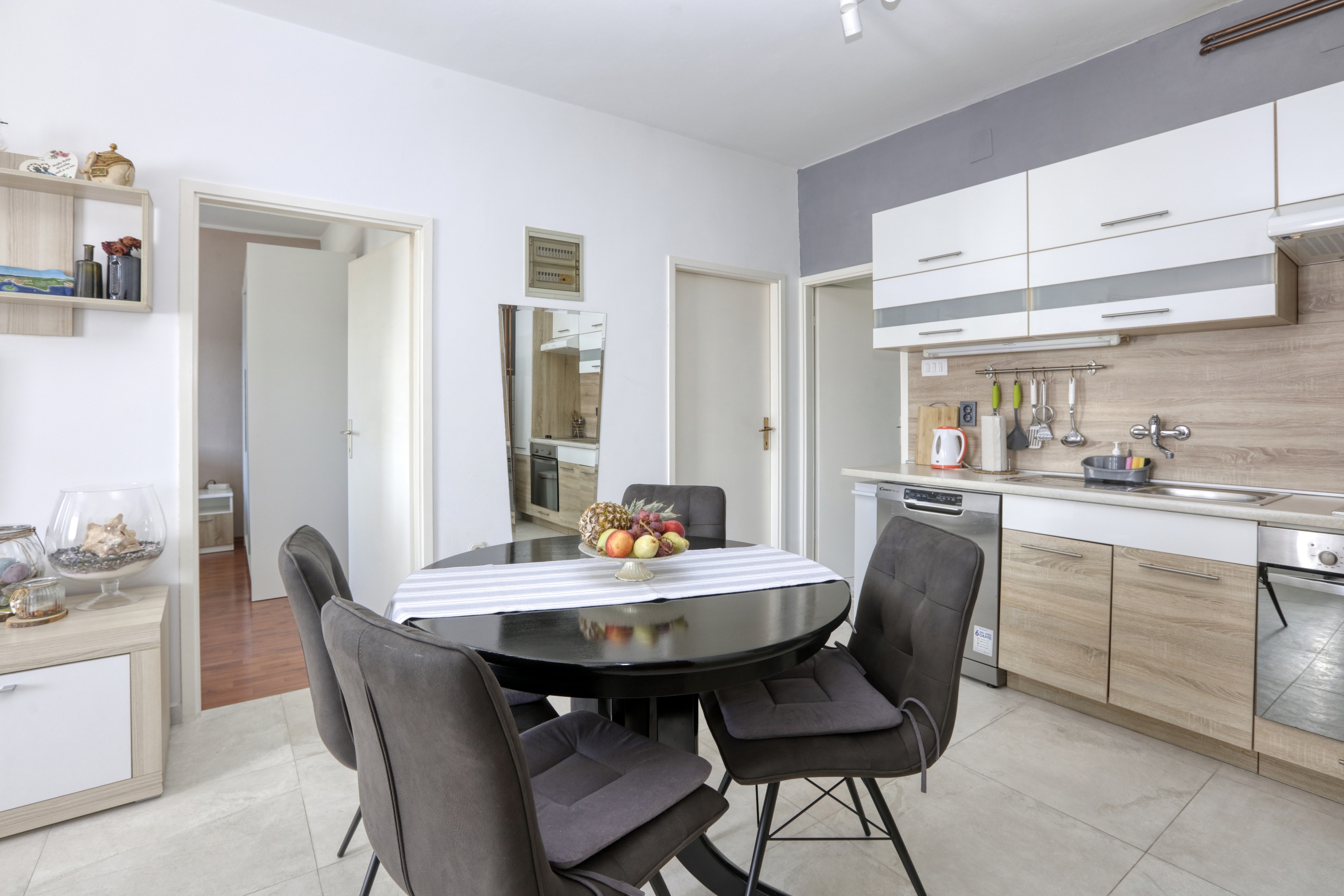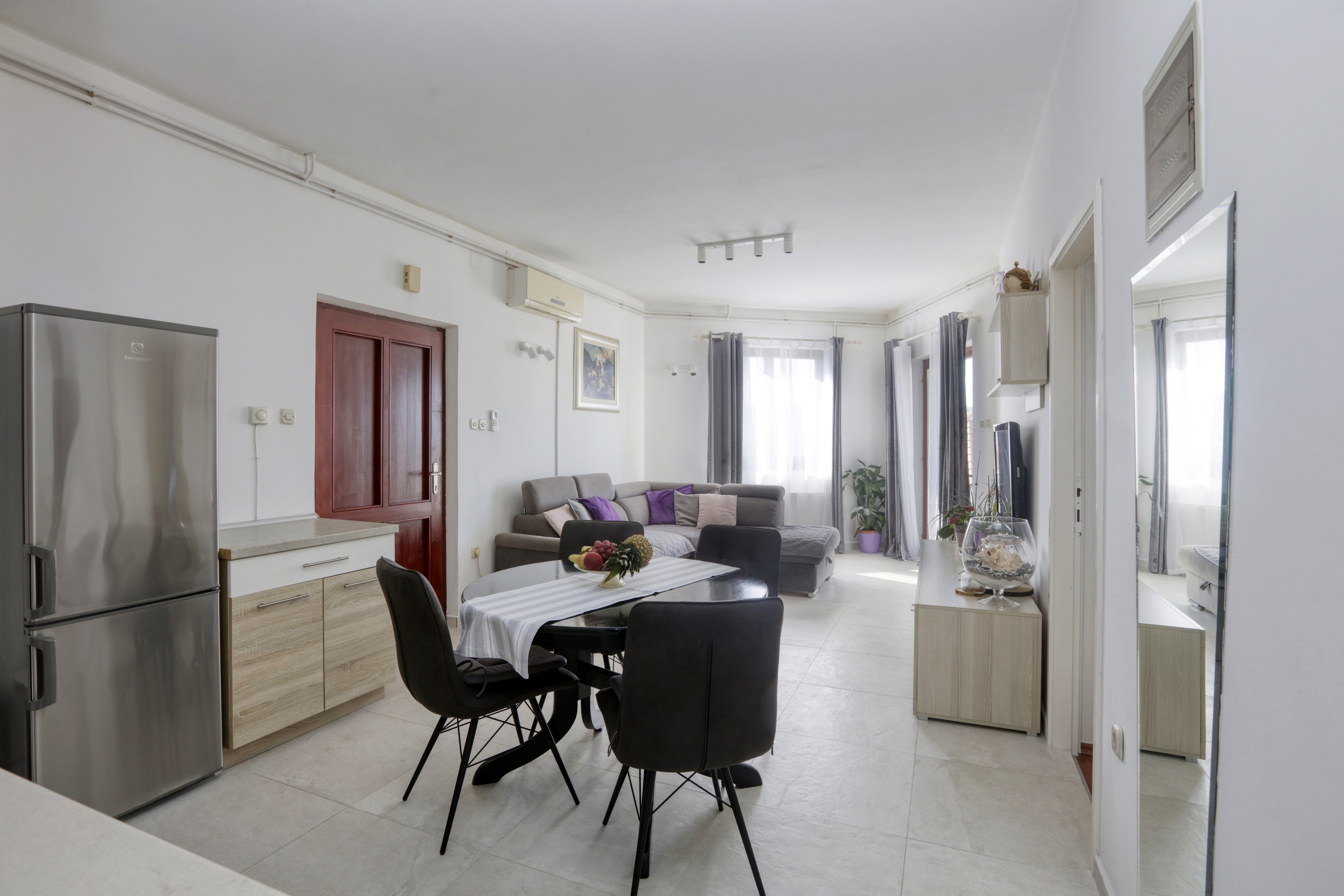 Apartment can accommodate 4 guests. Beds are situated in 2 sleeping rooms, within 50m2. Guests can use a private terrace to enjoy the warm summer evenings. The apartment offers the sea view. Food can be prepared using barbecue which is shared with other guests too. This accommodation unit welcomes pets at an additional charge. INCLUDED IN THE PRICE: tourist tax, final cleaning, air-conditioning, parking, internet, baby cot, iron, ironing board, hairdryer, portable barbecue. OBLIGATORY ADDITIONAL COSTS: short stay fee (surcharge depending on a number of booked nights: 30% - 1, 20% - 2, 10% - 3). OPTIONAL ADDITIONAL COSTS: central heating (€5.00 per night), laundry (€15.00 washing), pets (€10.00 per night). The availability of additional services for your chosen dates of stay, as well as their prices (if none are listed) must be checked ahead of time. Any additional services not shown in the price calculation are payable directly to the property owner and only if used by the visitor. Discounts to the base price: free day 28=25 (for stays of 28 days or more, we give you 3 days free of charge for the stay until 31122026).