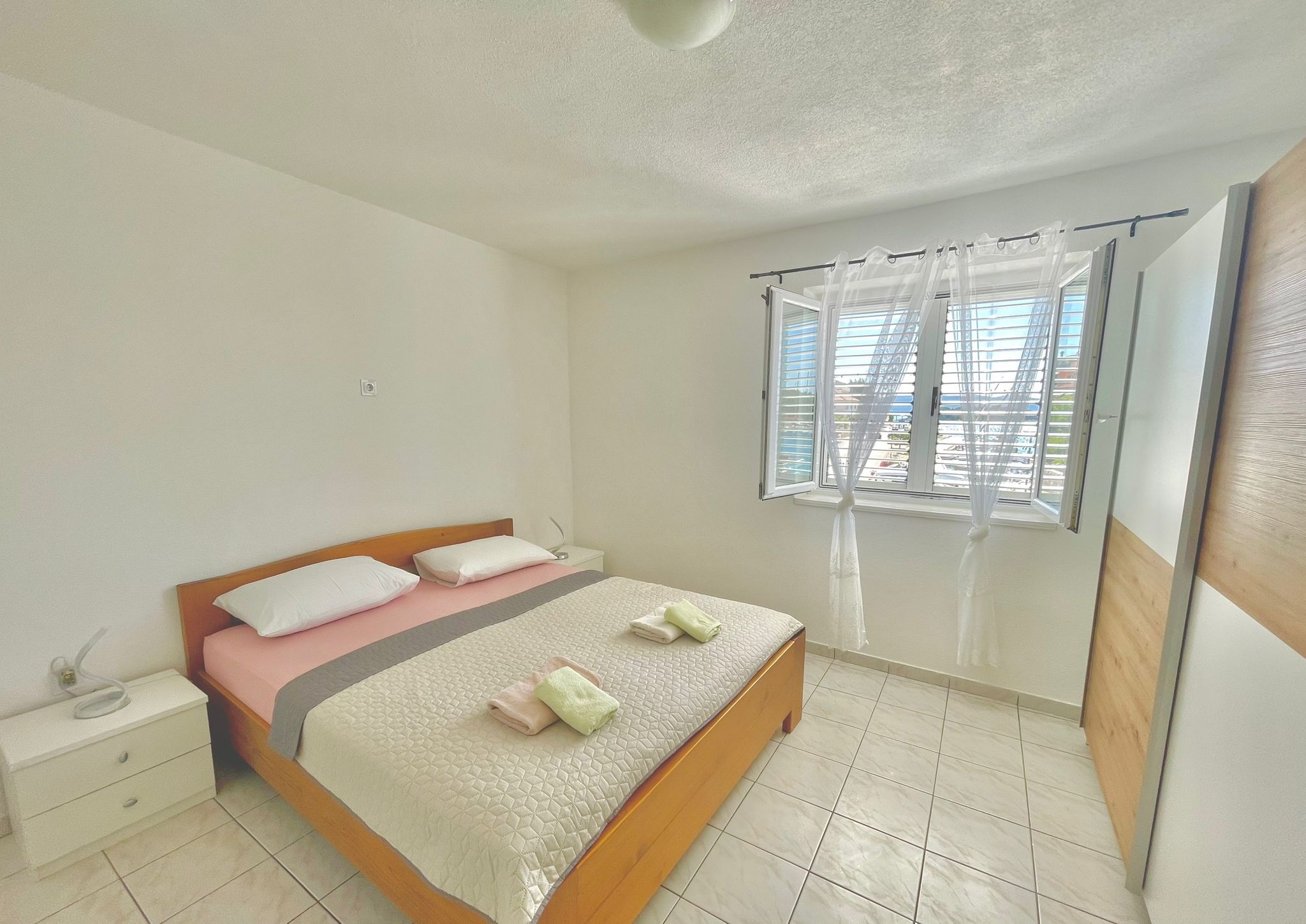 Apartment can accommodate 5 guests. Beds are situated in 2 sleeping rooms, but also in the living room, within 61m2. Guests can use a private terrace to enjoy the warm summer evenings. The apartment offers the sea view. Food can be prepared using barbecue which is shared with other guests too. INCLUDED IN THE PRICE: tourist tax, final cleaning, air-conditioning, parking, internet, portable barbecue. OBLIGATORY ADDITIONAL COSTS: short stay fee (surcharge depending on a number of booked nights: 30% - 1, 20% - 2, 10% - 3). The availability of additional services for your chosen dates of stay, as well as their prices (if none are listed) must be checked ahead of time. Any additional services not shown in the price calculation are payable directly to the property owner and only if used by the visitor.