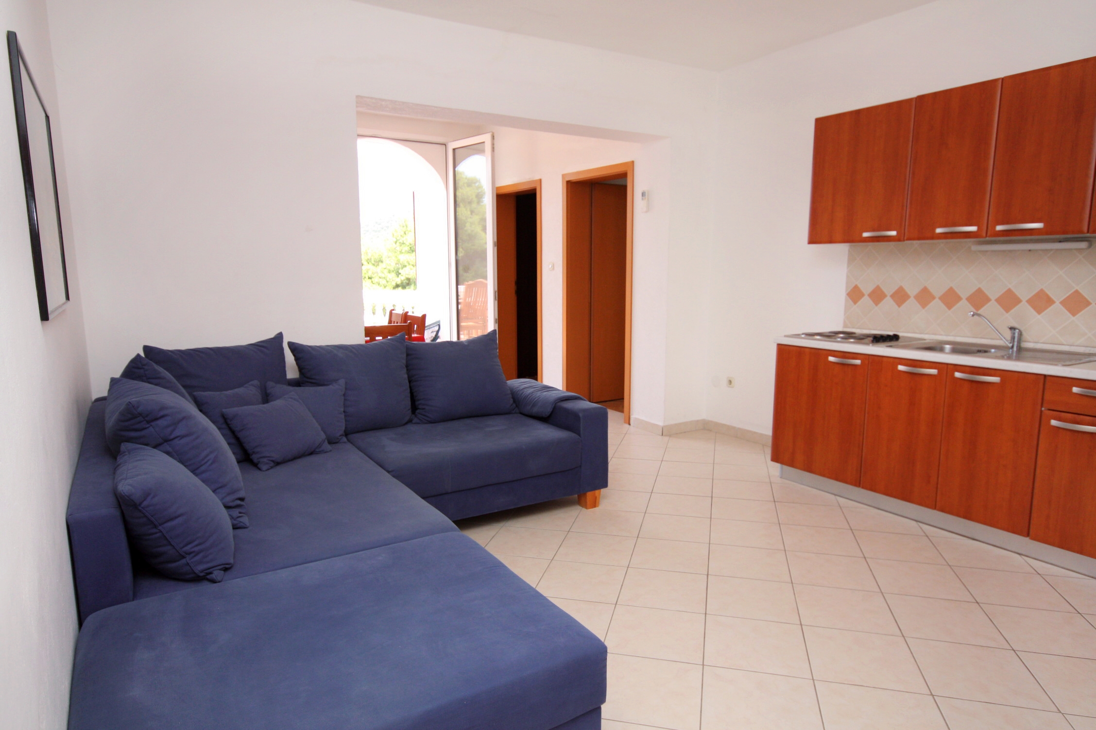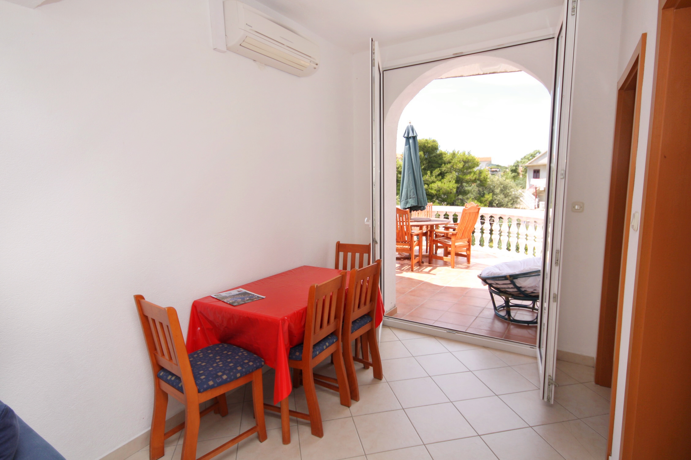 Apartment can accommodate 5 guests. Beds are situated in 2 sleeping rooms, but also in the living room, within 45m2. Guests can use a private terrace to enjoy the warm summer evenings. Food can be prepared using barbecue which is shared with other guests too. INCLUDED IN THE PRICE: tourist tax, final cleaning, air-conditioning, parking, internet, hairdryer. OBLIGATORY ADDITIONAL COSTS: short stay fee (surcharge depending on a number of booked nights: 30% - 1, 20% - 2, 10% - 3). OPTIONAL ADDITIONAL COSTS: laundry (€5.00 washing). The availability of additional services for your chosen dates of stay, as well as their prices (if none are listed) must be checked ahead of time. Any additional services not shown in the price calculation are payable directly to the property owner and only if used by the visitor.