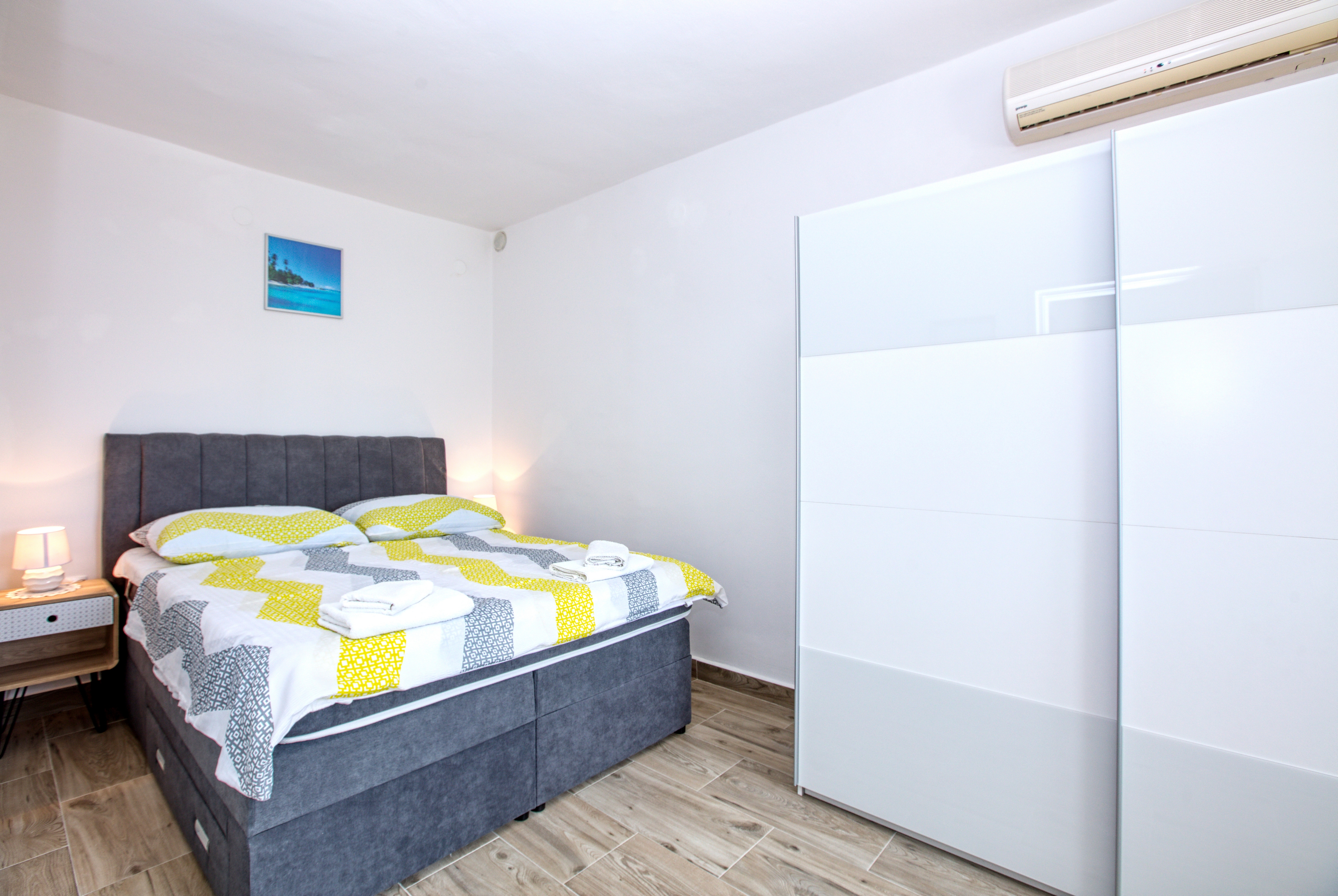 Apartment can accommodate 3 guests. Beds are situated in 1 sleeping rooms, within 28m2. Guests can use a private terrace to enjoy the warm summer evenings. The apartment offers the sea view. Food can be prepared using barbecue which is shared with other guests too. This accommodation unit welcomes pets at an additional charge. INCLUDED IN THE PRICE: tourist tax, final cleaning, air-conditioning, parking, internet, baby cot, iron, ironing board, hairdryer. OPTIONAL ADDITIONAL COSTS: boat mooring (€5.00 per night), pets (€5.00 per night), 1 bed for children (€10.00 personnight). The availability of additional services for your chosen dates of stay, as well as their prices (if none are listed) must be checked ahead of time. Any additional services not shown in the price calculation are payable directly to the property owner and only if used by the visitor.