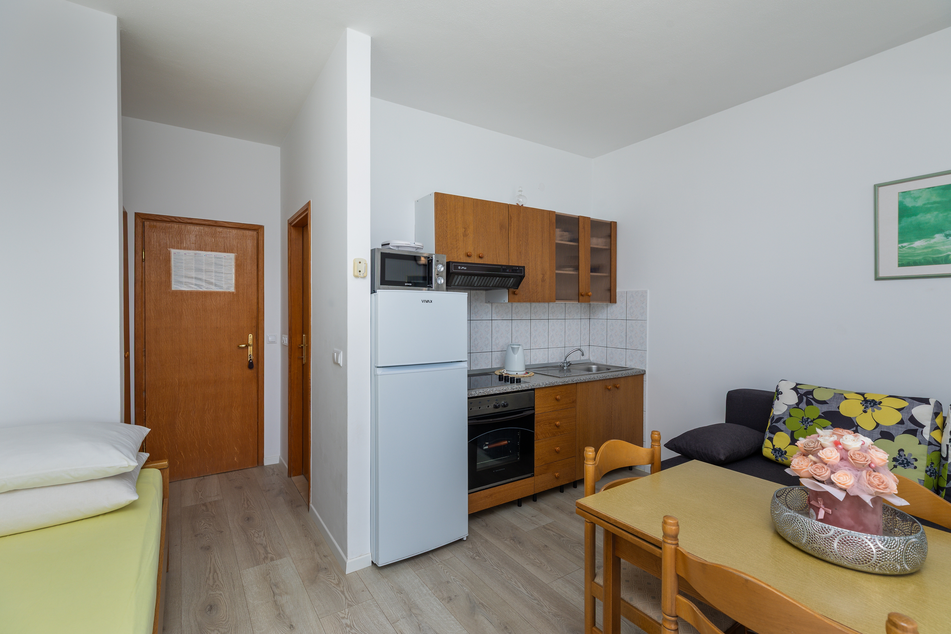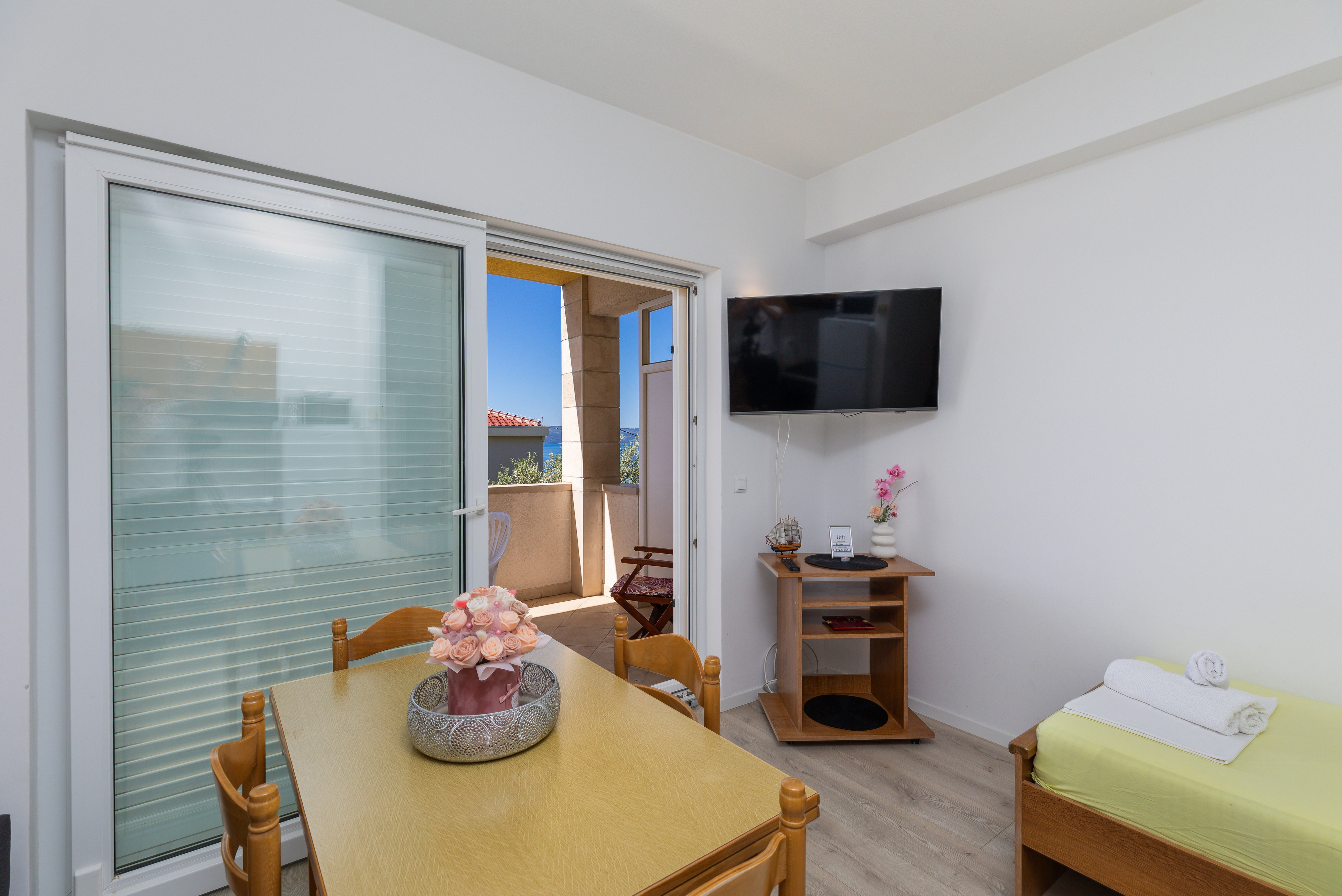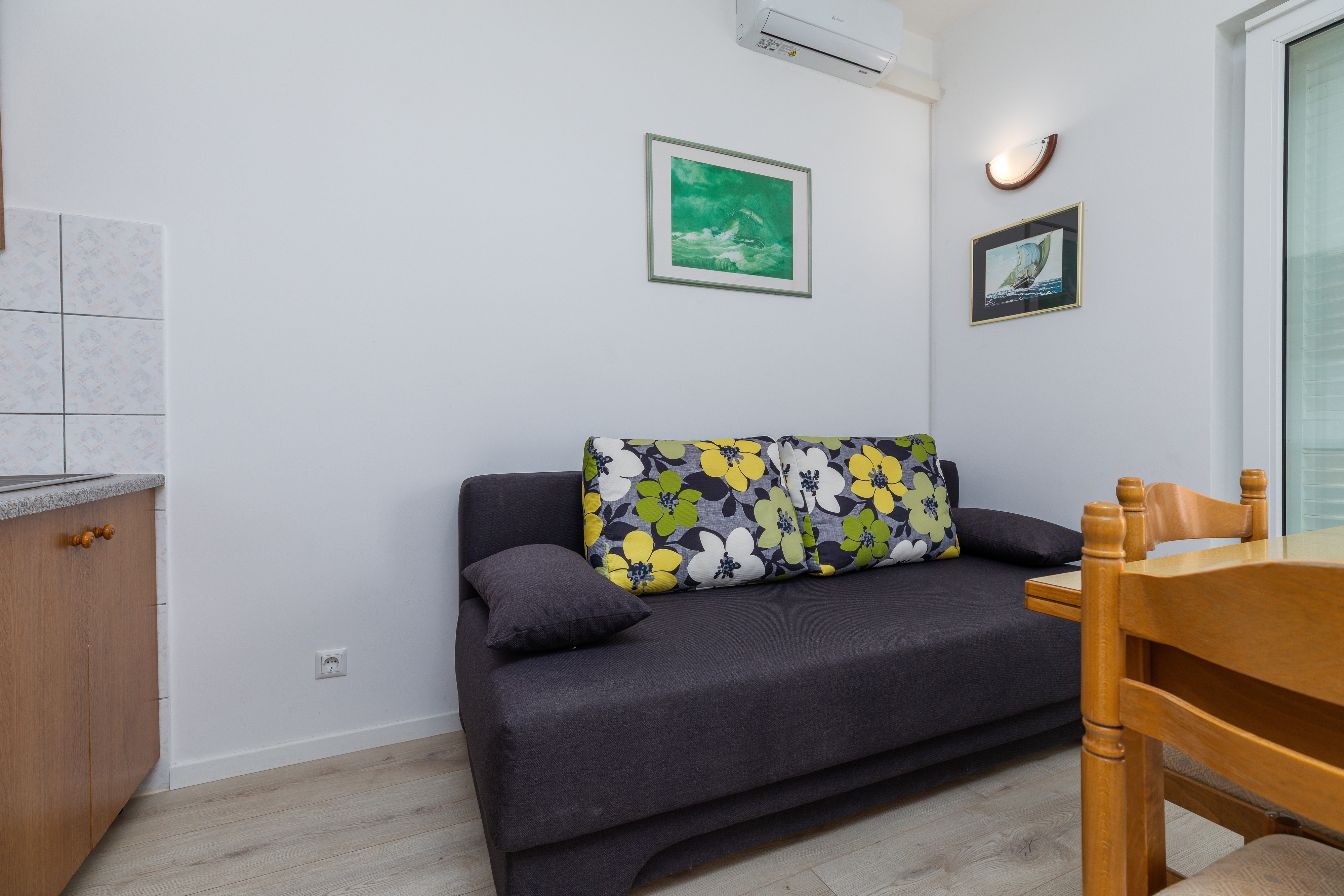 Apartment can accommodate 4 guests. Beds are situated in 1 sleeping rooms, but also in the dining room, within 36m2. Guests can use a private terrace to enjoy the warm summer evenings. The apartment offers the sea view. Food can be prepared using barbecue which is shared with other guests too. Notthe rooms of the booked accommodation unit are connectedone whole. Some of the rooms of the accommodation unit are not connected with the rest of the unit. INCLUDED IN THE PRICE: tourist tax, final cleaning, air-conditioning, parking, internet. OPTIONAL ADDITIONAL COSTS: laundry (€5.00 washing). The availability of additional services for your chosen dates of stay, as well as their prices (if none are listed) must be checked ahead of time. Any additional services not shown in the price calculation are payable directly to the property owner and only if used by the visitor. Discounts to the base price: free day 14=13 (for reservations of 14 or more days you get one free day for the stay until 31122026).