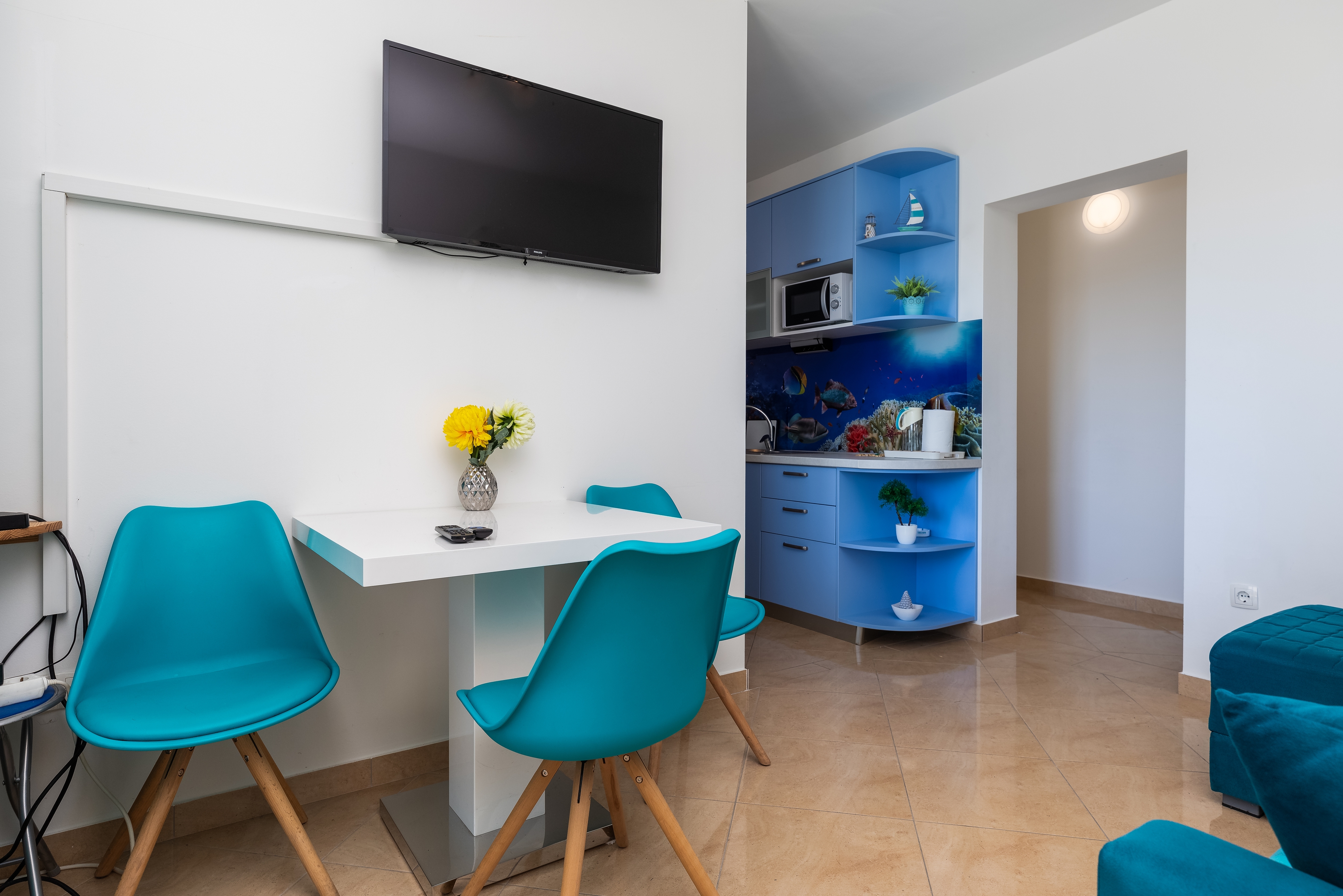 Apartment can accommodate 4 guests. Beds are situated in 1 sleeping rooms, but also in the living room, within 32m2. Guests can use a private terrace to enjoy the warm summer evenings. Food can be prepared using barbecue which is shared with other guests too. INCLUDED IN THE PRICE: tourist tax, final cleaning, air-conditioning, parking, internet, laundry, iron, ironing board. The availability of additional services for your chosen dates of stay, as well as their prices (if none are listed) must be checked ahead of time. Any additional services not shown in the price calculation are payable directly to the property owner and only if used by the visitor.