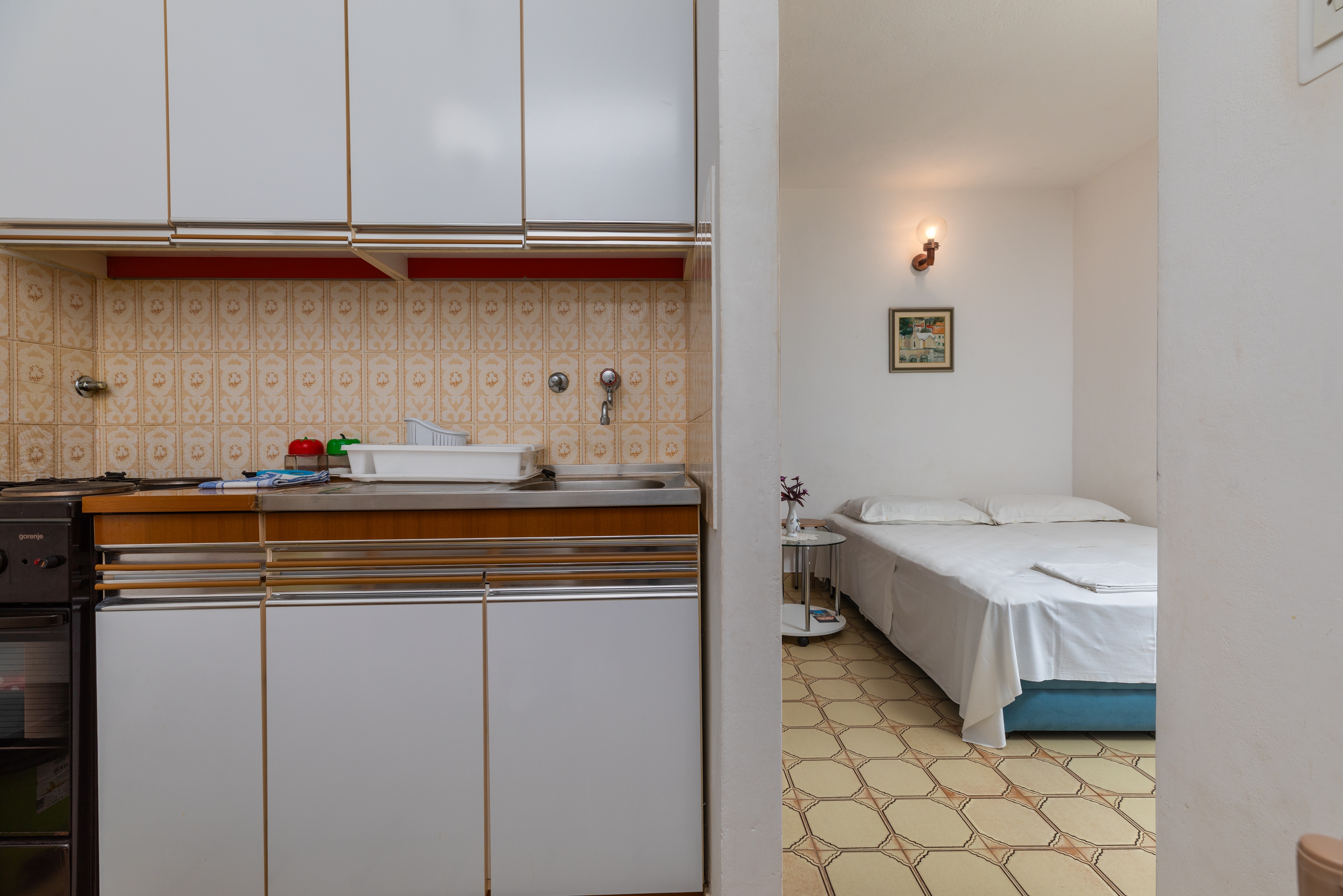Apartment can accommodate 4 guests. Beds are situated in 1 sleeping rooms, but also in the living room, within 32m2. Guests can use a private balcony to enjoy the warm summer evenings. The apartment offers the sea view. Food can be prepared using barbecue which is shared with other guests too. INCLUDED IN THE PRICE: tourist tax, final cleaning, air-conditioning, parking, internet, iron, ironing board, hairdryer. The availability of additional services for your chosen dates of stay, as well as their prices (if none are listed) must be checked ahead of time. Any additional services not shown in the price calculation are payable directly to the property owner and only if used by the visitor.