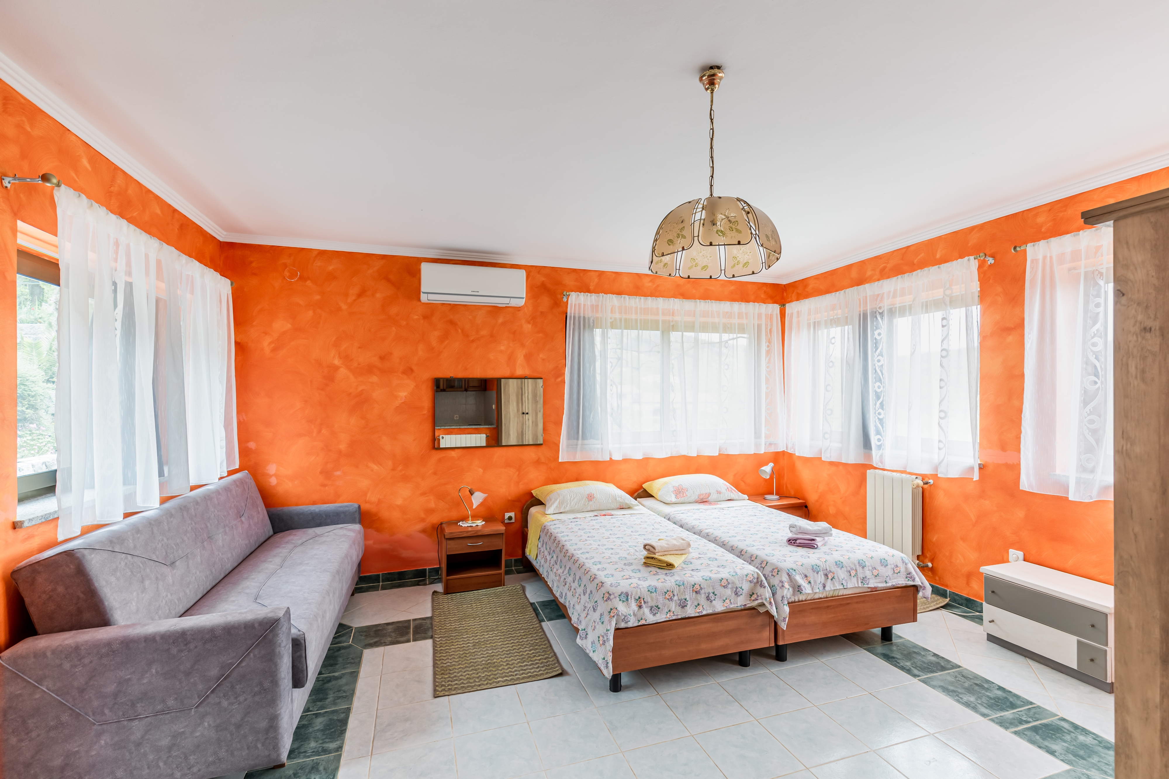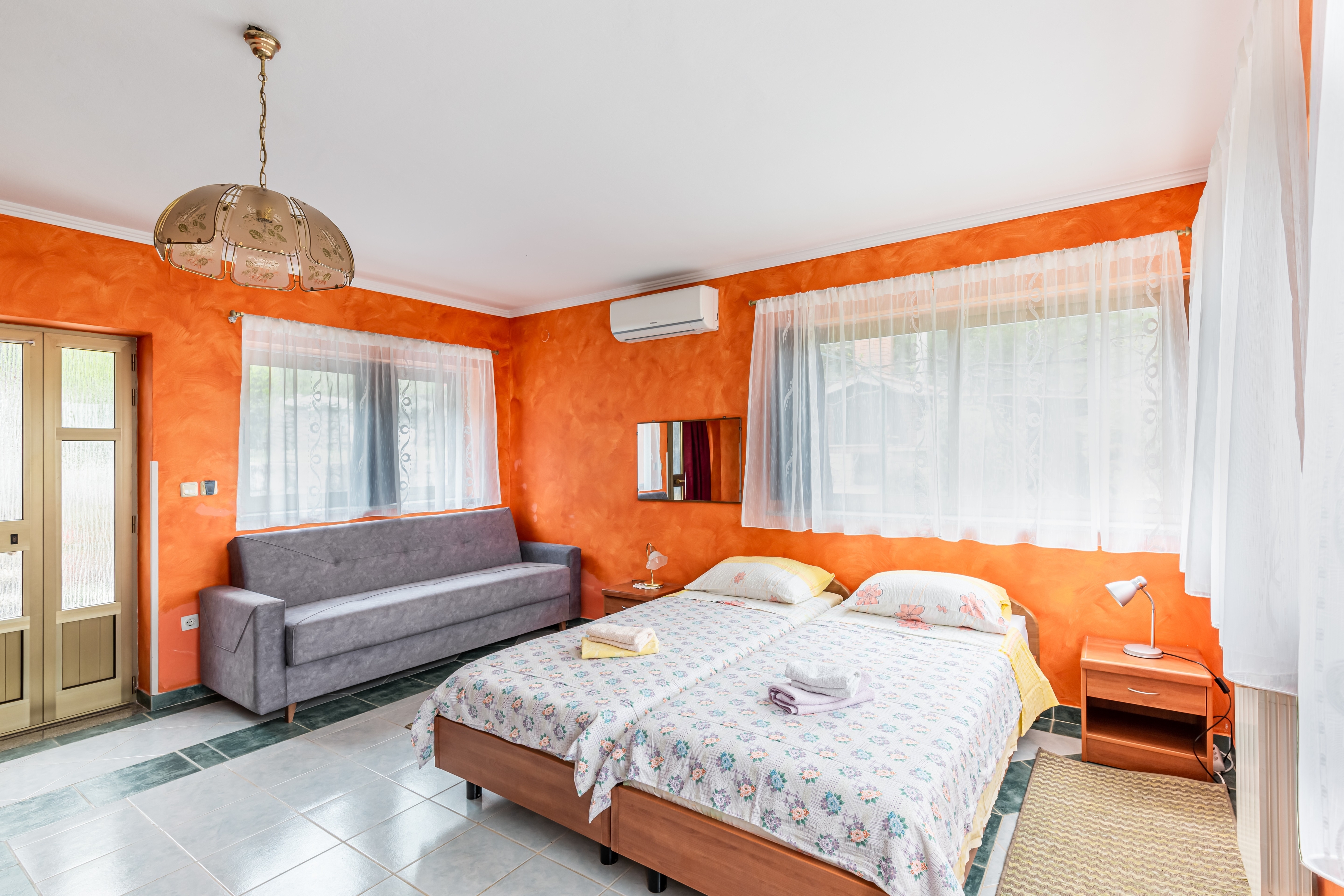 Studio flat can accommodate 3 guests. Beds are situated in 1 sleeping rooms, within 28m2. Guests can use a private terrace to enjoy the warm summer evenings. Food can be prepared using barbecue which is shared with other guests too. This accommodation unit welcomes pets at an additional charge. Other guests or hosts pass through the terrace of the booked accommodation unit. INCLUDED IN THE PRICE: tourist tax, final cleaning, air-conditioning, parking, internet, laundry, bicycle, baby cot, iron, ironing board, hairdryer. OBLIGATORY ADDITIONAL COSTS: short stay fee (surcharge depending on a number of booked nights: 30% - 1, 20% - 2, 10% - 3). OPTIONAL ADDITIONAL COSTS: central heating (€5.00 per night), pets (€5.00 per night). The availability of additional services for your chosen dates of stay, as well as their prices (if none are listed) must be checked ahead of time. Any additional services not shown in the price calculation are payable directly to the property owner and only if used by the visitor.
