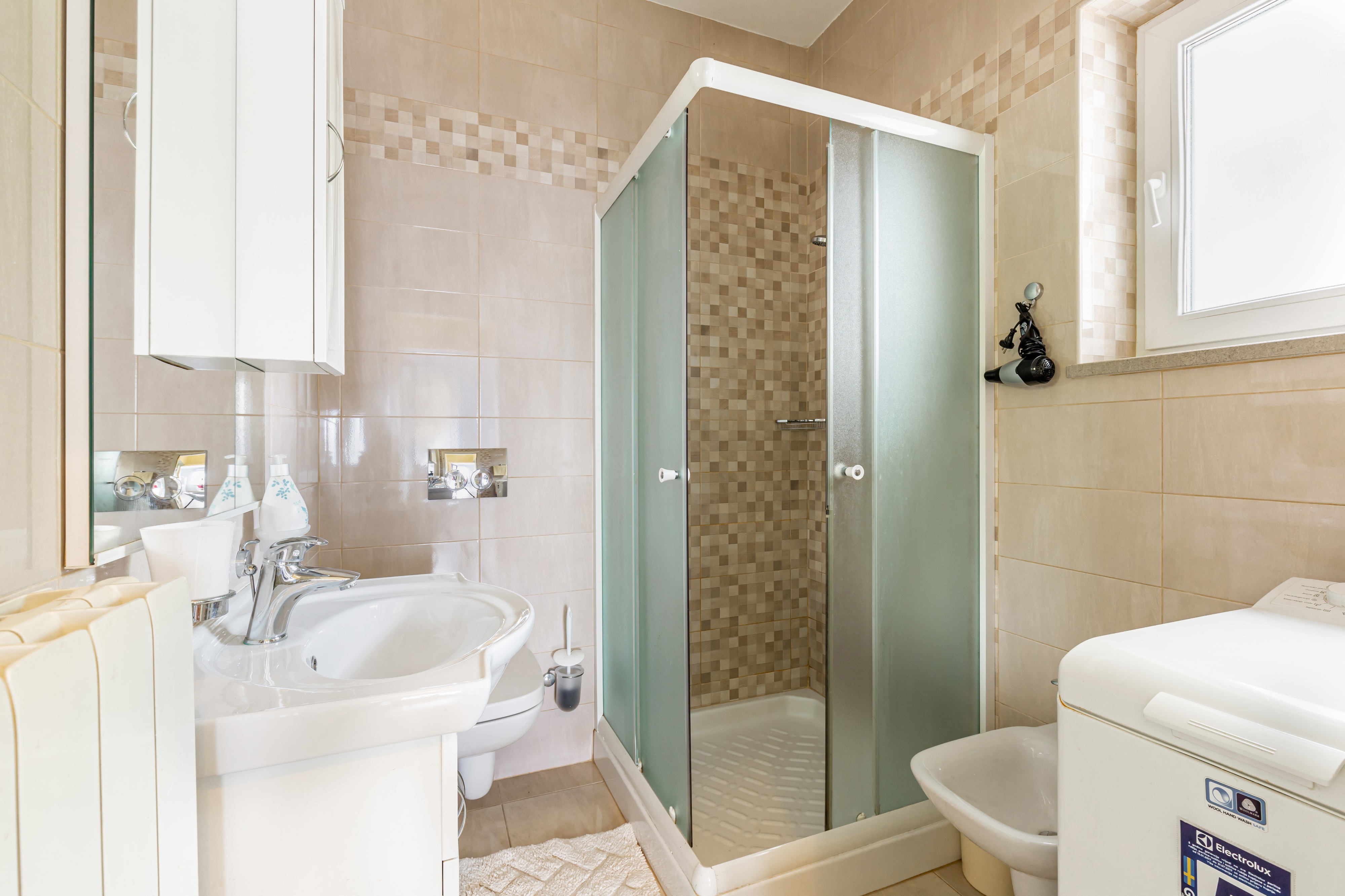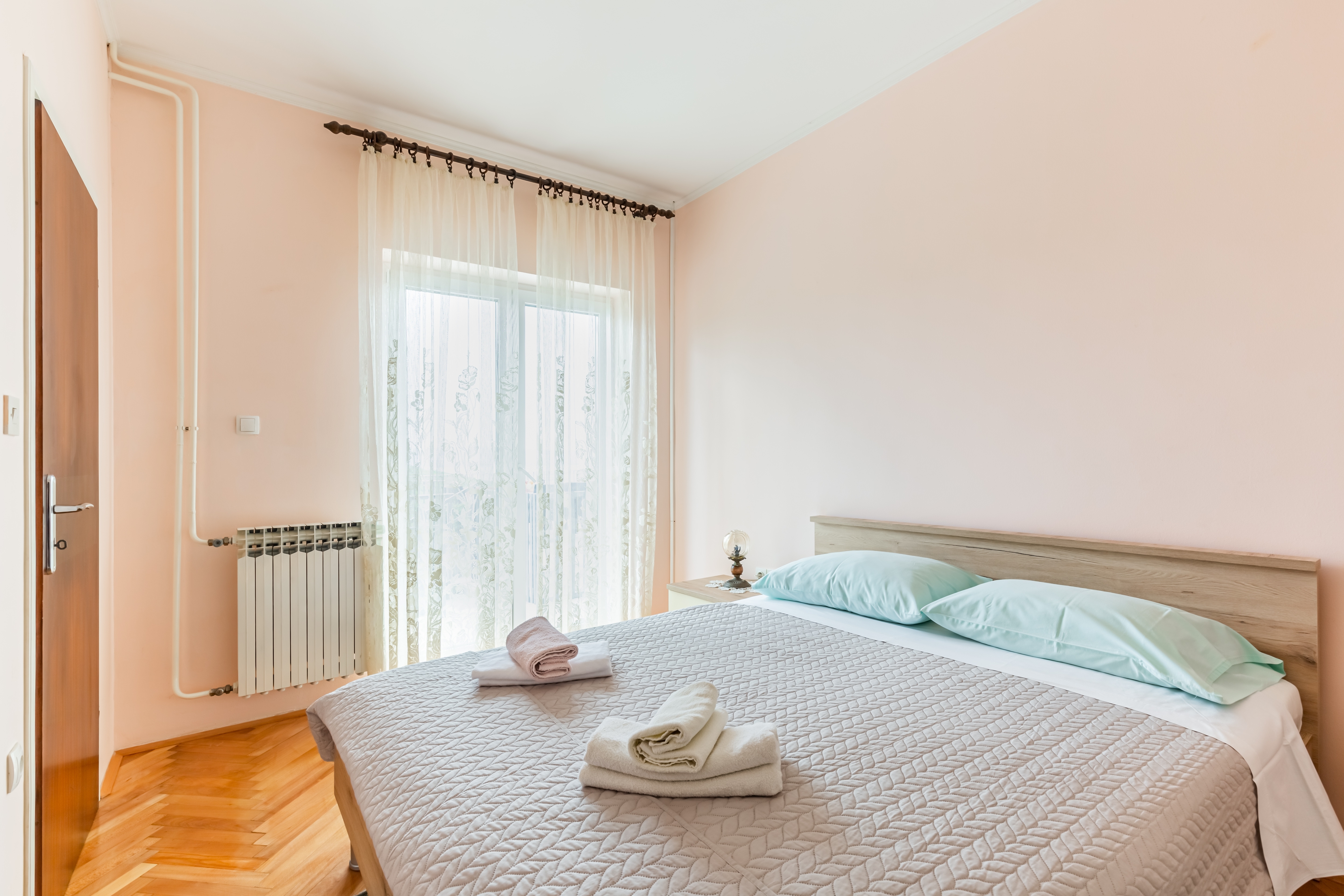 Apartment can accommodate 5 guests. Beds are situated in 2 sleeping rooms, but also in the dining room, within 46m2. Guests can use a private terrace to enjoy the warm summer evenings. The apartment offers the sea view. Food can be prepared using barbecue which is shared with other guests too. This accommodation unit welcomes pets at an additional charge. Other guests or hosts pass through the terrace of the booked accommodation unit. INCLUDED IN THE PRICE: tourist tax, final cleaning, air-conditioning, parking, internet, laundry, bicycle, baby cot, iron, ironing board, hairdryer. OBLIGATORY ADDITIONAL COSTS: short stay fee (surcharge depending on a number of booked nights: 30% - 1, 20% - 2, 10% - 3). OPTIONAL ADDITIONAL COSTS: central heating (€5.00 per night), pets (€5.00 per night). The availability of additional services for your chosen dates of stay, as well as their prices (if none are listed) must be checked ahead of time. Any additional services not shown in the price calculation are payable directly to the property owner and only if used by the visitor.