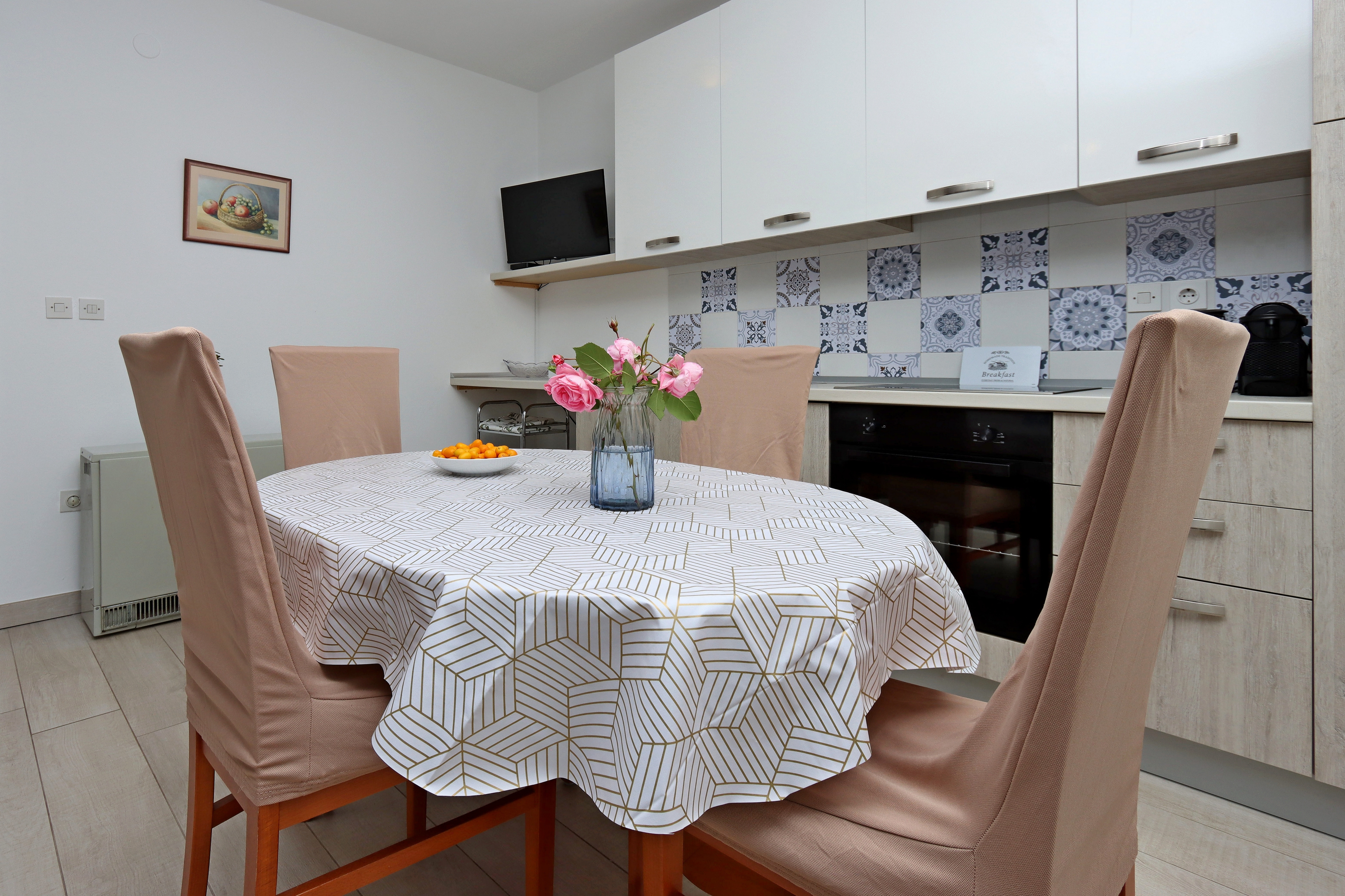 Apartment can accommodate 4 guests. Beds are situated in 1 sleeping rooms, but also in the living room, within 48m2. Guests can use a private terrace to enjoy the warm summer evenings. The apartment offers the sea view. INCLUDED IN THE PRICE: tourist tax, final cleaning, air-conditioning, parking, internet, iron, ironing board, hairdryer. OBLIGATORY ADDITIONAL COSTS: short stay fee (surcharge depending on a number of booked nights: 30% - 1, 20% - 2, 10% - 3). The availability of additional services for your chosen dates of stay, as well as their prices (if none are listed) must be checked ahead of time. Any additional services not shown in the price calculation are payable directly to the property owner and only if used by the visitor. Discounts to the base price: free day 14=13 (for reservations of 14 or more days you get one free day for the stay until 31122026).