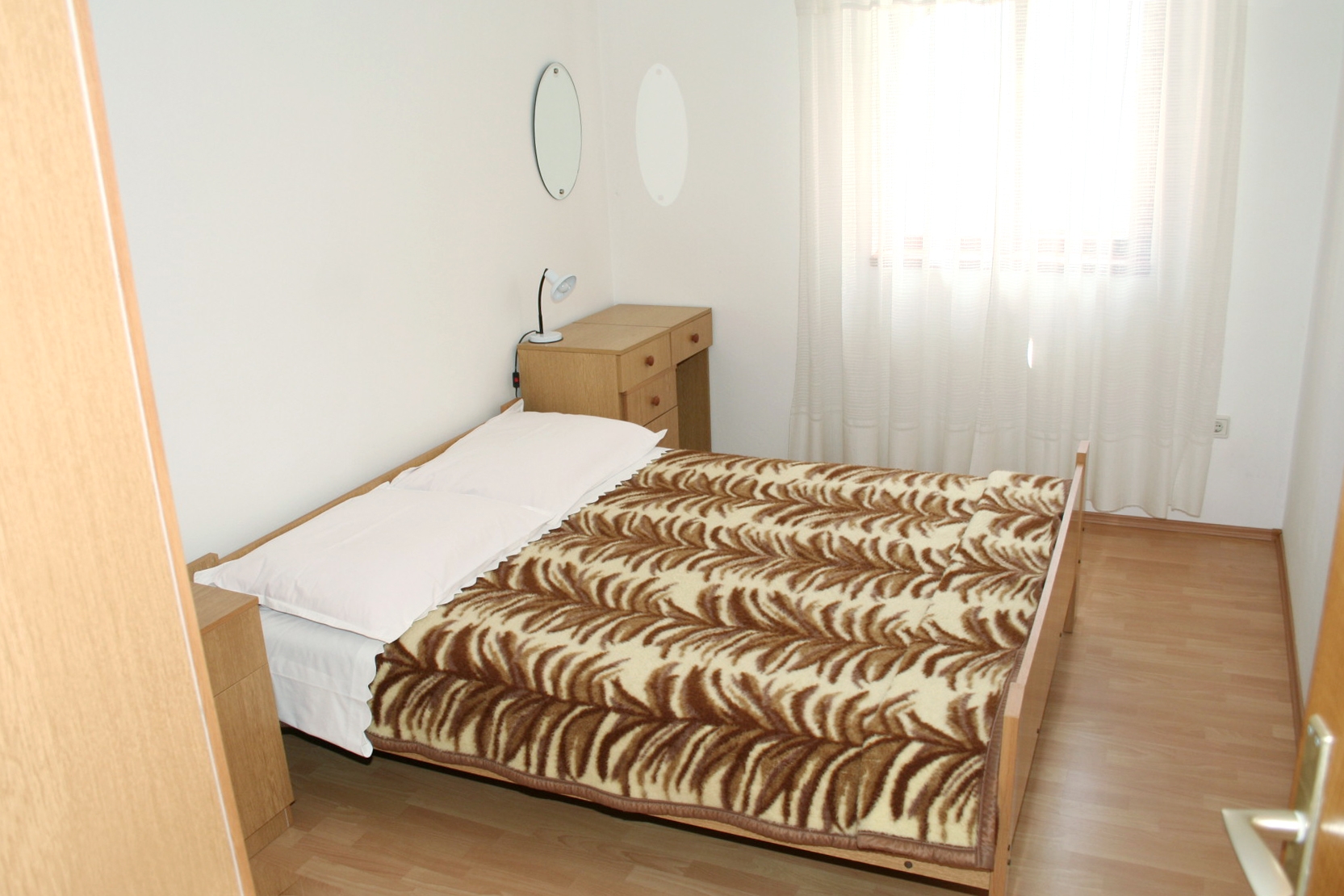 Apartment can accommodate 4 guests. Beds are situated in 1 sleeping rooms, but also in the living room, within 45m2. Guests can use a private terrace to enjoy the warm summer evenings. The apartment offers the sea view. Food can be prepared using barbecue which is shared with other guests too. INCLUDED IN THE PRICE: tourist tax, final cleaning, air-conditioning, parking, internet. OBLIGATORY ADDITIONAL COSTS: short stay fee (surcharge depending on a number of booked nights: 30% - 1, 20% - 2, 10% - 3). OPTIONAL ADDITIONAL COSTS: additional bed (€12.00 per night). The availability of additional services for your chosen dates of stay, as well as their prices (if none are listed) must be checked ahead of time. Any additional services not shown in the price calculation are payable directly to the property owner and only if used by the visitor.