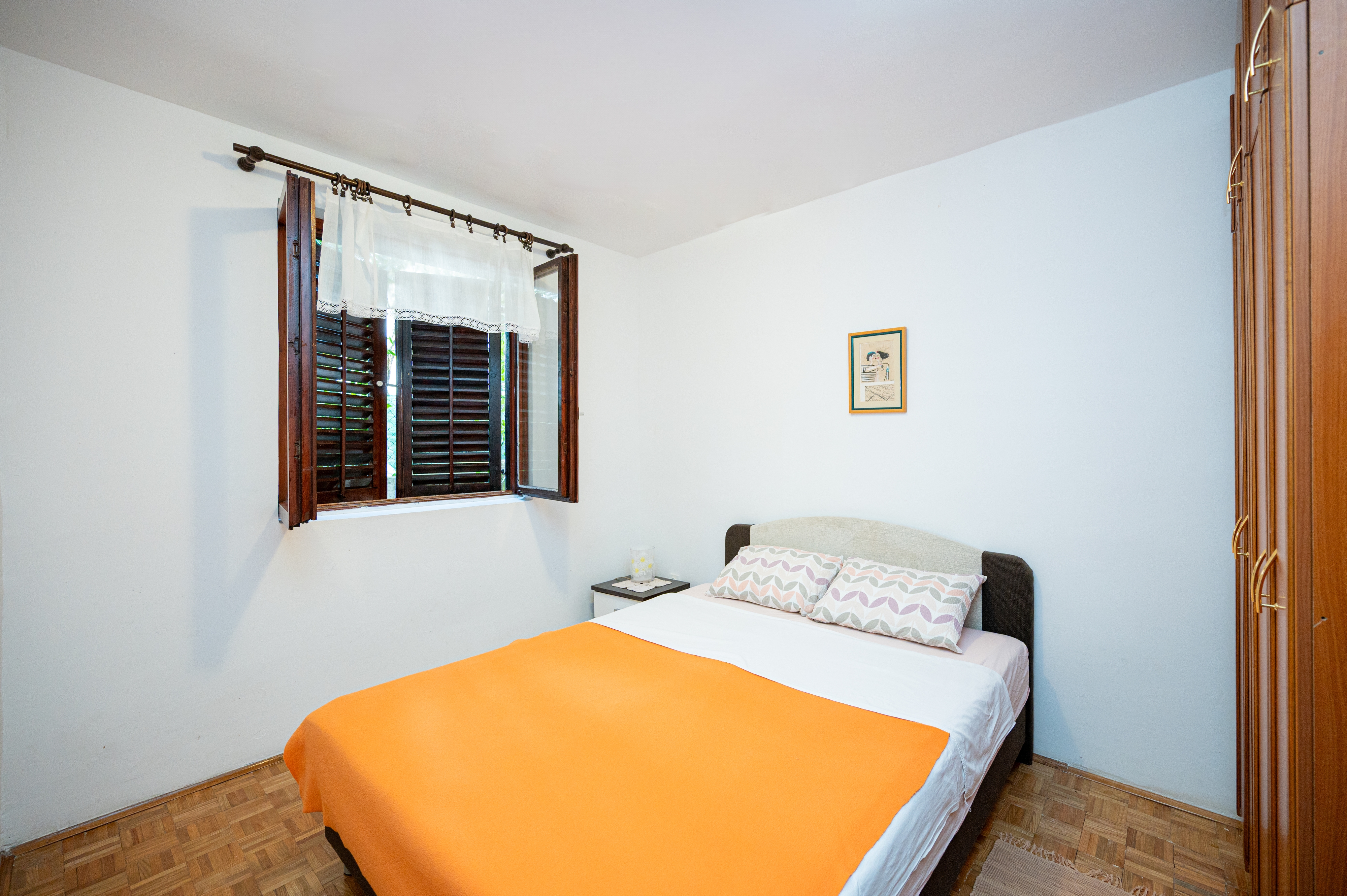 Apartment can accommodate 4 guests. Beds are situated in 2 sleeping rooms, within 49m2. Guests can use a private terrace to enjoy the warm summer evenings. Food can be prepared using barbecue which is shared with other guests too. INCLUDED IN THE PRICE: tourist tax, final cleaning, parking, internet, laundry, baby cot, iron, ironing board, hairdryer. OBLIGATORY ADDITIONAL COSTS: short stay fee (surcharge depending on a number of booked nights: 30% - 1, 20% - 2, 10% - 3). OPTIONAL ADDITIONAL COSTS: air-conditioning (€5.00 per night), 1 bed for children (€10.00 personnight). The availability of additional services for your chosen dates of stay, as well as their prices (if none are listed) must be checked ahead of time. Any additional services not shown in the price calculation are payable directly to the property owner and only if used by the visitor.