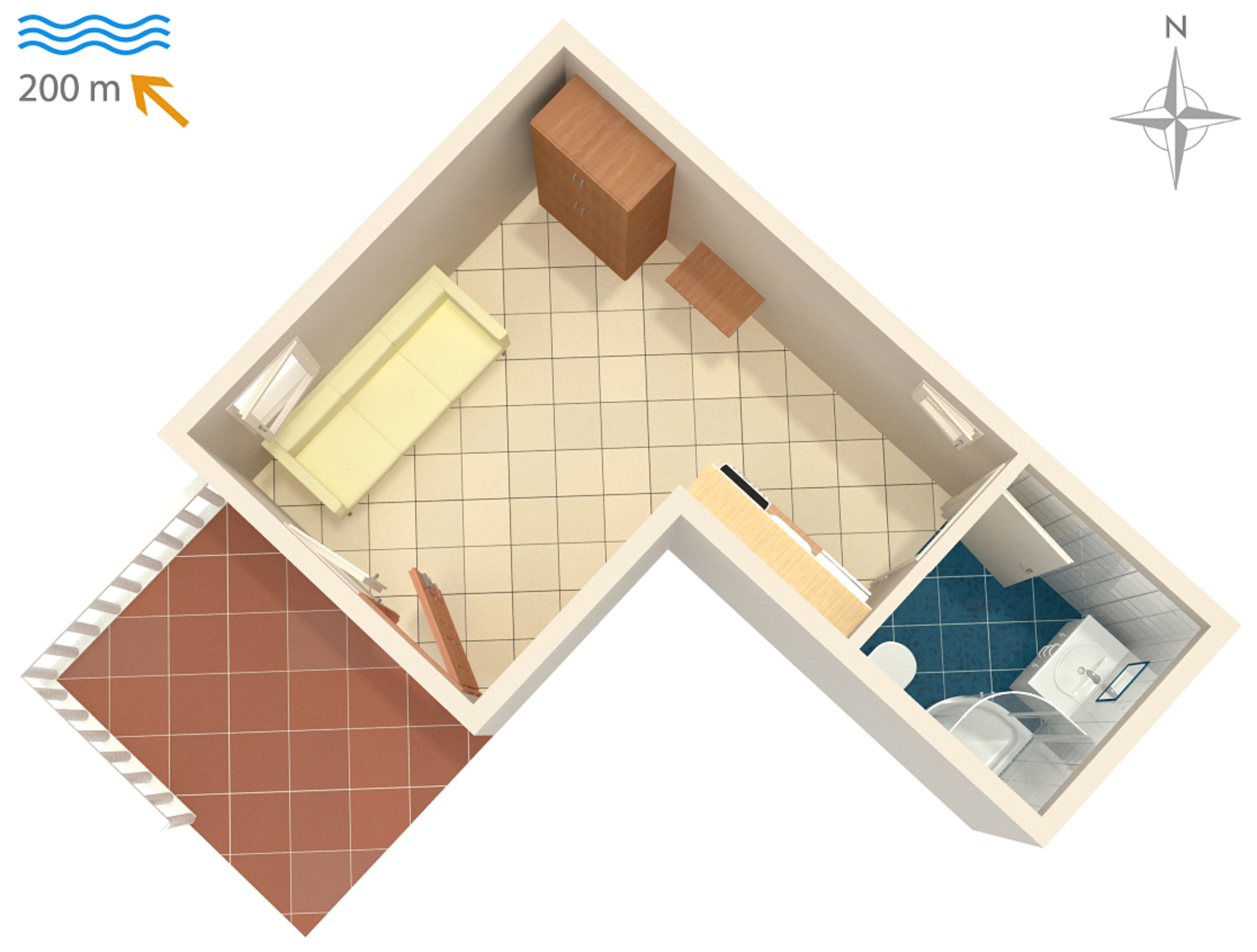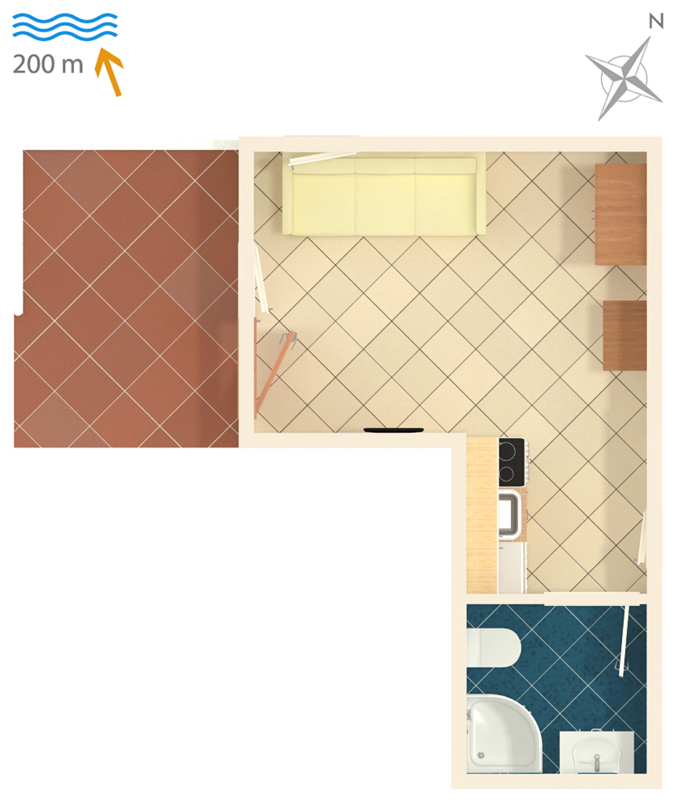 Studio flat can accommodate 2 guests. Beds are situated in 1 sleeping rooms, within 21m2. Guests can use a private terrace to enjoy the warm summer evenings. The studio offers the sea view. Food can be prepared using barbecue which is shared with other guests too. INCLUDED IN THE PRICE: tourist tax, final cleaning, air-conditioning, parking, internet. The availability of additional services for your chosen dates of stay, as well as their prices (if none are listed) must be checked ahead of time. Any additional services not shown in the price calculation are payable directly to the property owner and only if used by the visitor.