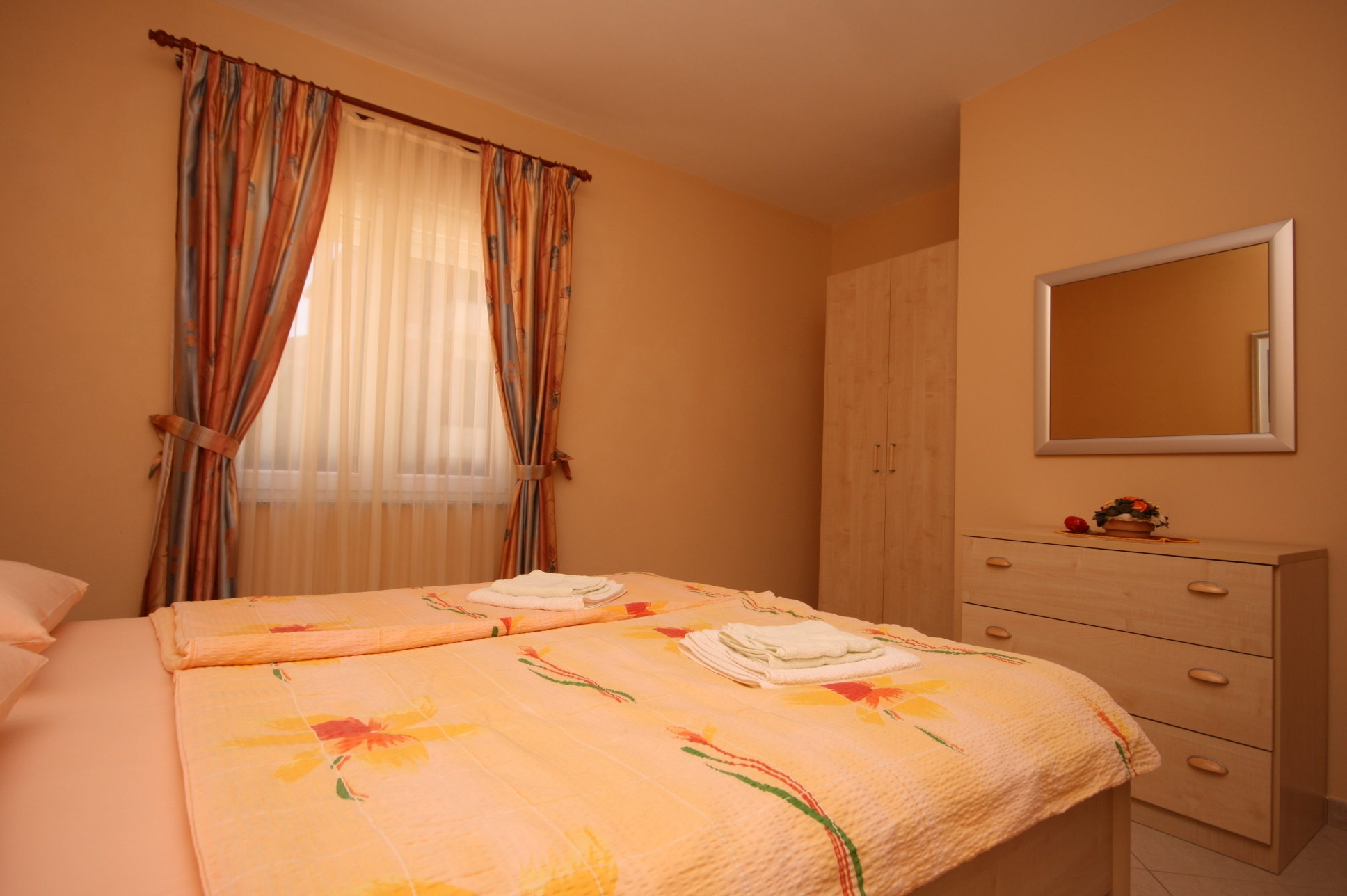 Apartment can accommodate 2 guests. Beds are situated in 1 sleeping rooms, within 43m2. Guests can use a private terrace to enjoy the warm summer evenings. Food can be prepared using barbecue which is shared with other guests too. This accommodation unit welcomes pets at an additional charge. For the booked accommodation unit the deposit is paid directly to the owner upon check-in (deposit amount is displayed on the website) INCLUDED IN THE PRICE: tourist tax, final cleaning, air-conditioning, parking, internet, iron, hairdryer. OBLIGATORY ADDITIONAL COSTS: deposit (€200.00 one-time payment), short stay fee (surcharge depending on a number of booked nights: 30% - 1, 20% - 2, 10% - 3). OPTIONAL ADDITIONAL COSTS: laundry (€5.00 washing), pets (€20.00 per night), additional bed (€15.00 per night). The availability of additional services for your chosen dates of stay, as well as their prices (if none are listed) must be checked ahead of time. Any additional services not shown in the price calculation are payable directly to the property owner and only if used by the visitor. Discounts to the base price: free day 14=13 (for reservations of 14 or more days you get one free day for the stay until 31122026).
