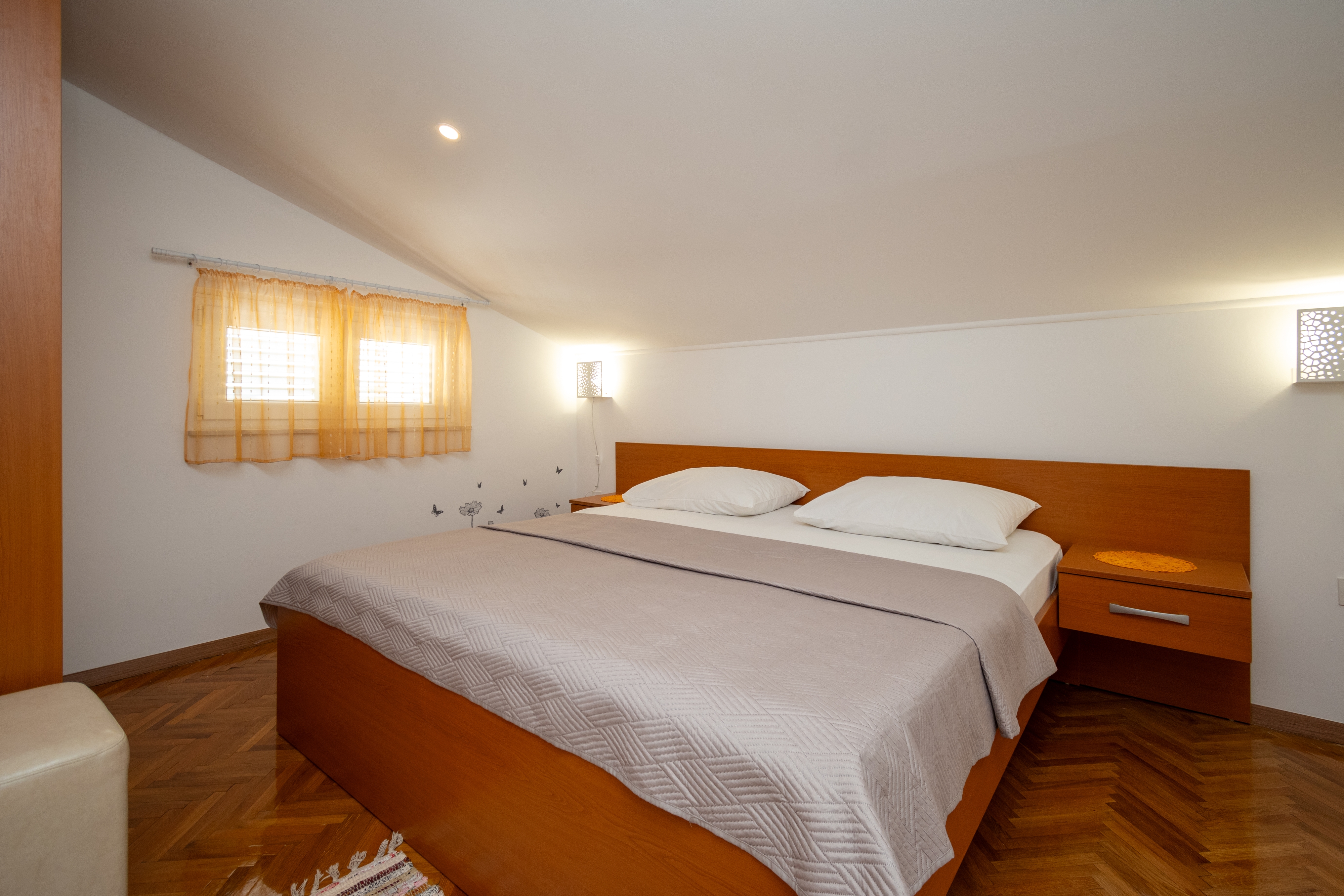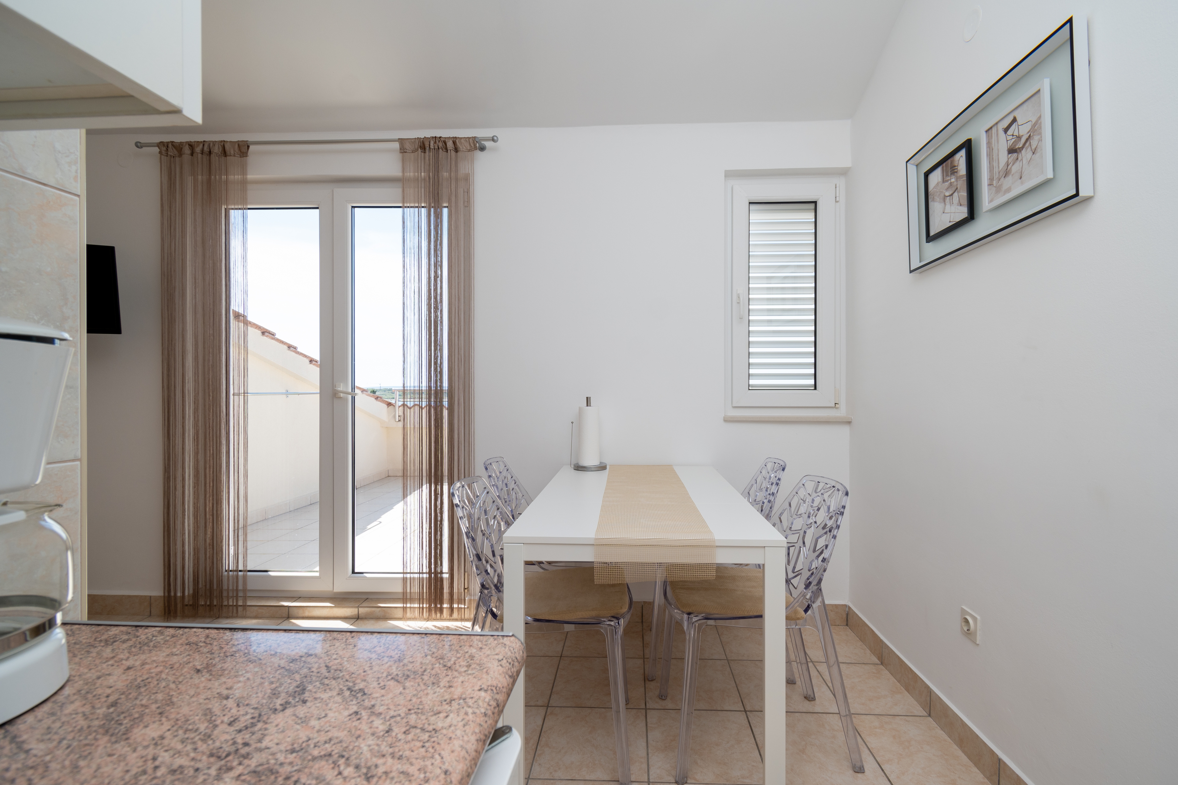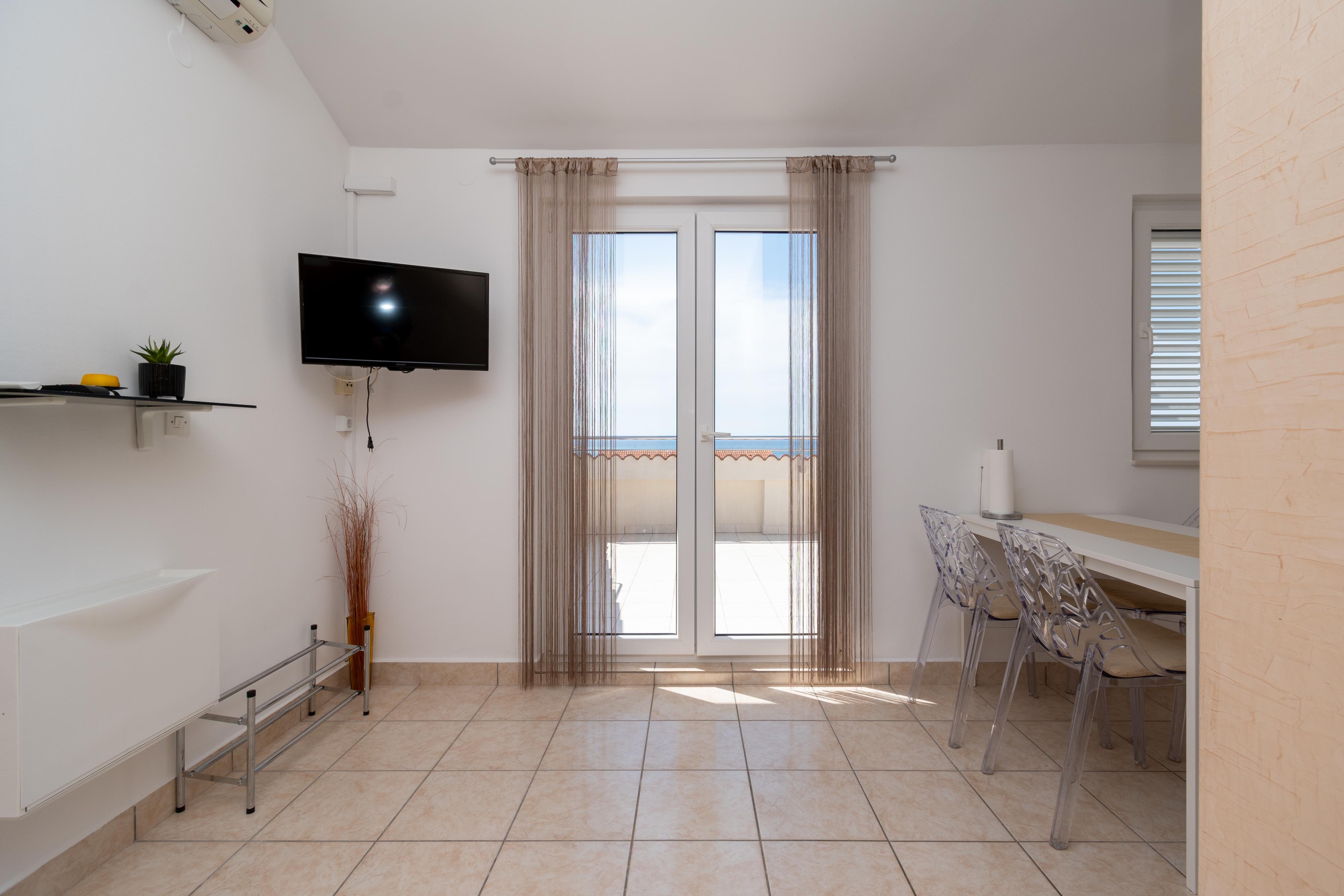 Apartment can accommodate 4 guests. Beds are situated in 2 sleeping rooms, within 40m2. Guests can use a private terrace to enjoy the warm summer evenings. The apartment offers the sea view. Food can be prepared using barbecue which is shared with other guests too. For the booked accommodation unit the deposit is paid directly to the owner upon check-in (deposit amount is displayed on the website) INCLUDED IN THE PRICE: tourist tax, final cleaning, parking, internet. OBLIGATORY ADDITIONAL COSTS: deposit (€200.00 one-time payment), short stay fee (surcharge depending on a number of booked nights: 30% - 1, 20% - 2, 10% - 3). OPTIONAL ADDITIONAL COSTS: air-conditioning (€10.00 per night). The availability of additional services for your chosen dates of stay, as well as their prices (if none are listed) must be checked ahead of time. Any additional services not shown in the price calculation are payable directly to the property owner and only if used by the visitor. Discounts to the base price: free day 14=13 (for reservations of 14 or more days you get one free day for the stay until 31122026).