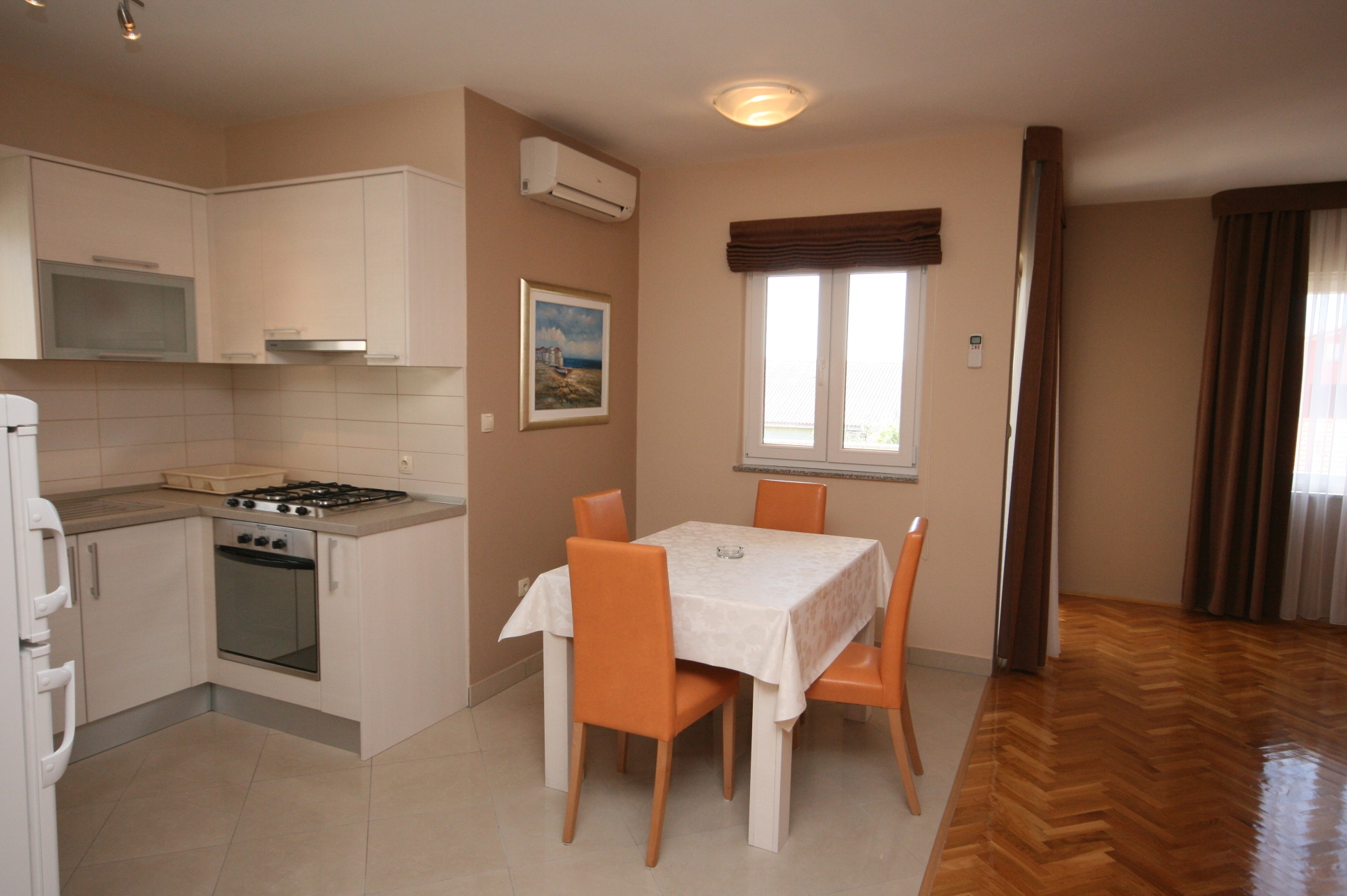 Apartment can accommodate 4 guests. Beds are situated in 2 sleeping rooms, within 65m2. Guests can use a private terrace to enjoy the warm summer evenings. Food can be prepared using barbecue which is shared with other guests too. This accommodation unit welcomes pets at an additional charge. For the booked accommodation unit the deposit is paid directly to the owner upon check-in (deposit amount is displayed on the website) INCLUDED IN THE PRICE: tourist tax, final cleaning, air-conditioning, parking, internet, iron, hairdryer. OBLIGATORY ADDITIONAL COSTS: deposit (€400.00 one-time payment), short stay fee (surcharge depending on a number of booked nights: 30% - 1, 20% - 2, 10% - 3). OPTIONAL ADDITIONAL COSTS: laundry (€5.00 washing), pets (€20.00 per night), additional bed (€15.00 per night). The availability of additional services for your chosen dates of stay, as well as their prices (if none are listed) must be checked ahead of time. Any additional services not shown in the price calculation are payable directly to the property owner and only if used by the visitor. Discounts to the base price: free day 14=13 (for reservations of 14 or more days you get one free day for the stay until 31122026).