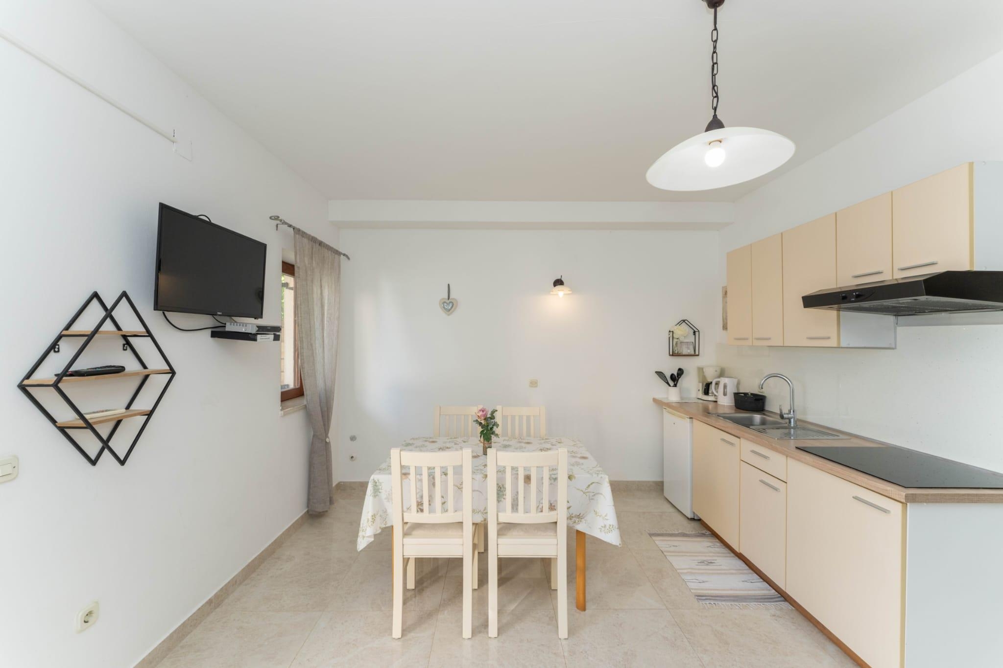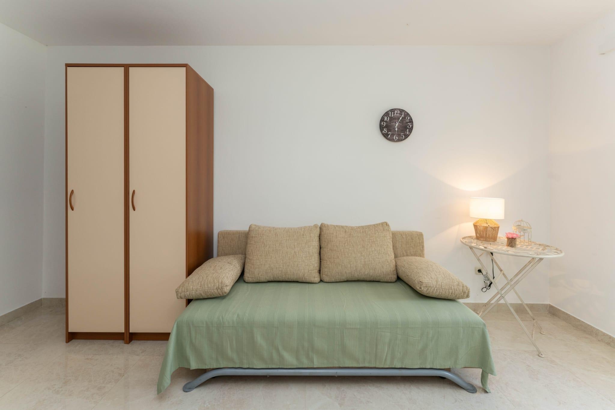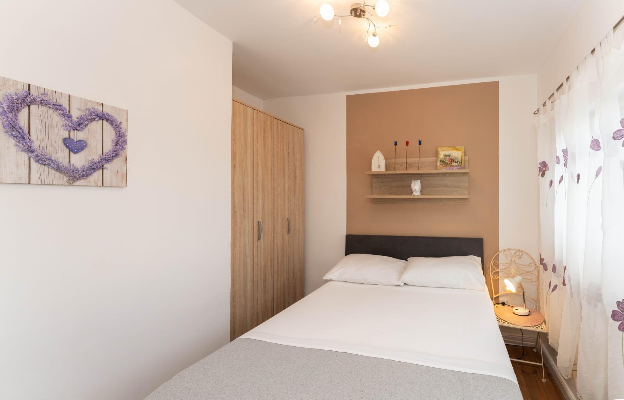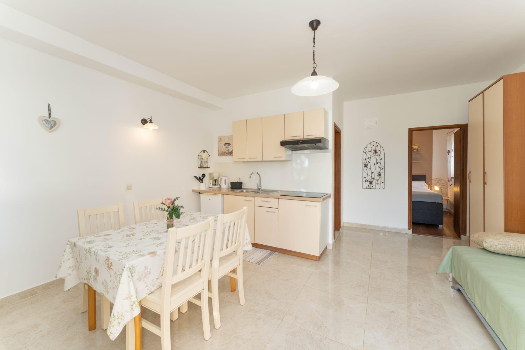 Apartment can accommodate 4 guests. Beds are situated in 1 sleeping rooms, but also in the living room, within 32m2. Guests can use a private terrace to enjoy the warm summer evenings. The apartment offers the sea view. Food can be prepared using barbecue which is shared with other guests too. INCLUDED IN THE PRICE: tourist tax, final cleaning, air-conditioning, parking, internet, baby cot, ironing board, hairdryer. The availability of additional services for your chosen dates of stay, as well as their prices (if none are listed) must be checked ahead of time. Any additional services not shown in the price calculation are payable directly to the property owner and only if used by the visitor. Discounts to the base price: free day 14=13 (for reservations of 14 or more days you get one free day for the stay until 31122026).