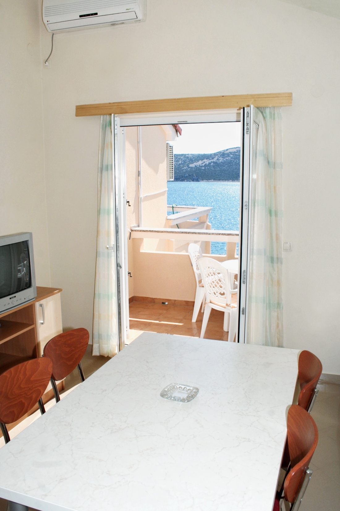 Apartment can accommodate 3 guests. Beds are situated in 1 sleeping rooms, but also in the dining room, within 35m2. Guests can use a private terrace to enjoy the warm summer evenings. The apartment offers the sea view. Food can be prepared using barbecue which is shared with other guests too. INCLUDED IN THE PRICE: tourist tax, final cleaning, air-conditioning, parking, garage, internet, sunshade, sunchairs. OPTIONAL ADDITIONAL COSTS: breakfast (€7.00, a 50% discount for children aged 4 to 12 years, Children up to age 4 free of charge), boat mooring (€5.00 per night). The availability of additional services for your chosen dates of stay, as well as their prices (if none are listed) must be checked ahead of time. Any additional services not shown in the price calculation are payable directly to the property owner and only if used by the visitor.
