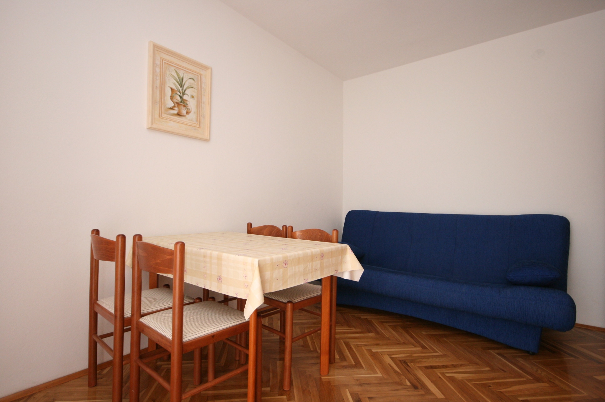 Apartment can accommodate 4 guests. Beds are situated in 1 sleeping rooms, but also in the dining room, within 29m2. Guests can use a private terrace to enjoy the warm summer evenings. The apartment offers the sea view. Food can be prepared using barbecue which is shared with other guests too. INCLUDED IN THE PRICE: tourist tax, final cleaning, air-conditioning, parking, internet, boat mooring. OBLIGATORY ADDITIONAL COSTS: short stay fee (surcharge depending on a number of booked nights: 30% - 1, 20% - 2, 10% - 3). The availability of additional services for your chosen dates of stay, as well as their prices (if none are listed) must be checked ahead of time. Any additional services not shown in the price calculation are payable directly to the property owner and only if used by the visitor. Discounts to the base price: free day 14=13 (for reservations of 14 or more days you get one free day for the stay until 31122026).
