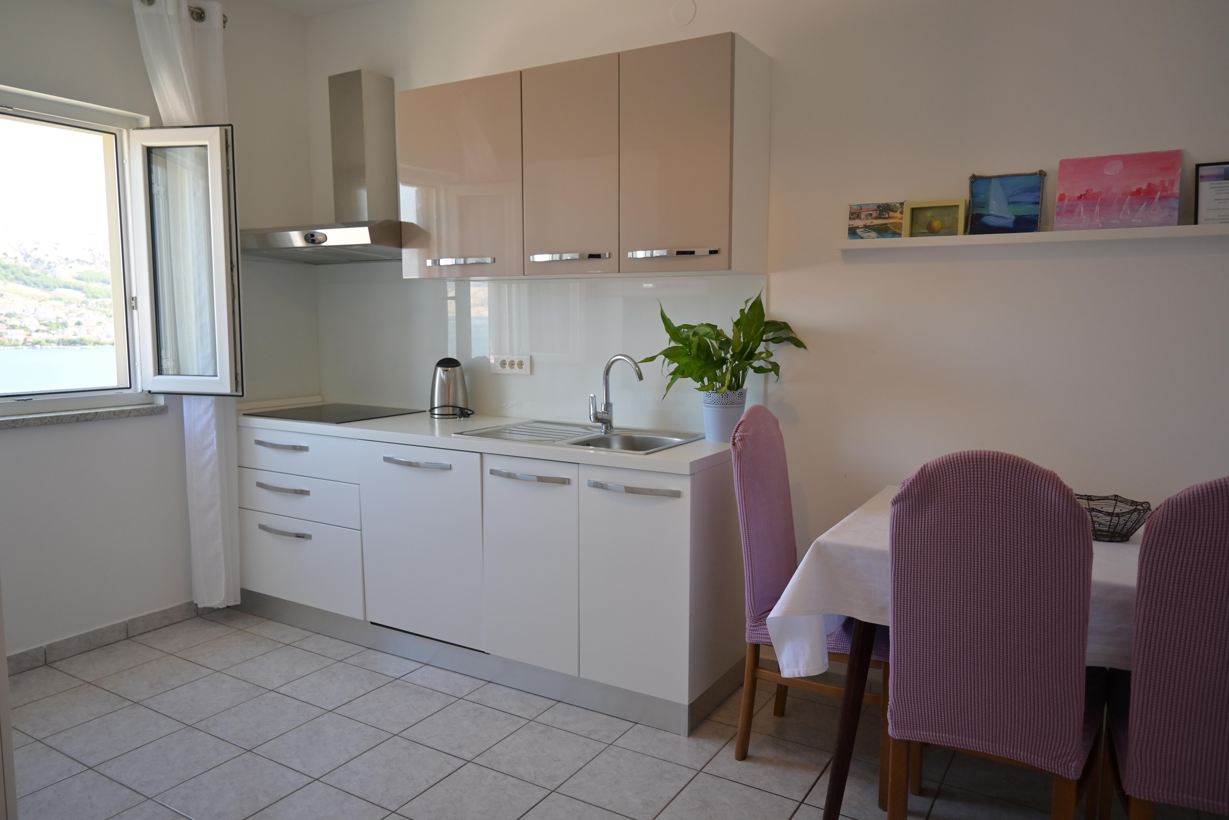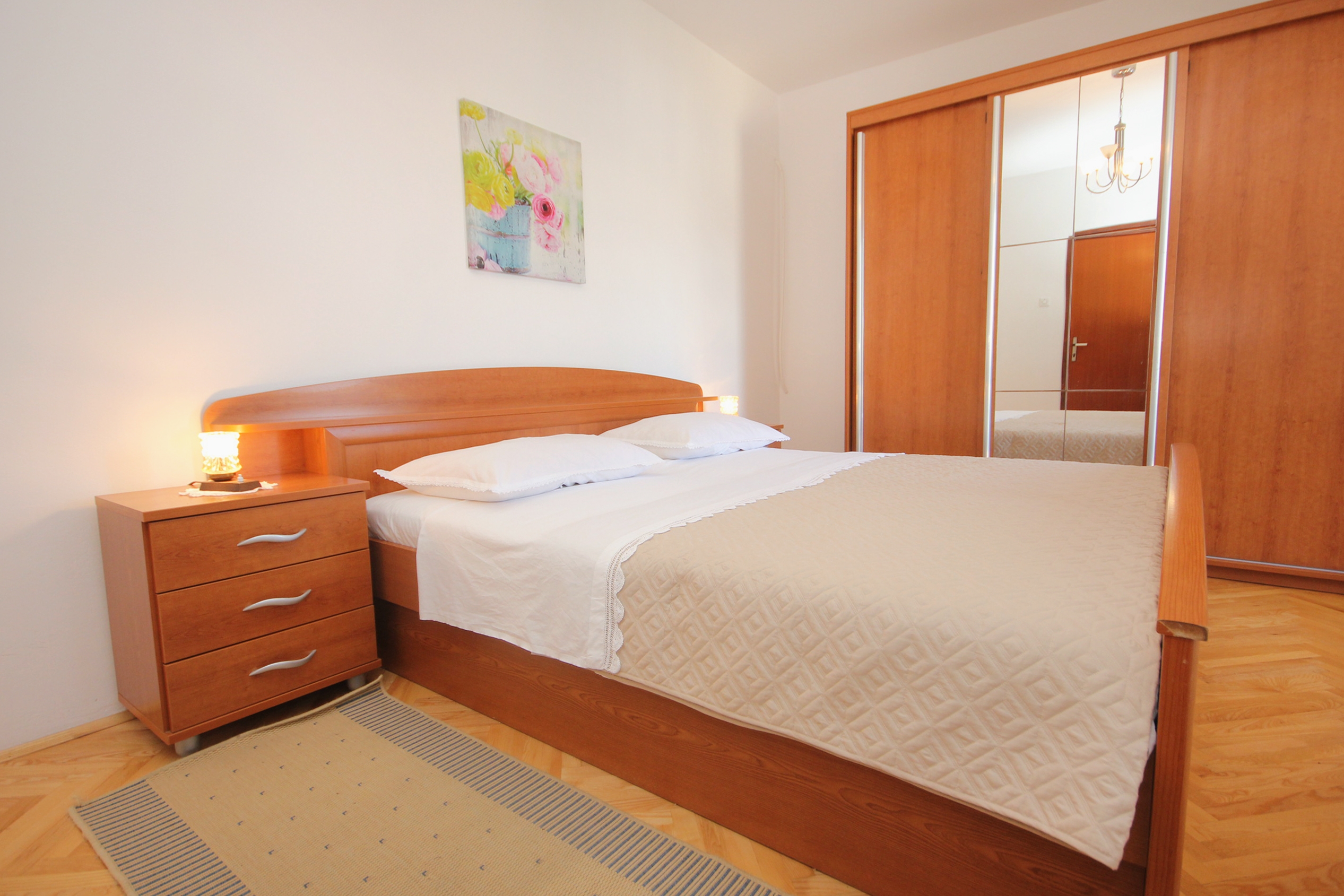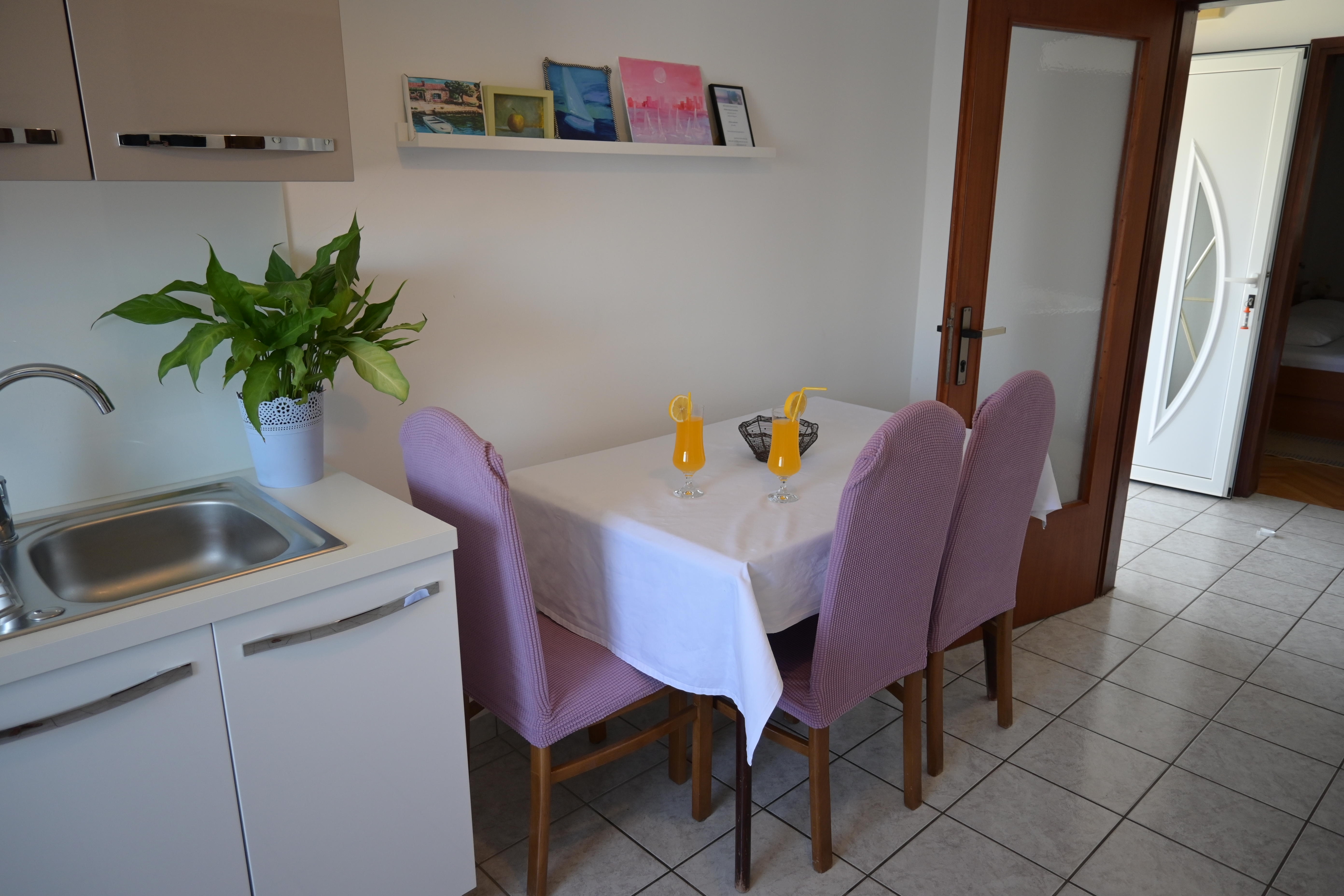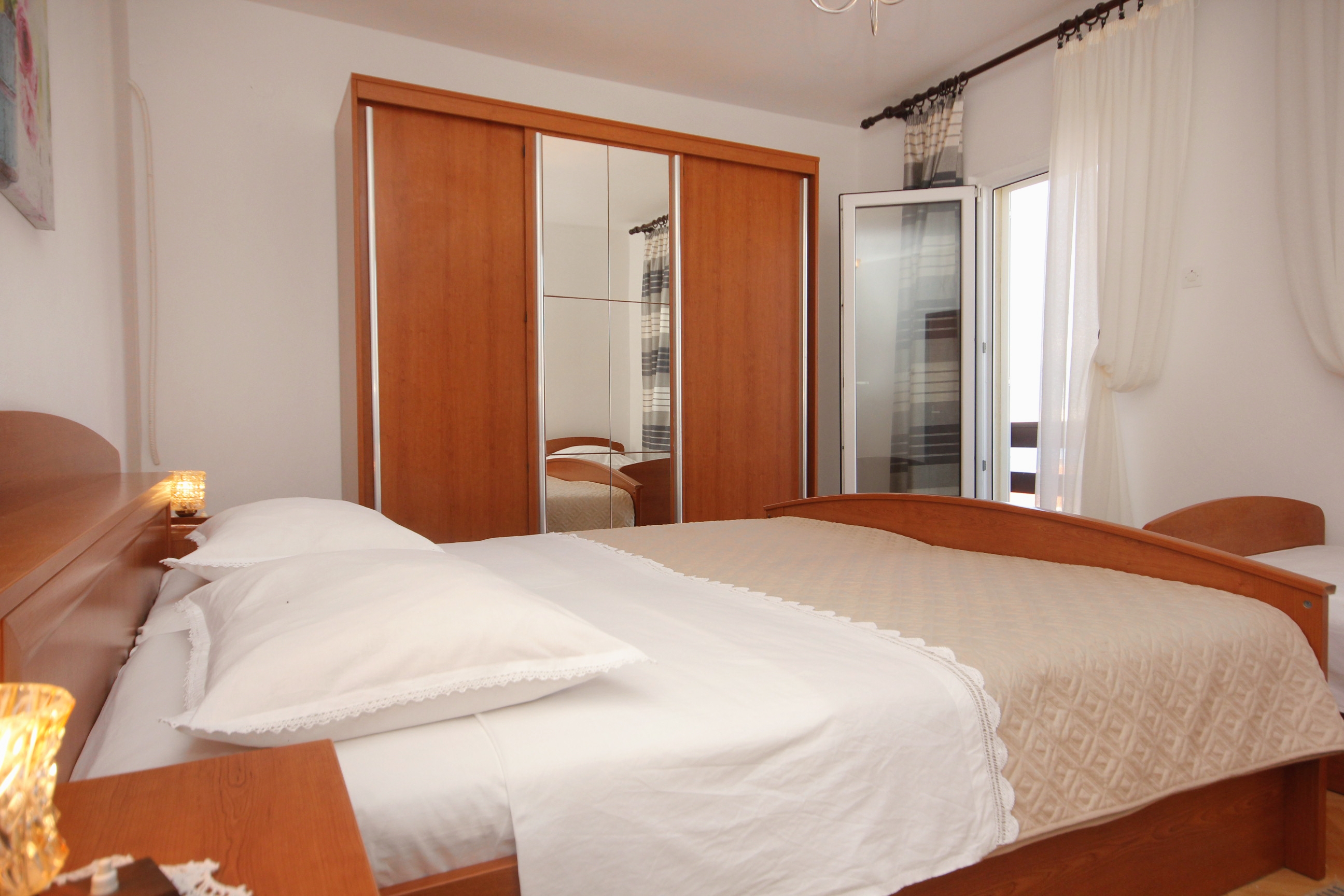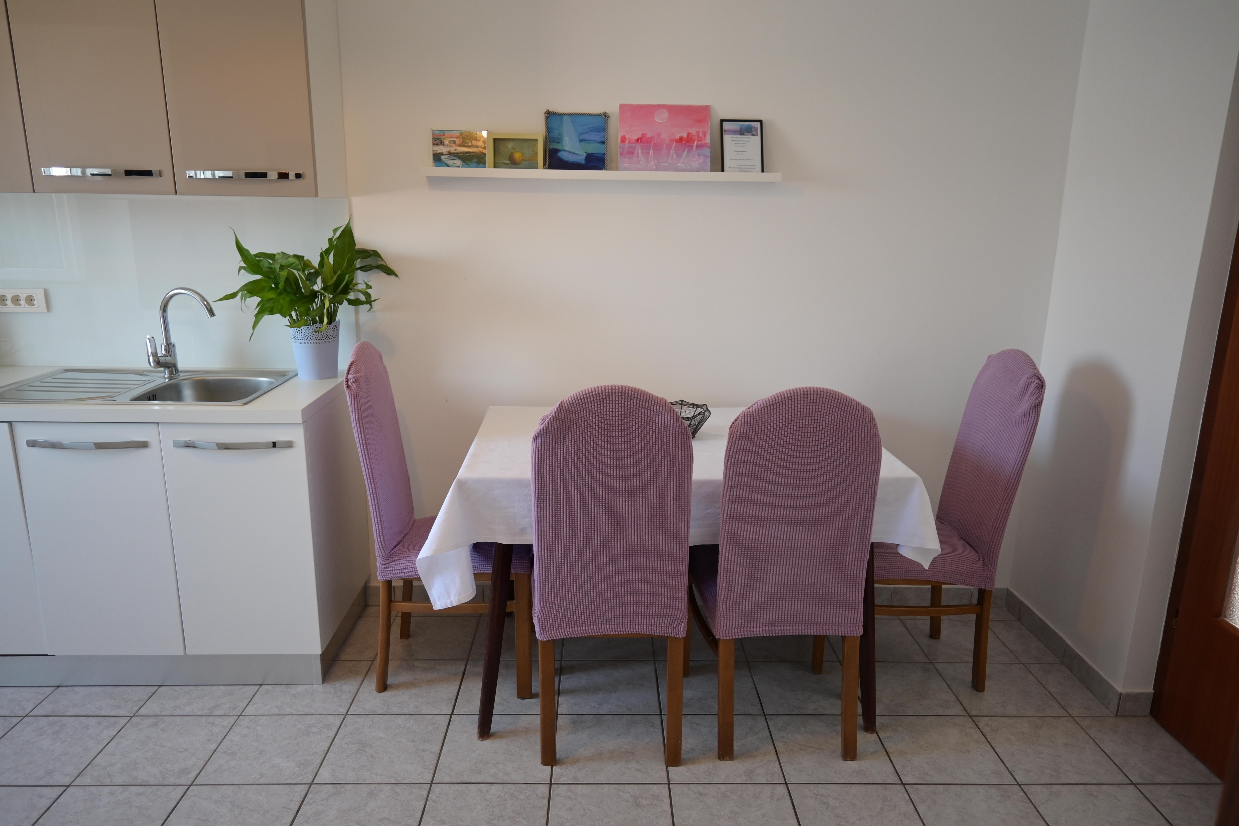 Apartment can accommodate 6 guests. Beds are situated in 2 sleeping rooms, within 50m2. Guests can use a private terrace to enjoy the warm summer evenings. The apartment offers the sea view. Food can be prepared using barbecue which is shared with other guests too. This accommodation unit welcomes pets at no additional costs. INCLUDED IN THE PRICE: tourist tax, final cleaning, parking, internet, pets, baby cot, iron, ironing board, hairdryer. OPTIONAL ADDITIONAL COSTS: air-conditioning (€5.00 per night). The availability of additional services for your chosen dates of stay, as well as their prices (if none are listed) must be checked ahead of time. Any additional services not shown in the price calculation are payable directly to the property owner and only if used by the visitor.