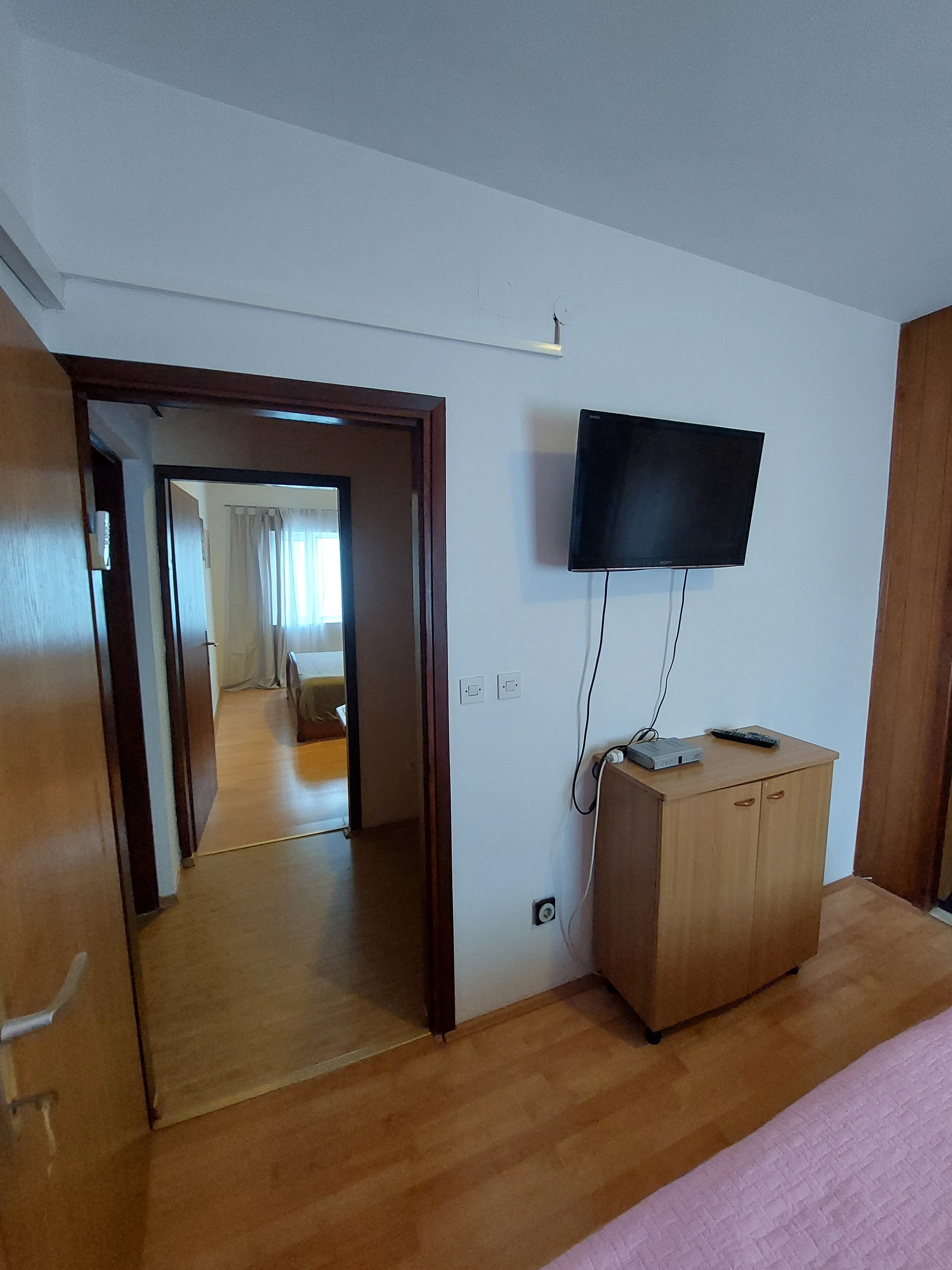 Apartment can accommodate 4 guests. Beds are situated in 2 sleeping rooms, within 45m2. Guests can use a private terrace to enjoy the warm summer evenings. Food can be prepared using barbecue which is shared with other guests too. INCLUDED IN THE PRICE: tourist tax, final cleaning, air-conditioning, parking, internet. OBLIGATORY ADDITIONAL COSTS: short stay fee (surcharge depending on a number of booked nights: 30% - 1, 20% - 2, 10% - 3). The availability of additional services for your chosen dates of stay, as well as their prices (if none are listed) must be checked ahead of time. Any additional services not shown in the price calculation are payable directly to the property owner and only if used by the visitor. Discounts to the base price: free day 14=13 (for reservations of 14 or more days you get one free day for the stay until 31122026).